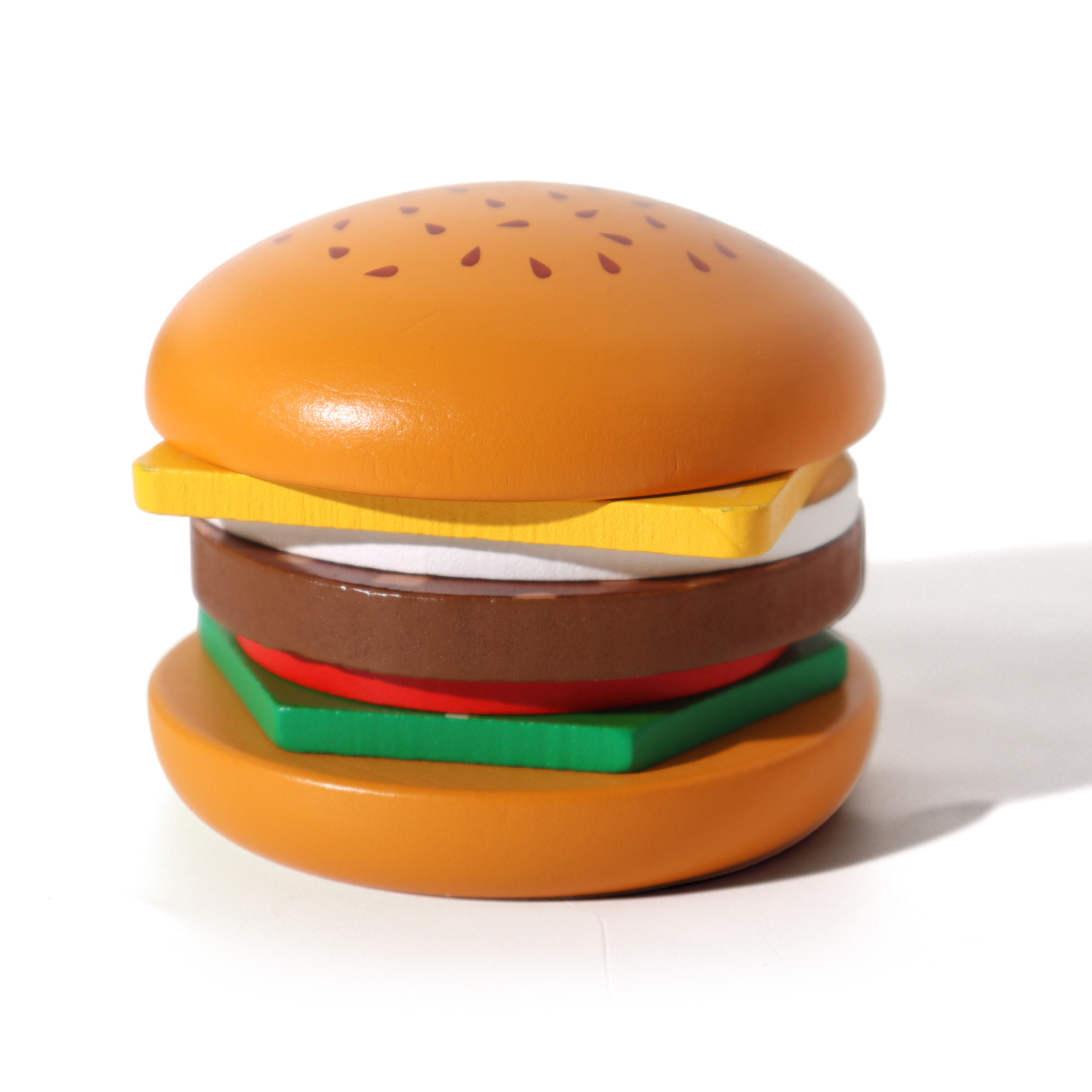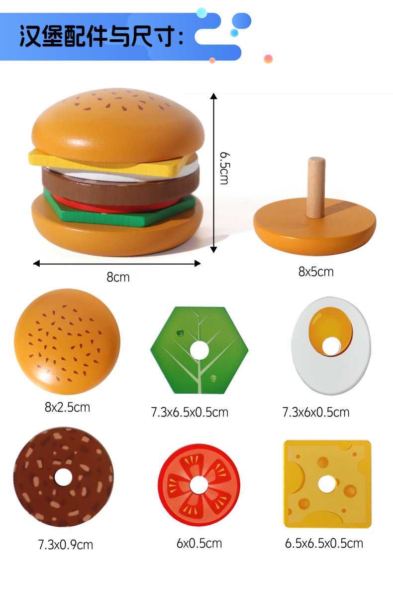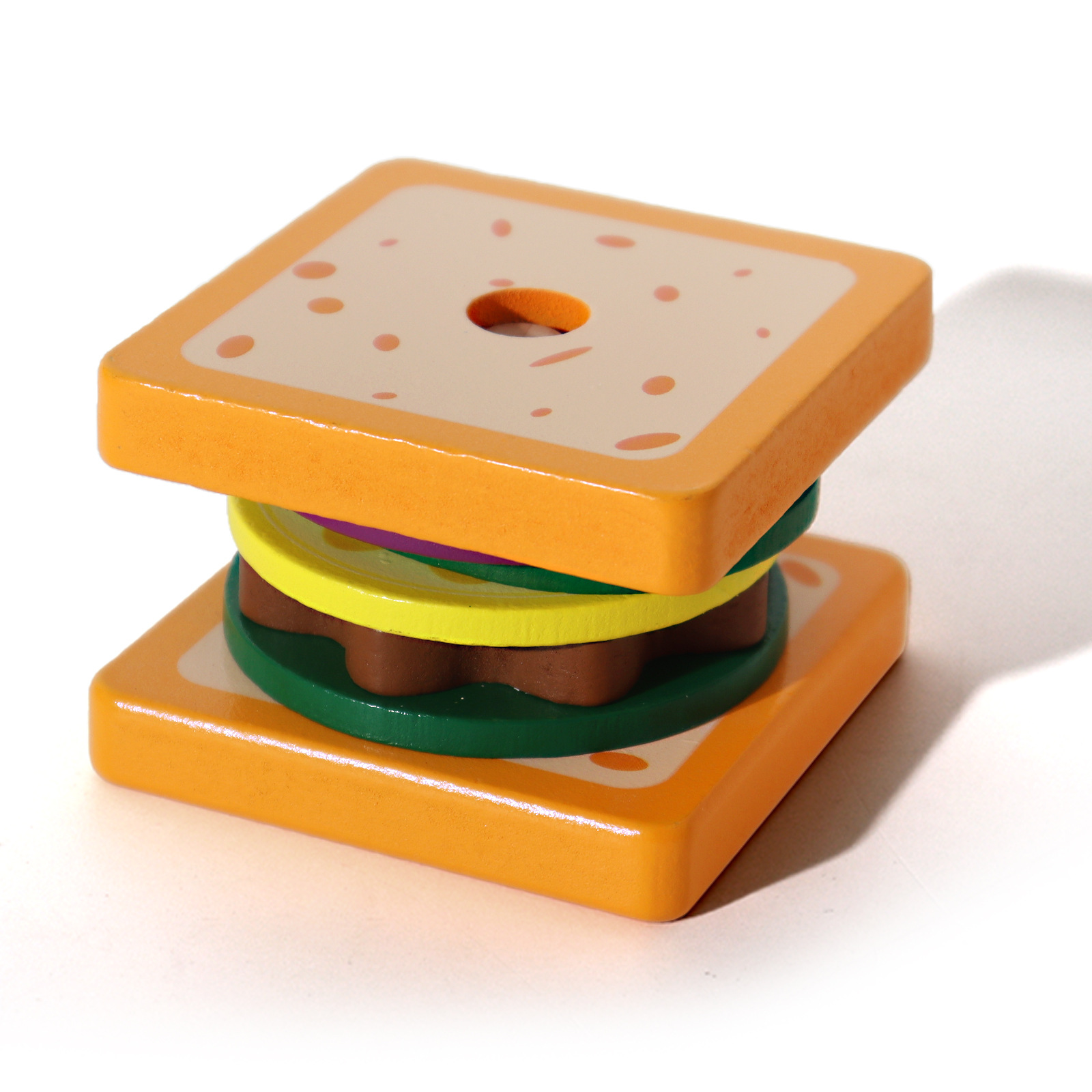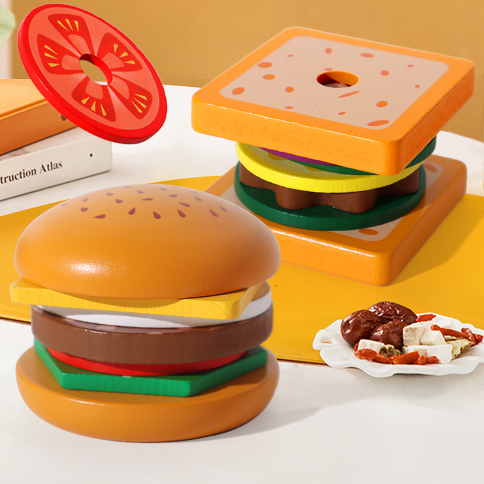 국경 간 햄버거 샌드위치 서양 음식 장난감 목조 놀이터 시뮬레이션 함부르크 샌드위치 세트 기둥 스택 음악스토어 가기