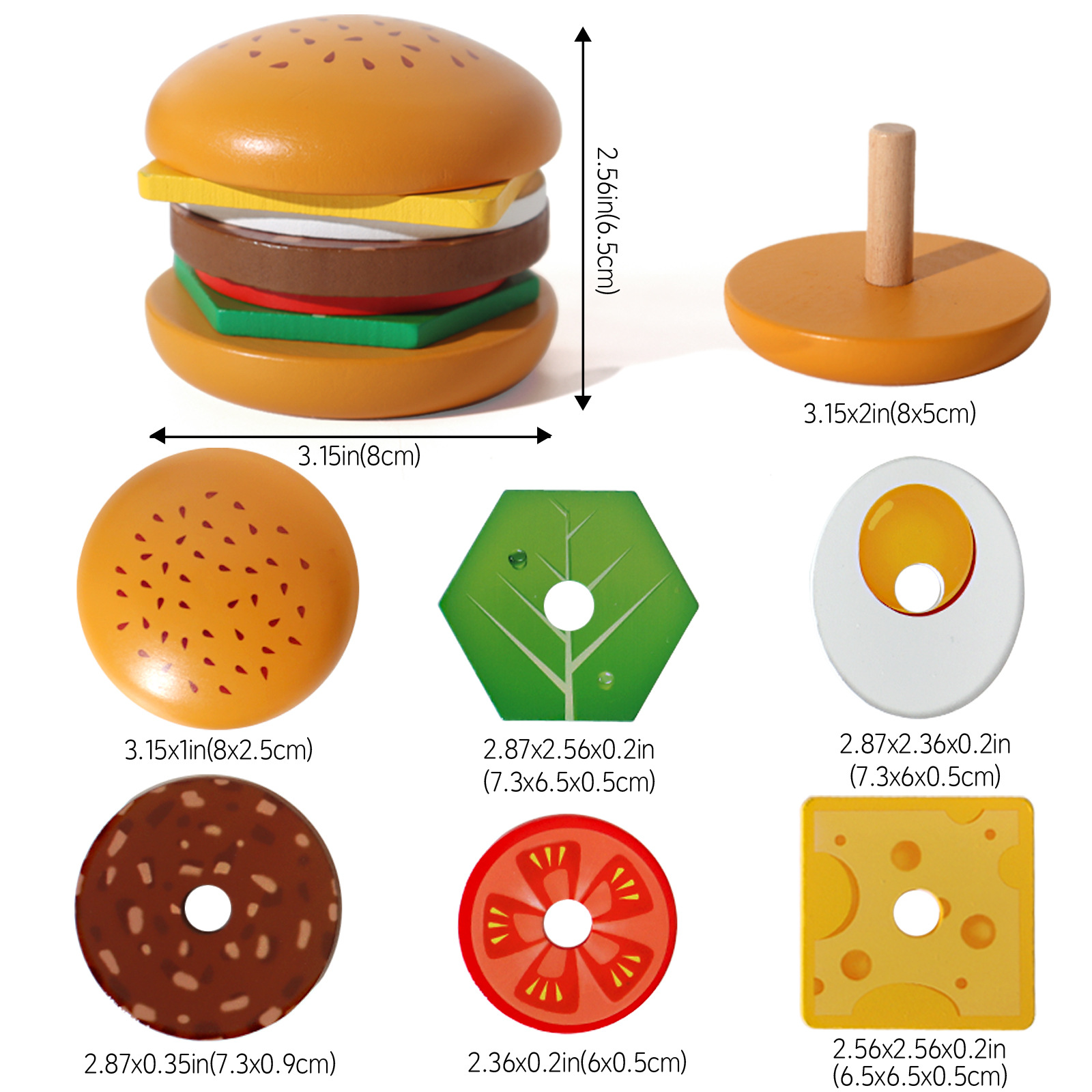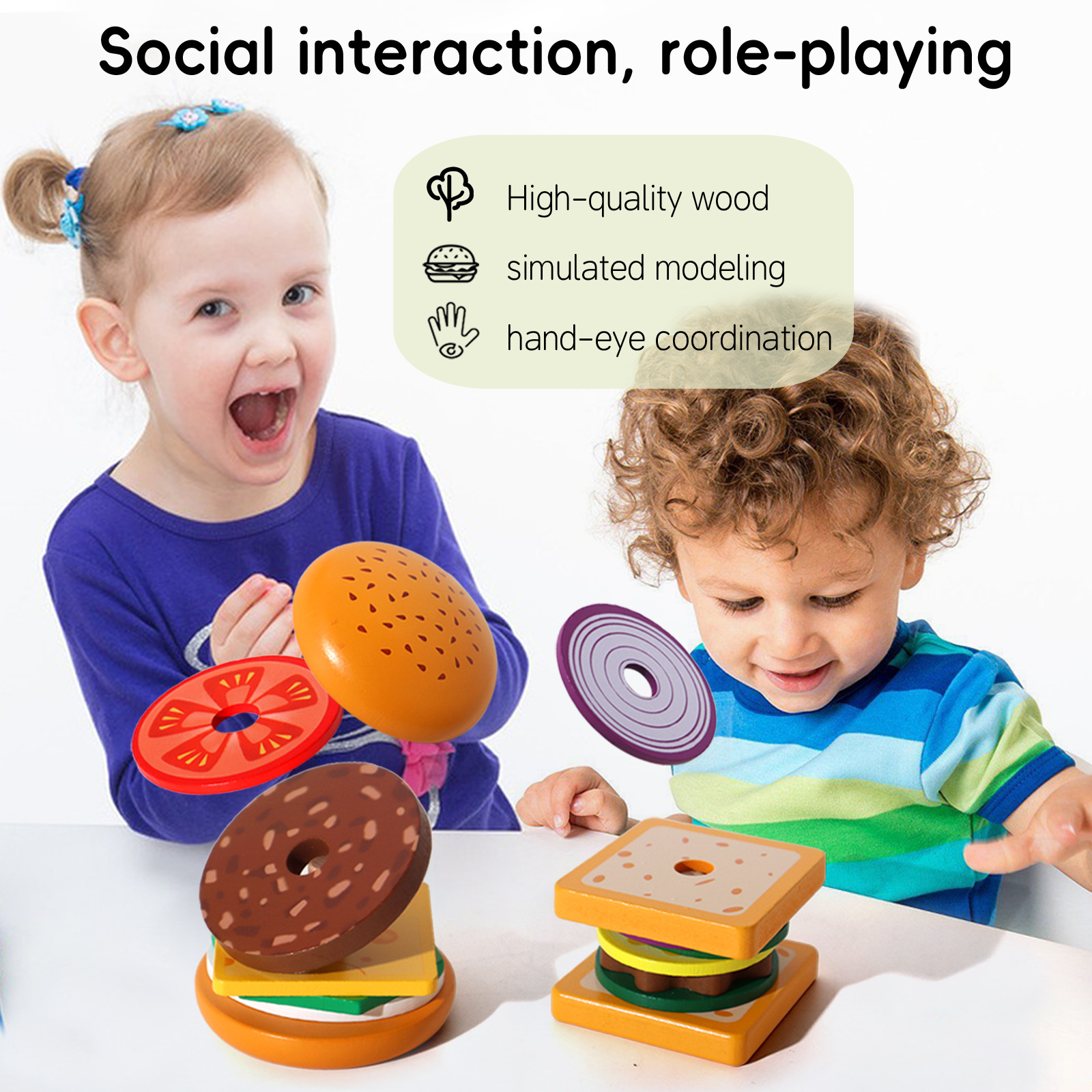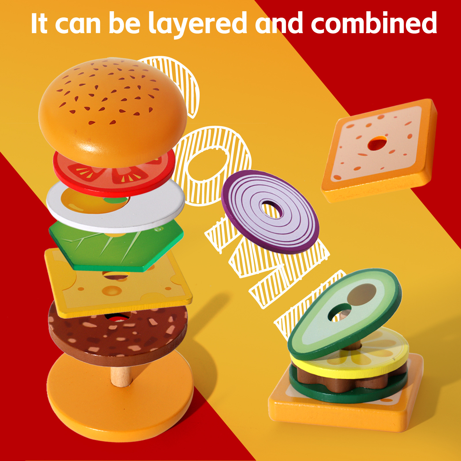 국경 간 햄버거 샌드위치 서양 음식 장난감 목조 놀이터 시뮬레이션 함부르크 샌드위치 세트 기둥 스택 음악스토어 가기