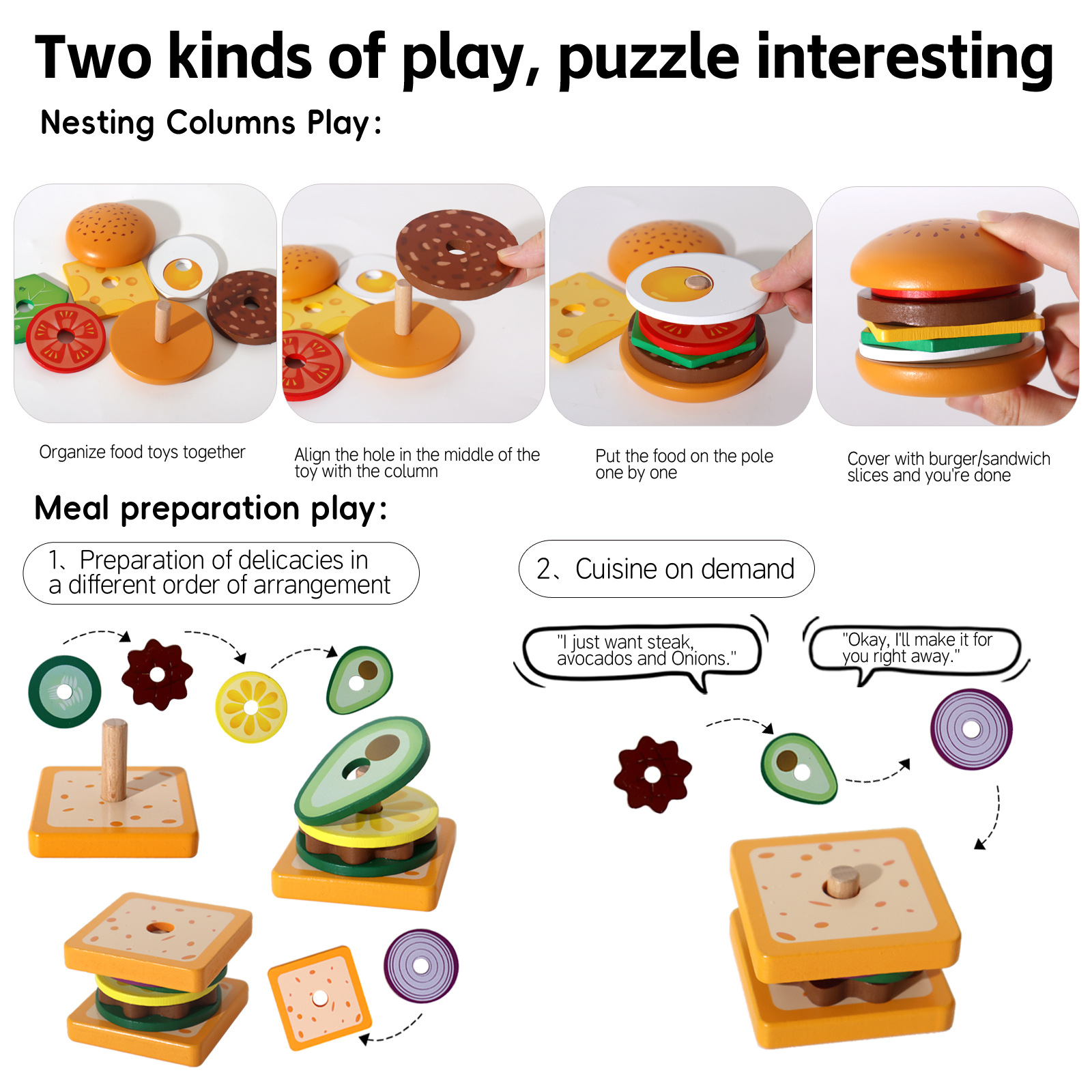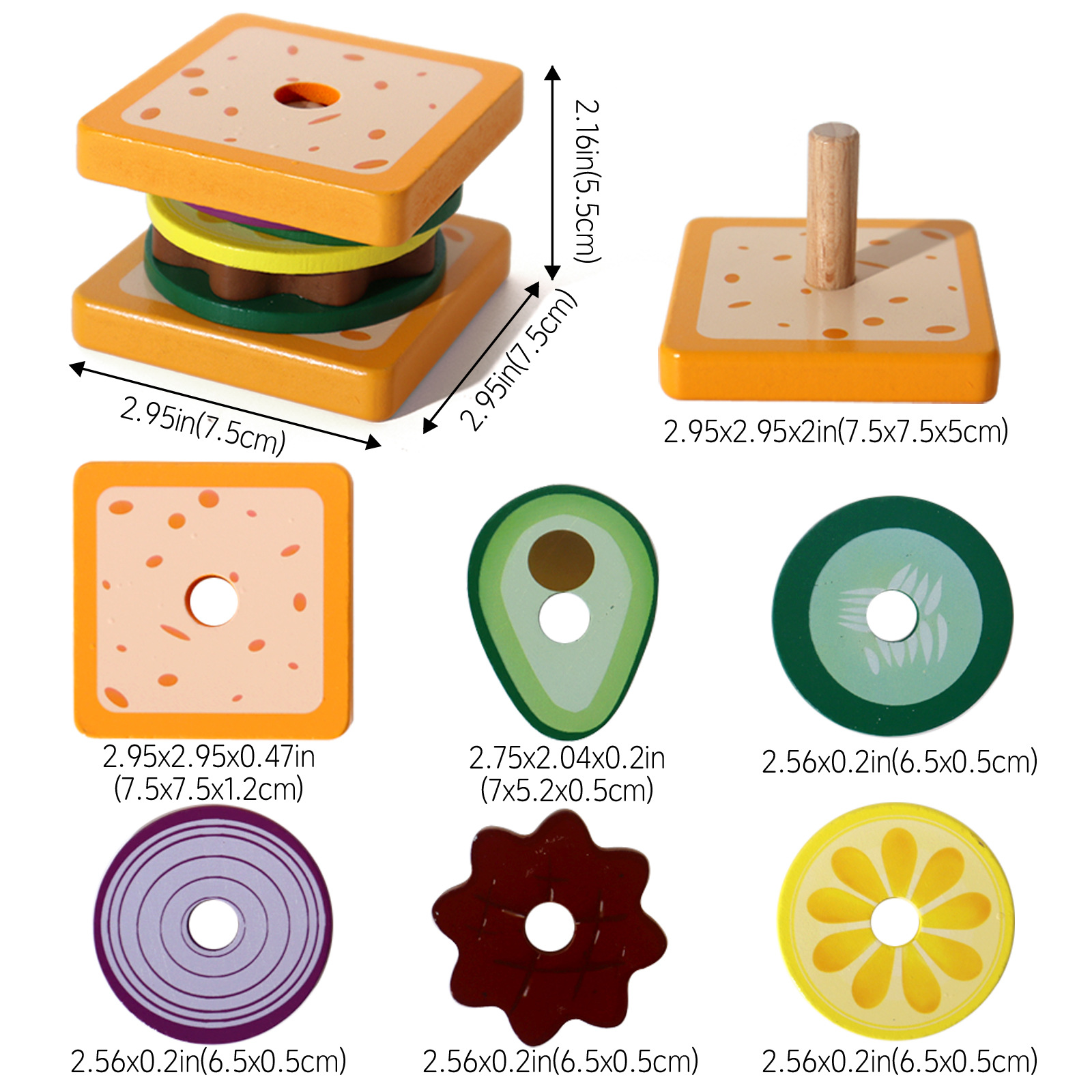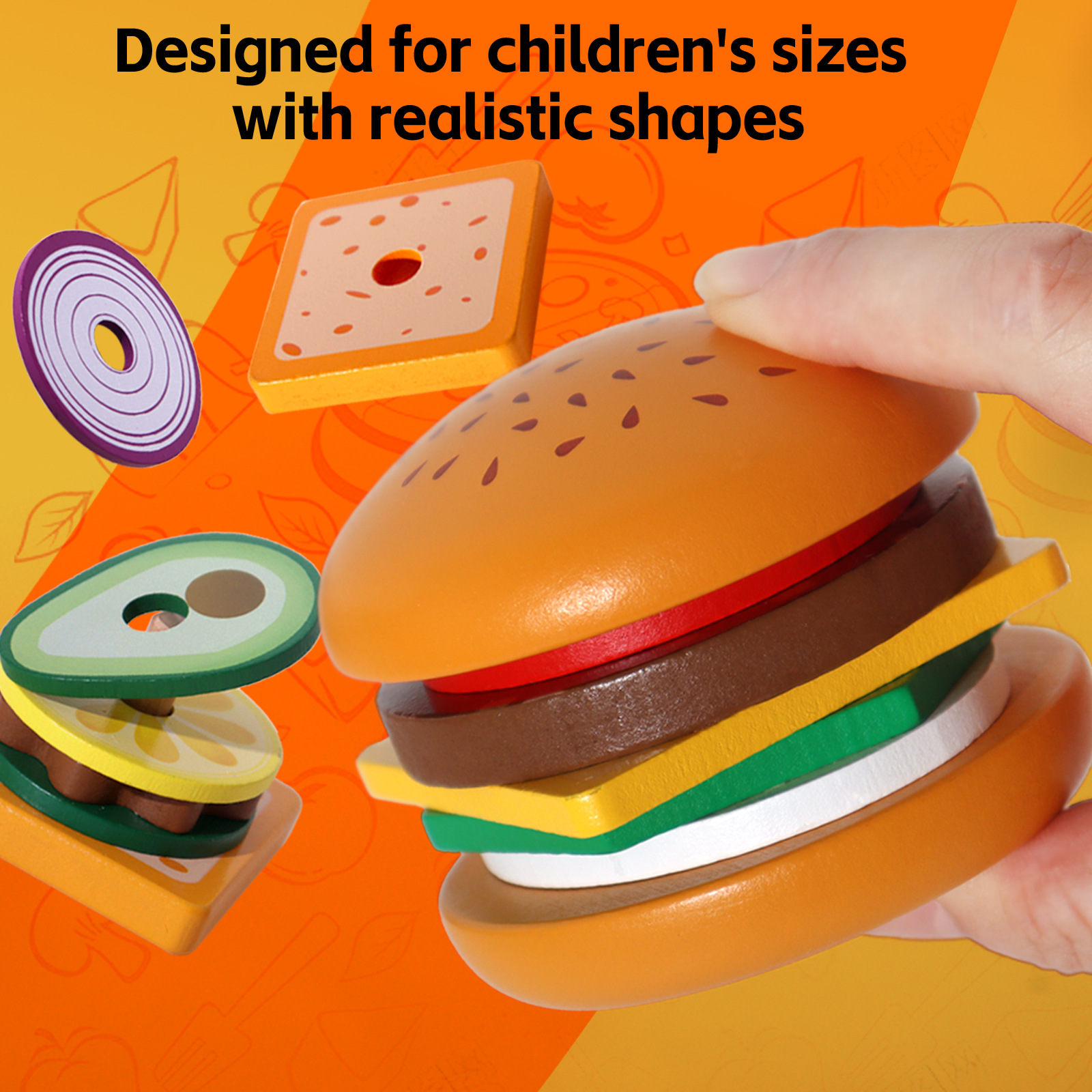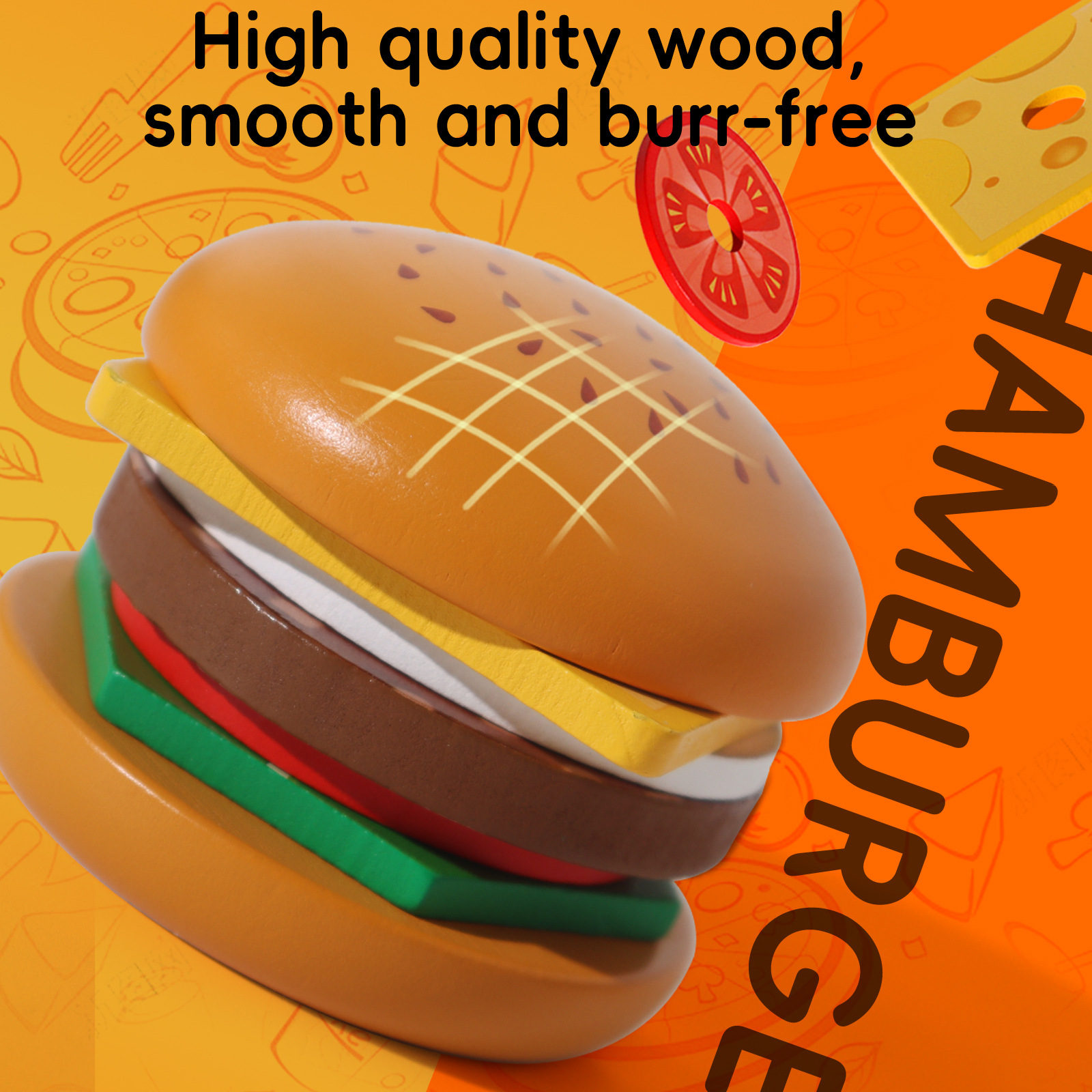 국경 간 햄버거 샌드위치 서양 음식 장난감 목조 놀이터 시뮬레이션 함부르크 샌드위치 세트 기둥 스택 음악스토어 가기