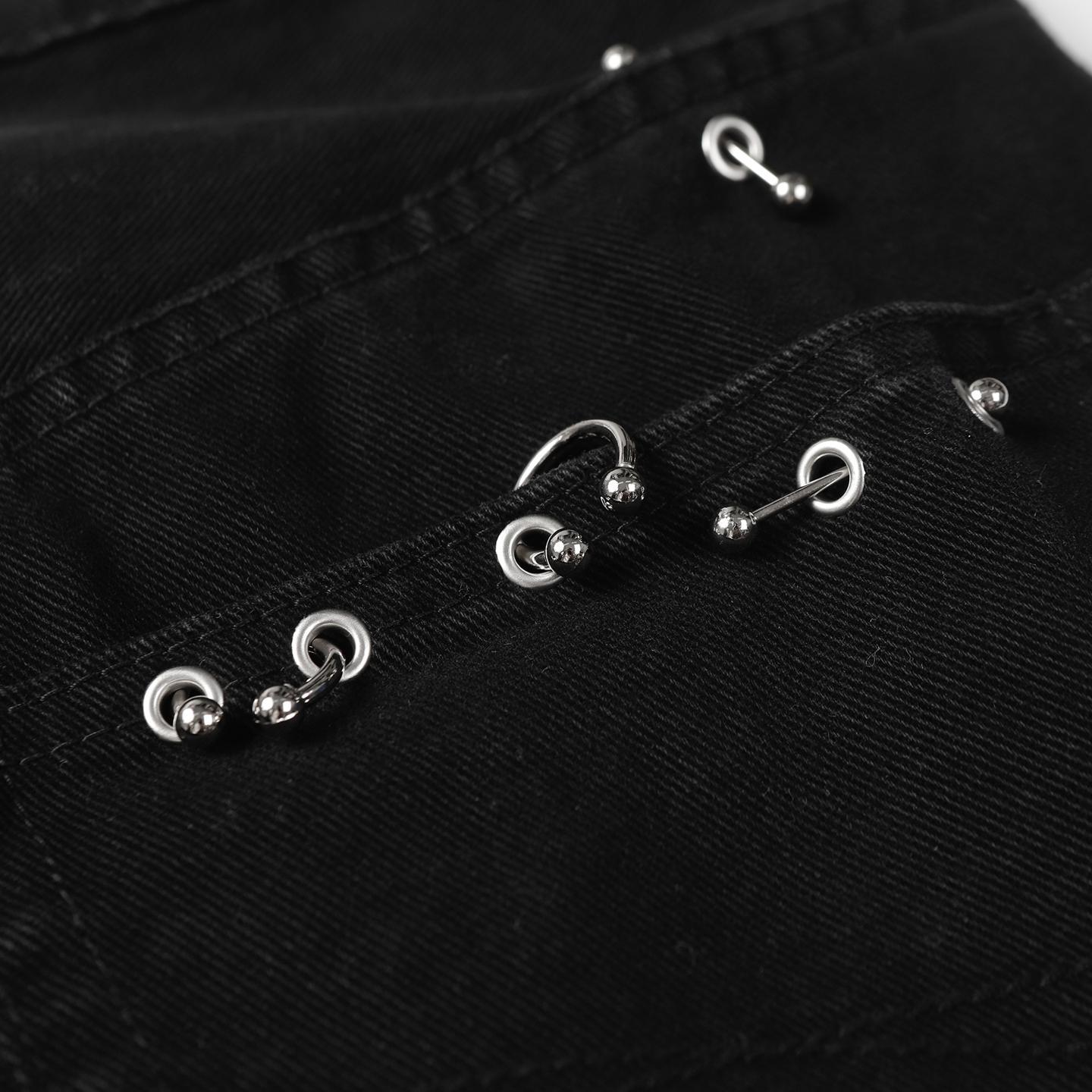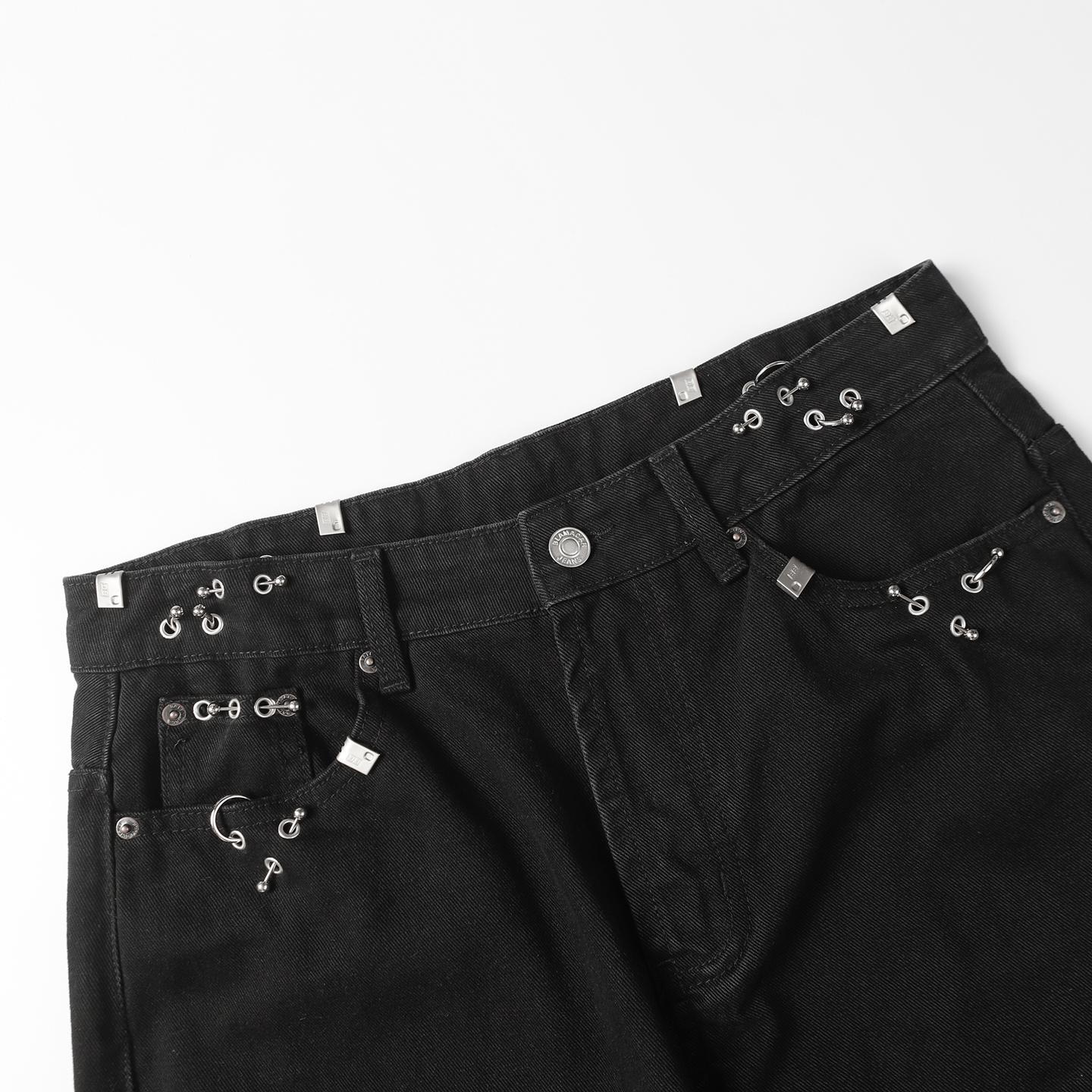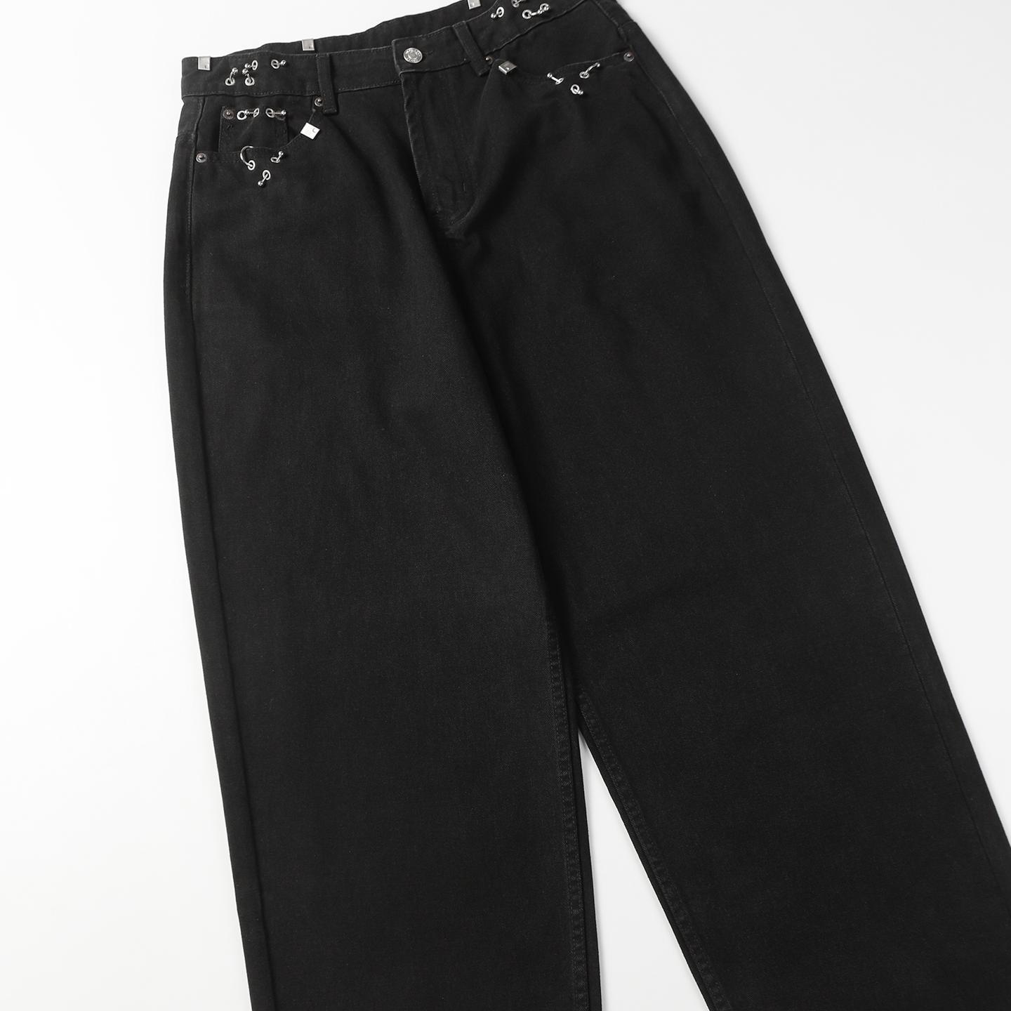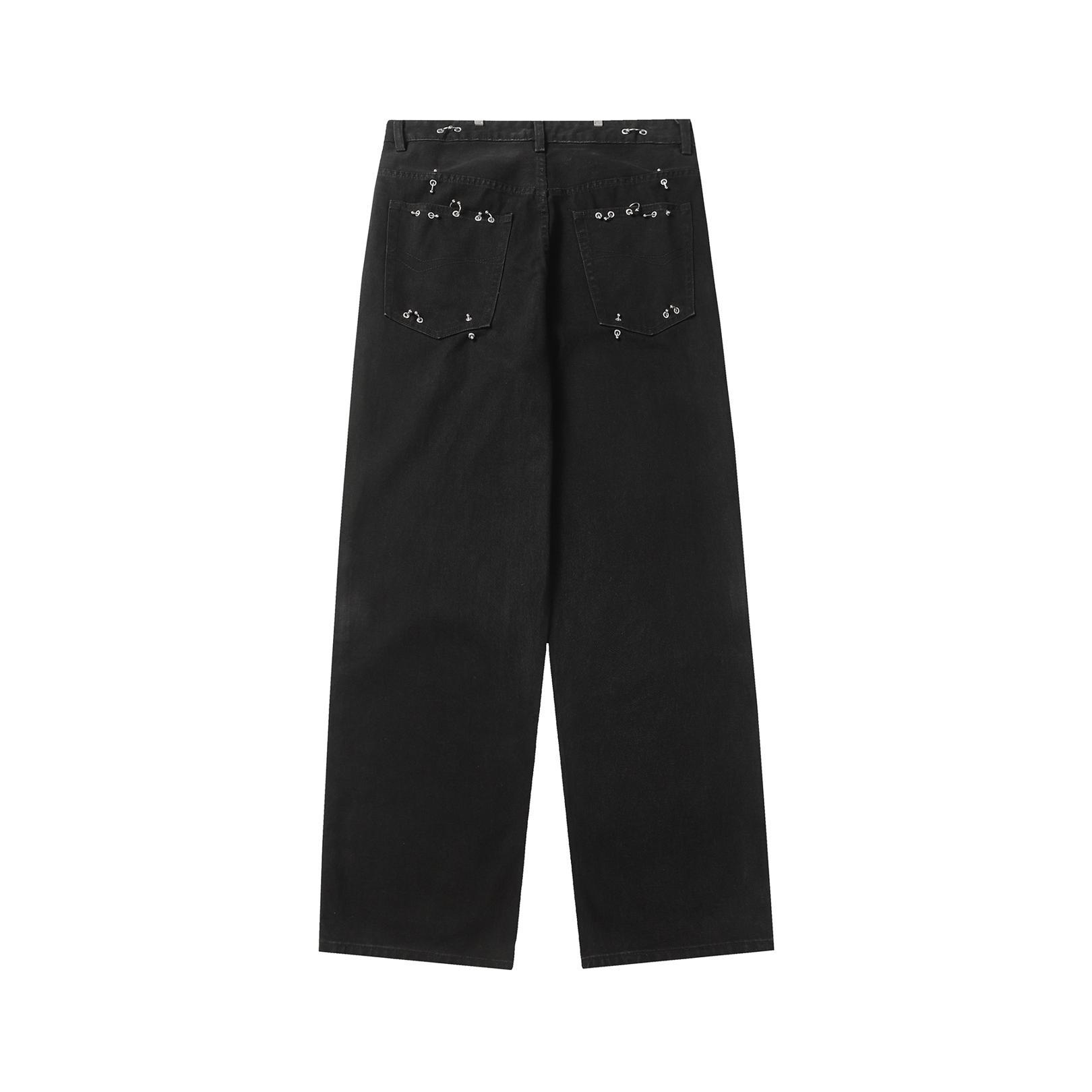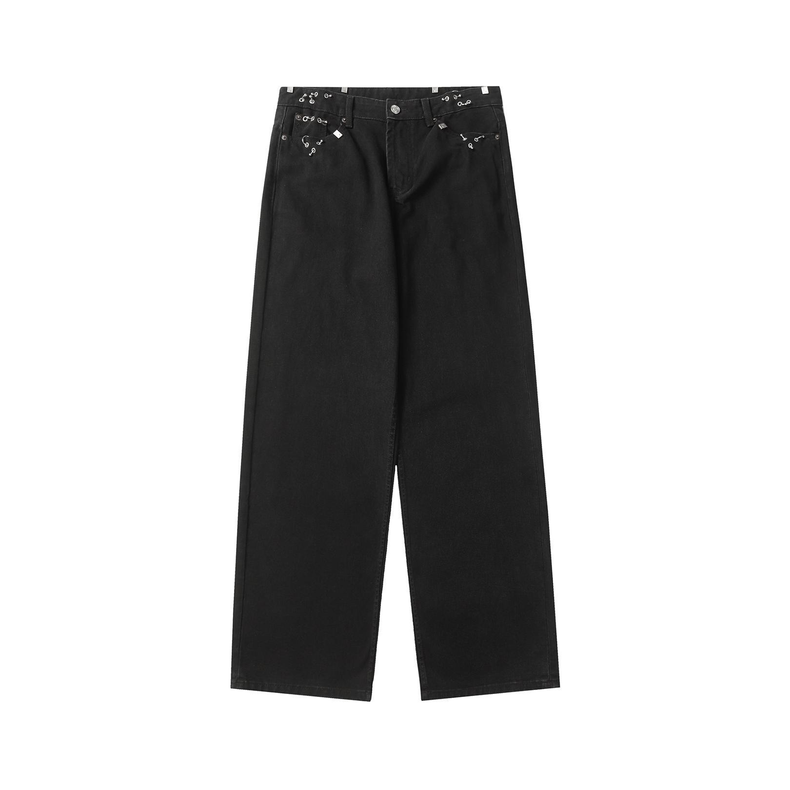 스트리트 힙합 리벳 피어싱 아이언 링 버클 중공업 청바지 남성 아메리칸 스타일 세탁 오래 된 느슨한 스트레이트 바지스토어 가기