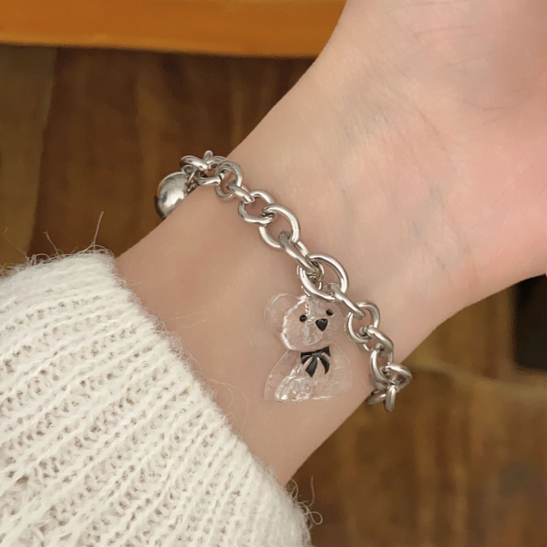 만화 귀여운 투명한 3 차원 곰 팔찌 여성 일본과 한국 얼음 섬유 패션 달콤한 멋진 여자 친구 팔찌 액세서리스토어 가기