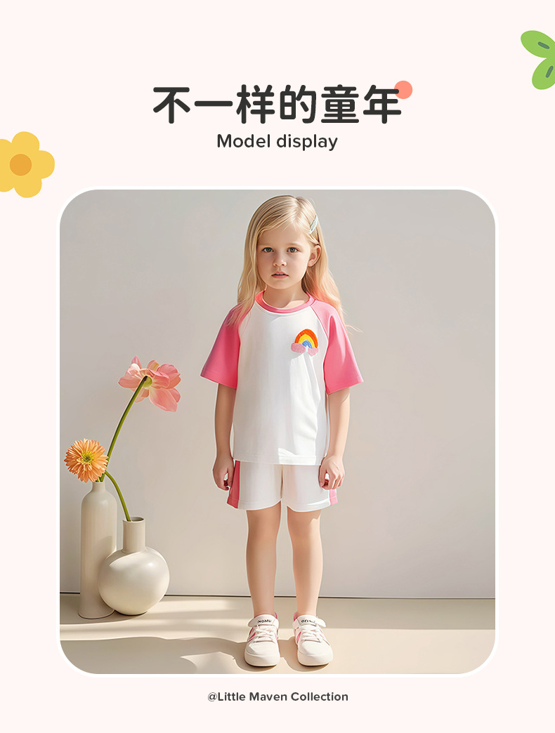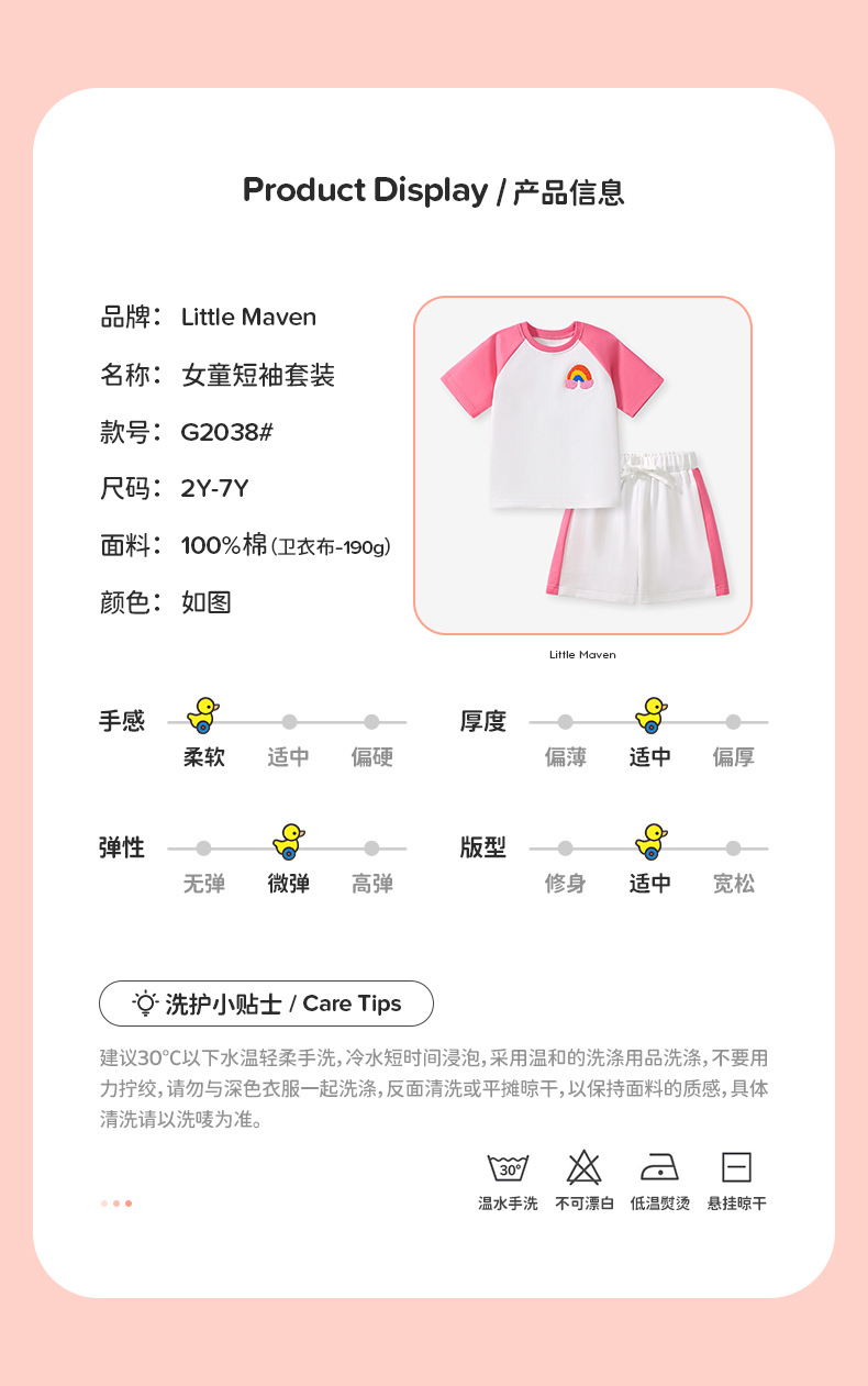 작은 maven 반팔 소녀 세트 여름 면화 어린이 아동복 유럽과 미국의 패션 타월 자수 어린이 세트스토어 가기