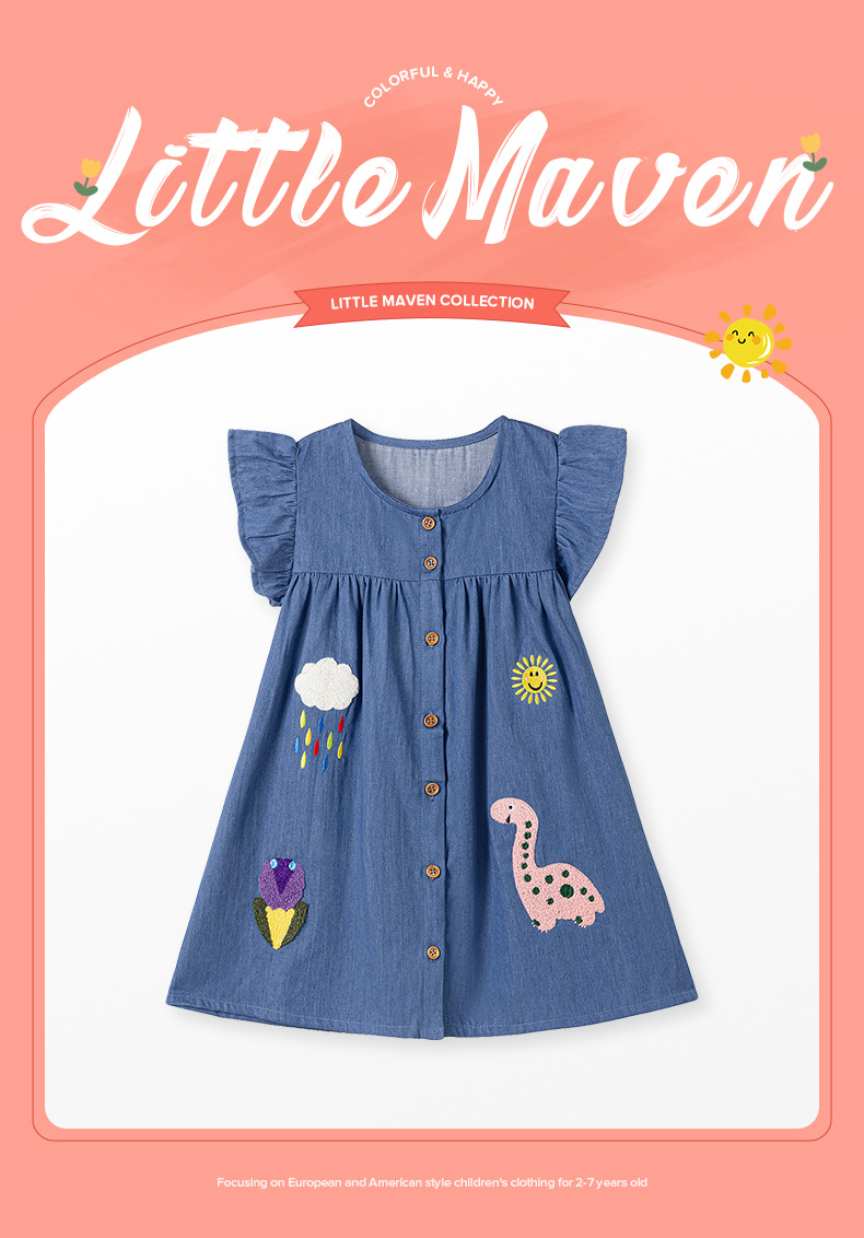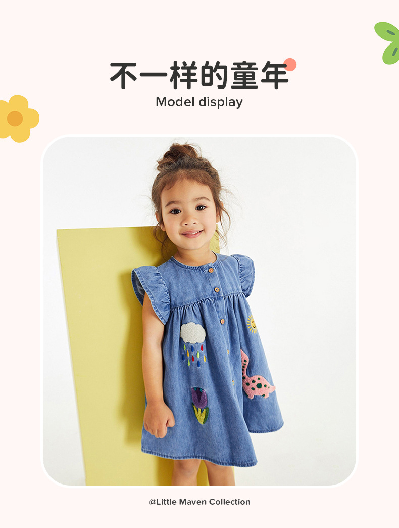 작은 maven 유럽과 미국 여자 짧은 소매 데님 치마 여름 어린이 치마 천 자수 만화 패션 어린이 치마스토어 가기