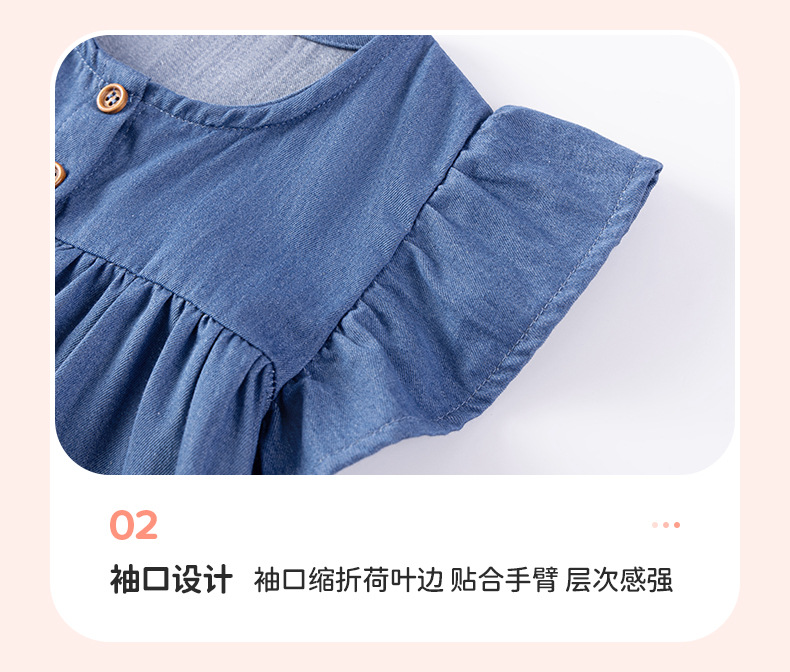 작은 maven 유럽과 미국 여자 짧은 소매 데님 치마 여름 어린이 치마 천 자수 만화 패션 어린이 치마