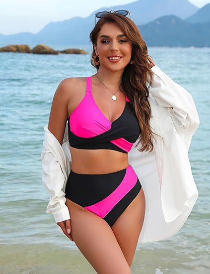 2025 여성 하이 허리 비키니 스플릿 세트 컬러 매칭 테더 비키니, 아마존 뜨거운 대외 무역 수집스토어 가기
