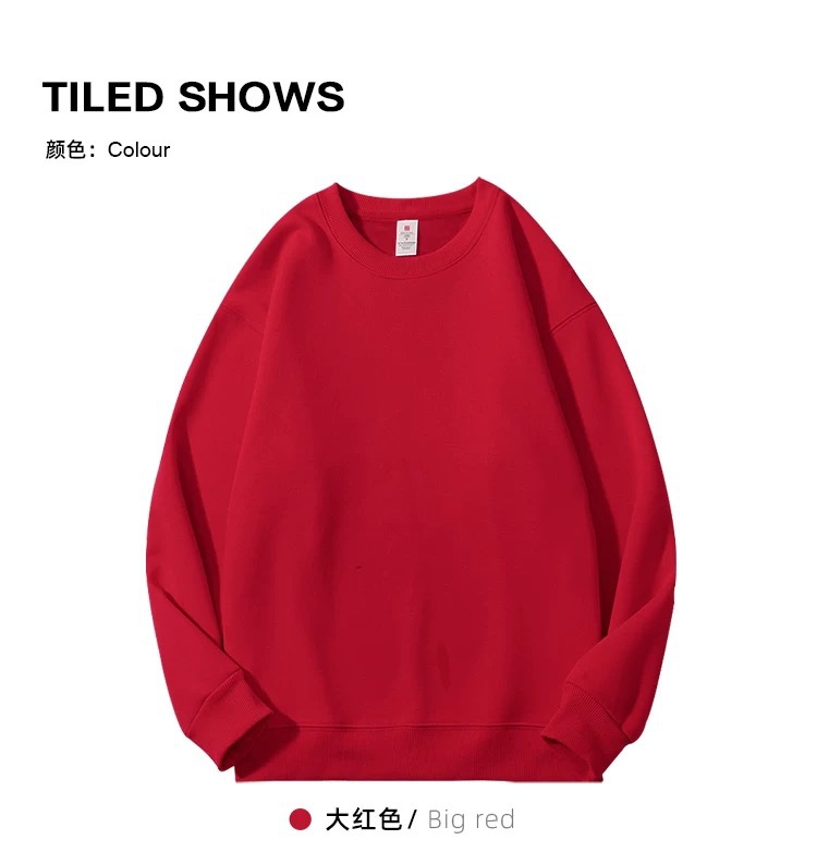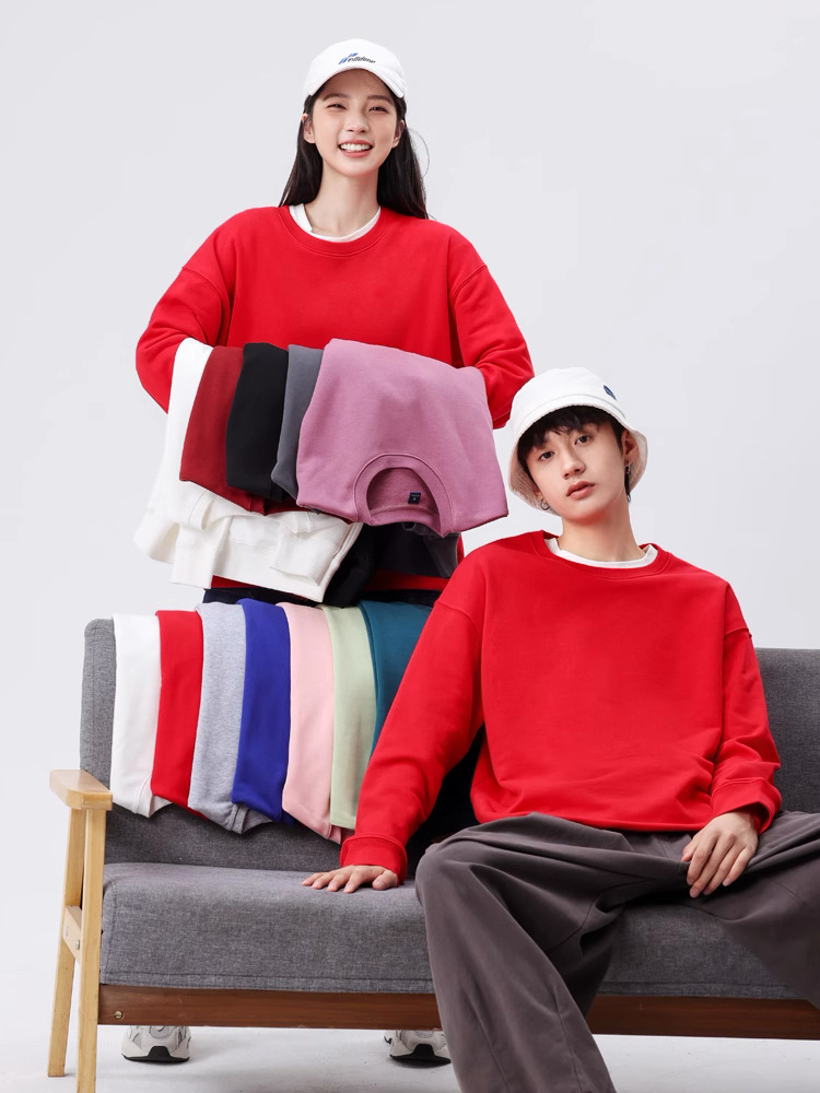 • 버건디 중국산 코튼 라운드넥 플리스 스웨트셔츠
