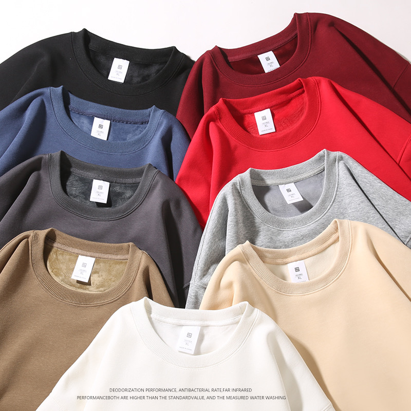 커피 다크 브라운 500g 무거운 기모 조끼 남성 실버 여우 벨벳 따뜻한 둥근 목 느슨한 단색 긴 소매 가을과 겨울 바지 셔츠스토어 가기