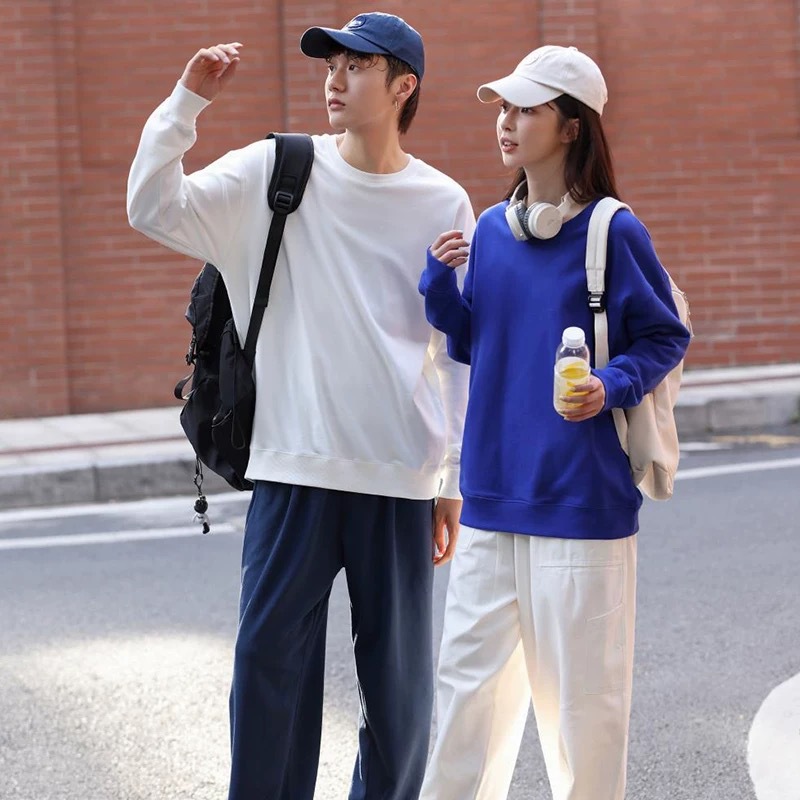 • 로얄 블루 중국산 코튼 라운드 넥 플리스 스웨트셔츠
