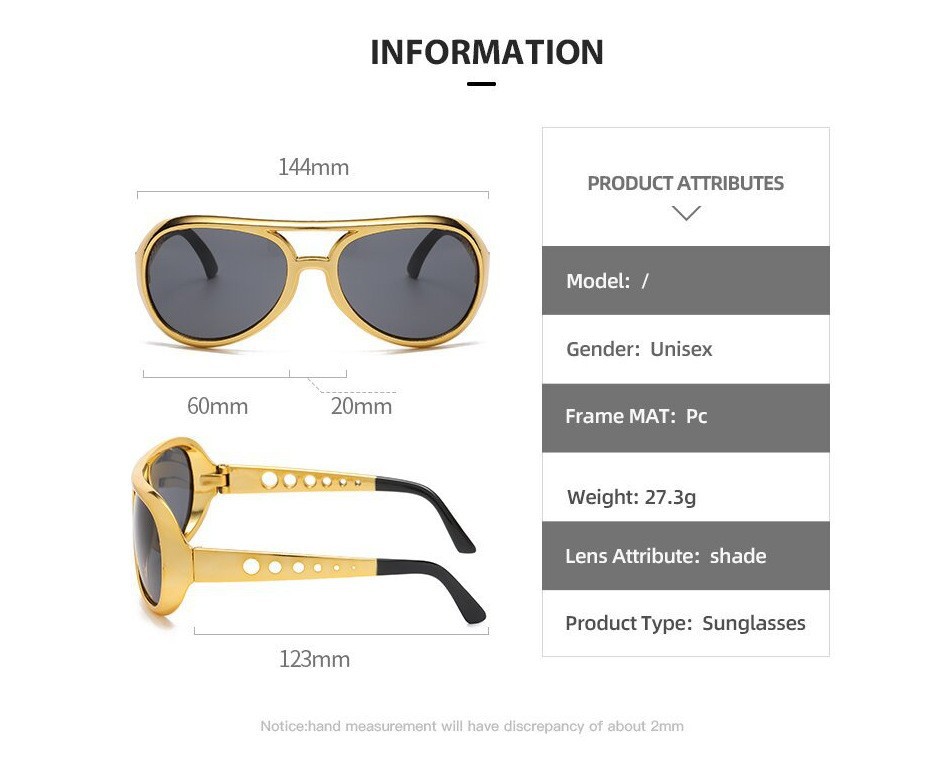 공장 직판 엘비스 선글라스 골드 파티 퍼포먼스 패션 남녀 공용 스타일 큰 얼굴용