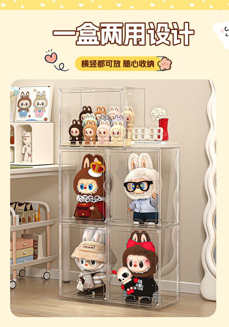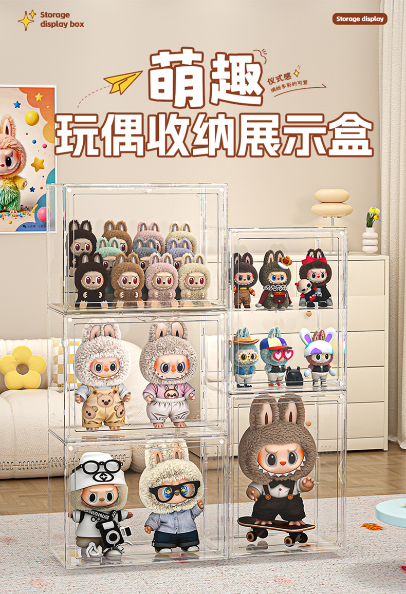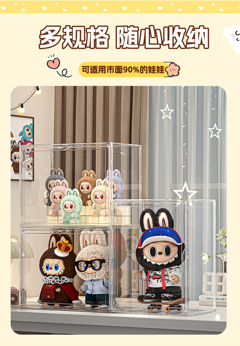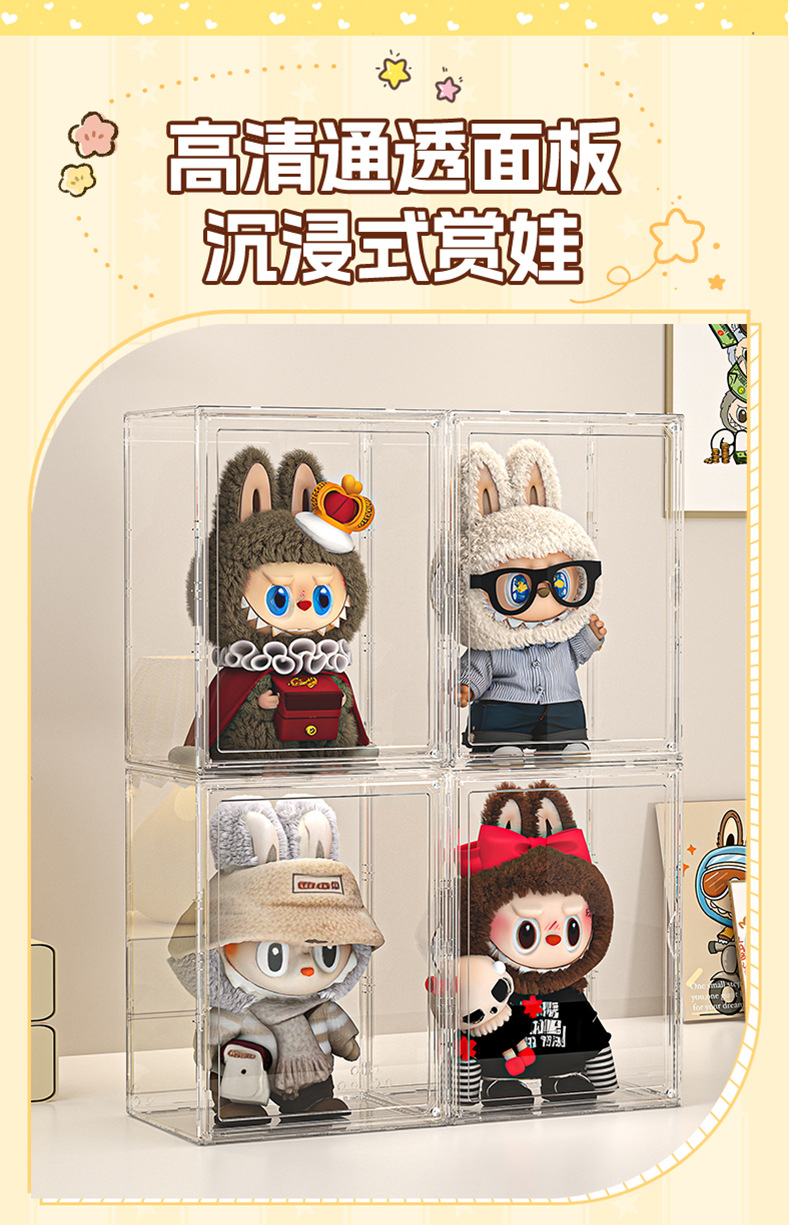 Labubu 그림 디스플레이 상자 labubu 비닐 디스플레이 캐비닛 아크릴 보관 상자 먼지 커버 하루노 보호 커버스토어 가기
