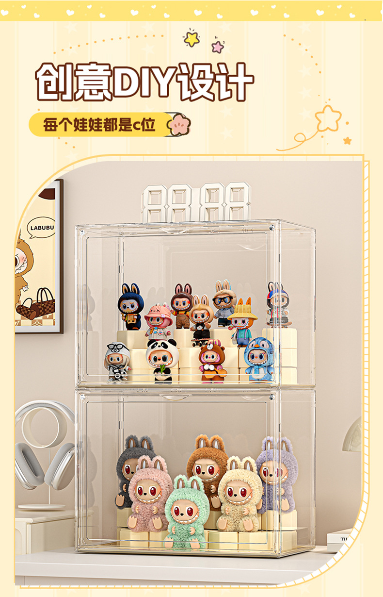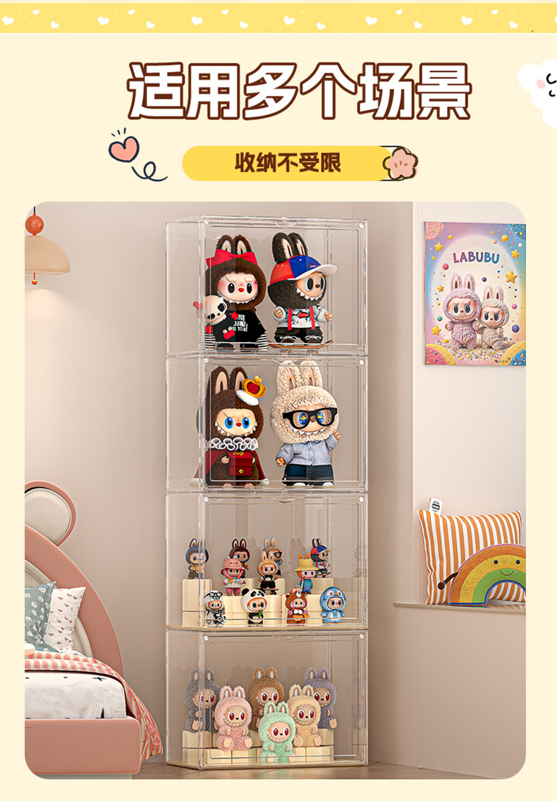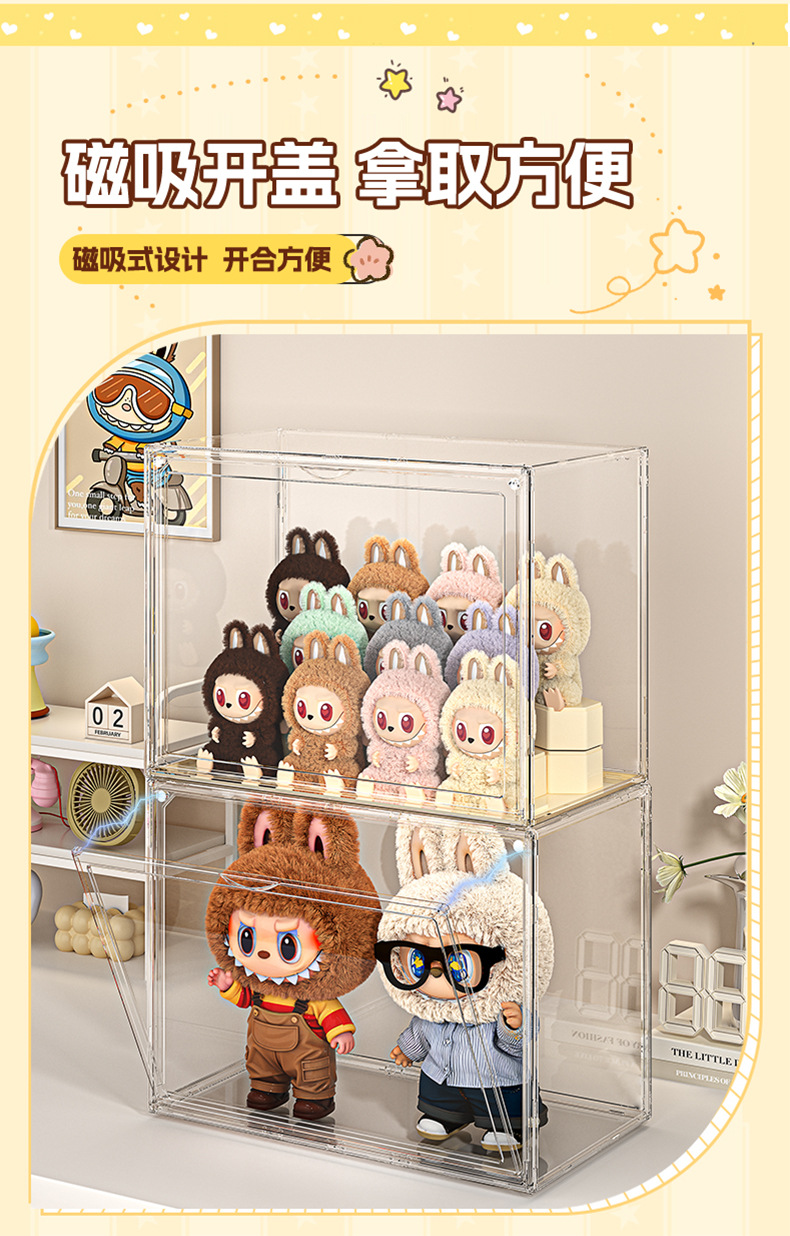 Labubu 그림 디스플레이 상자 labubu 비닐 디스플레이 캐비닛 아크릴 보관 상자 먼지 커버 하루노 보호 커버스토어 가기