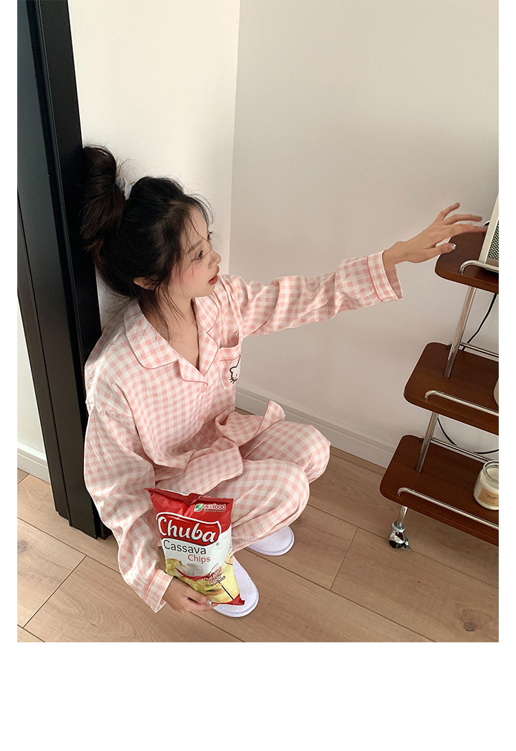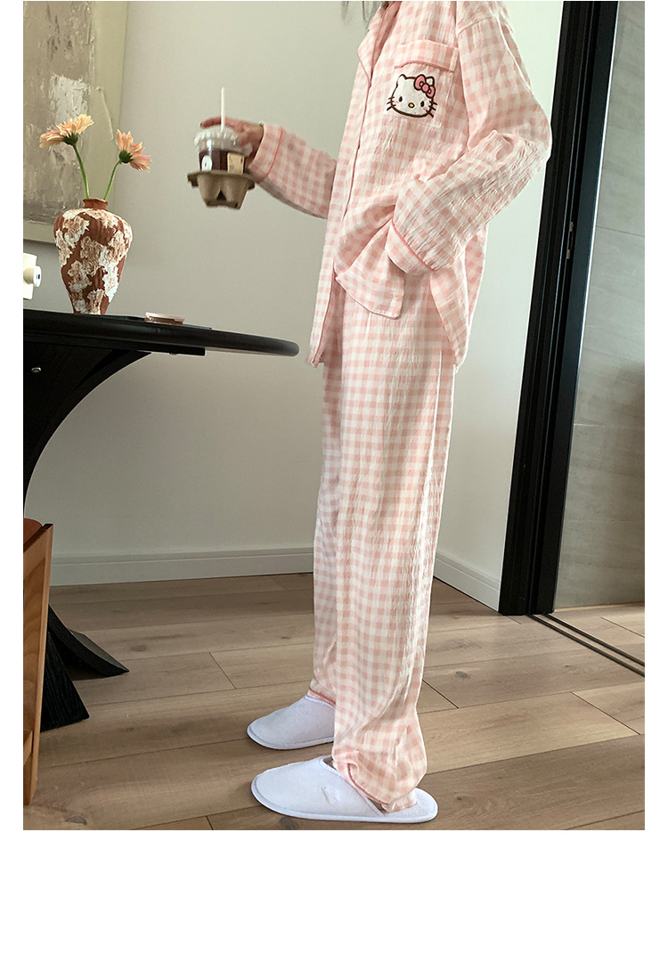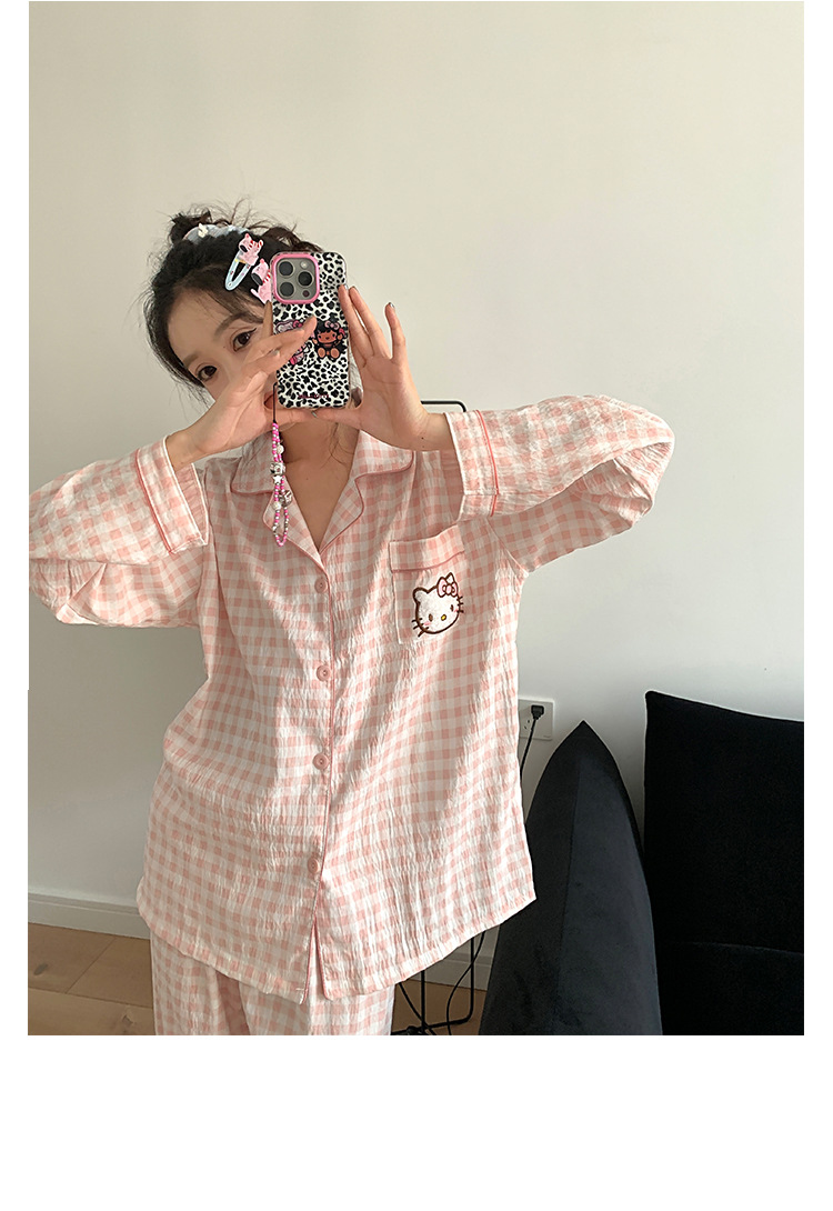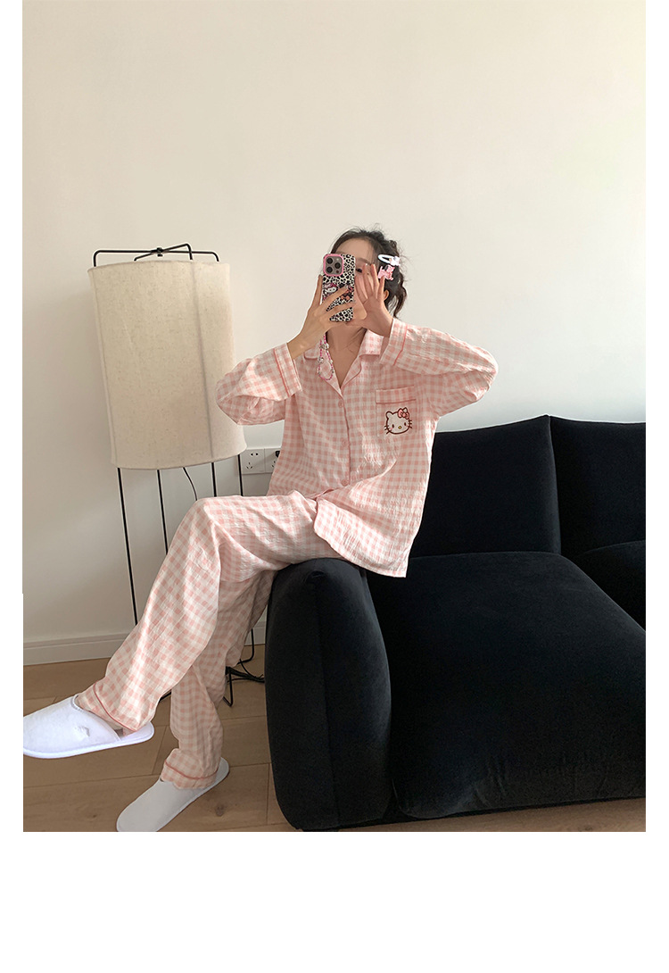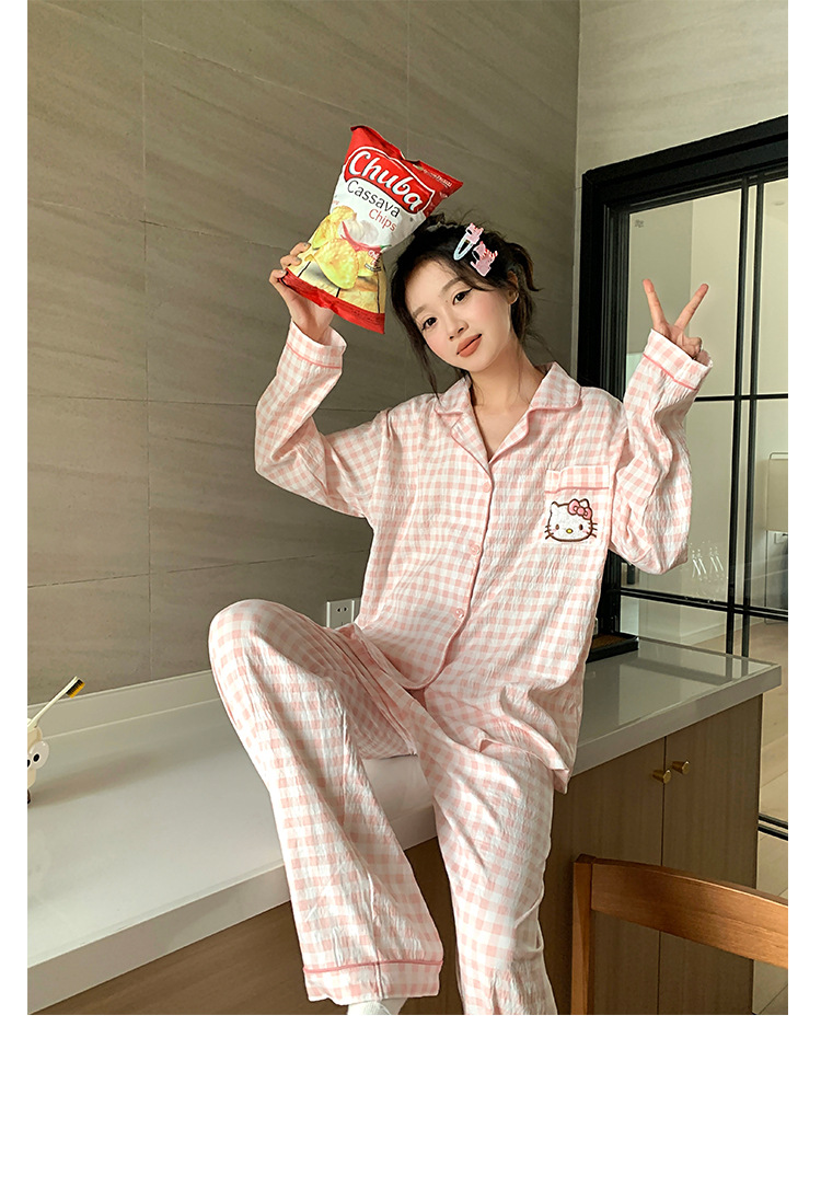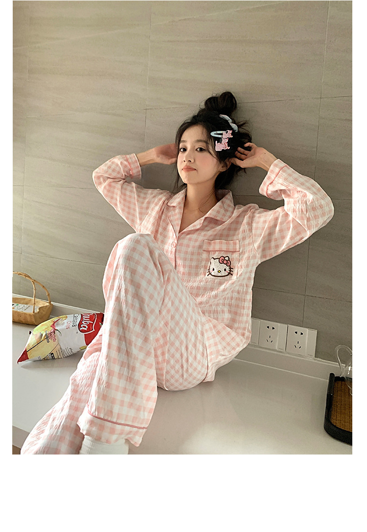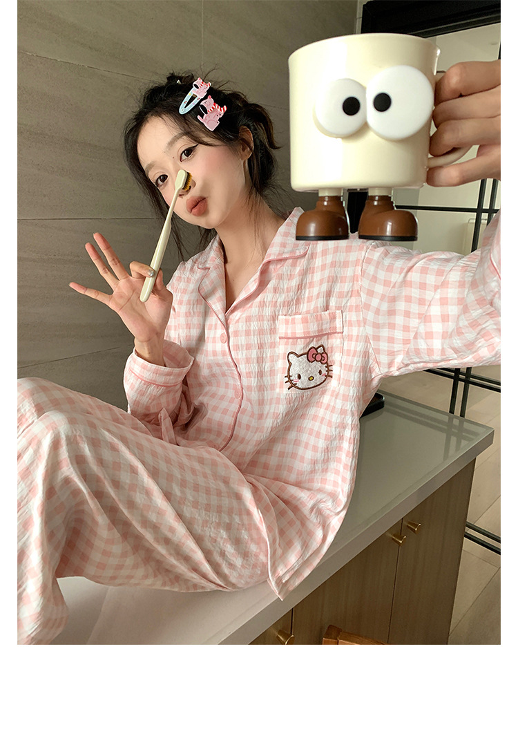 만화 KT 고양이 잠옷 여성의 봄과 가을 새로운 긴 소매 바지 구름 면 달콤한 귀여운 학생 홈 의류 세트스토어 가기