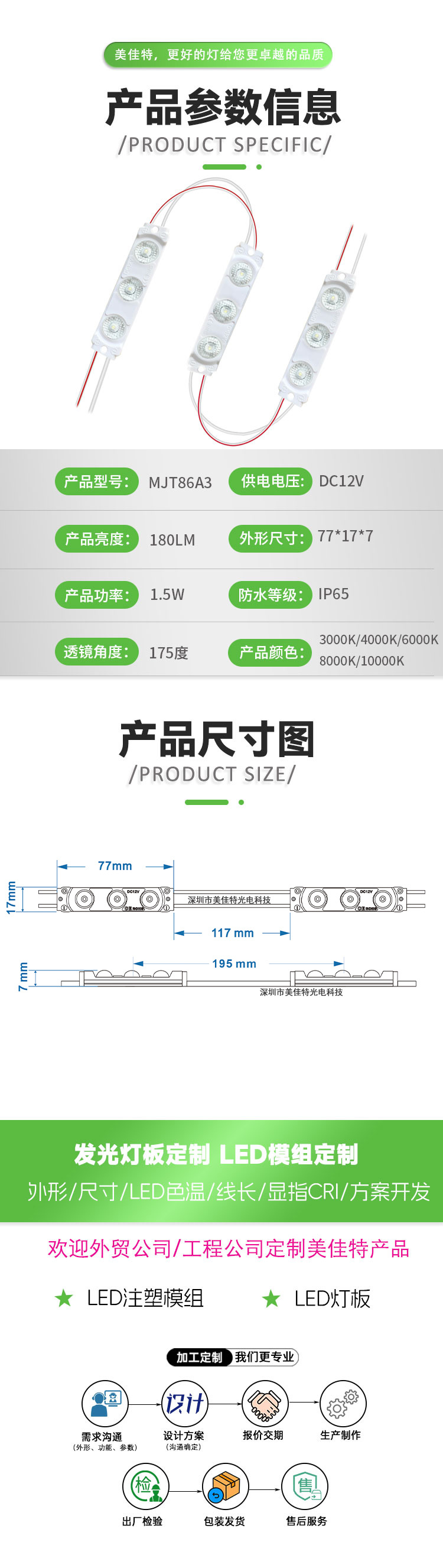 오스람 삼성 2835LED 주입 모듈 1.5w 세 조명 175 도 12v 렌즈 ip65 방수 광고 단어스토어 가기