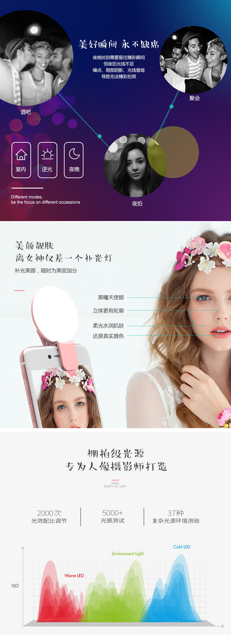휴대 전화 셀프 타이머 채우기 조명 공장을 개발하기 위해 외부 LED 플래셔 작은 Q를 촬영하는 기계 아름다움 빛 채우기스토어 가기