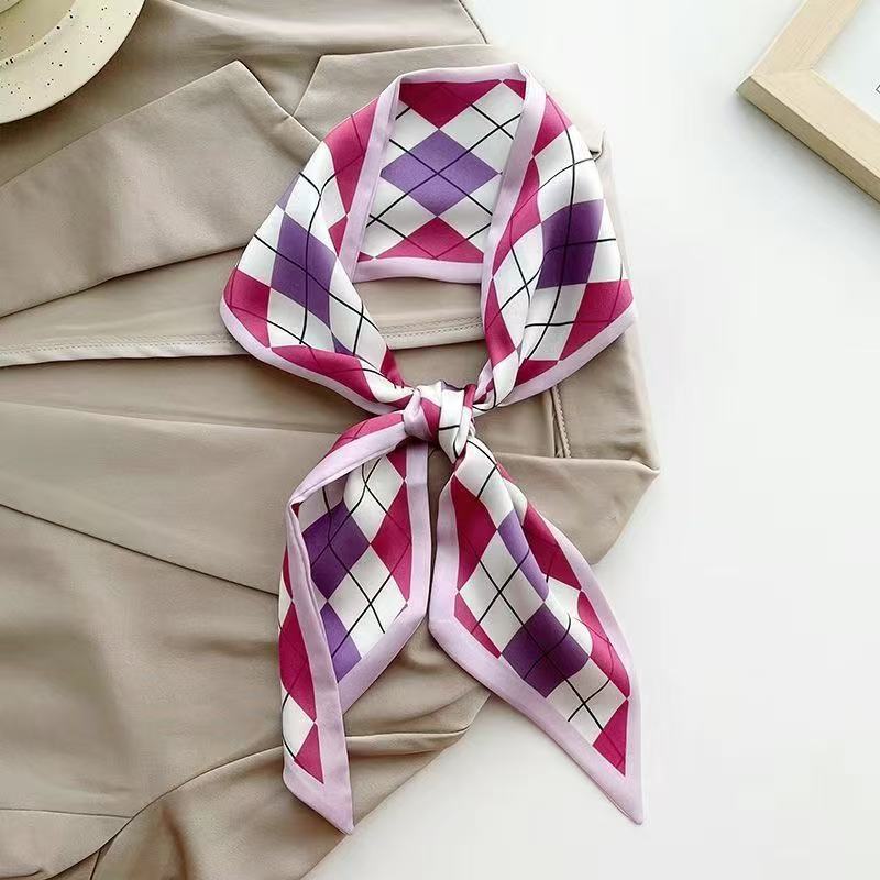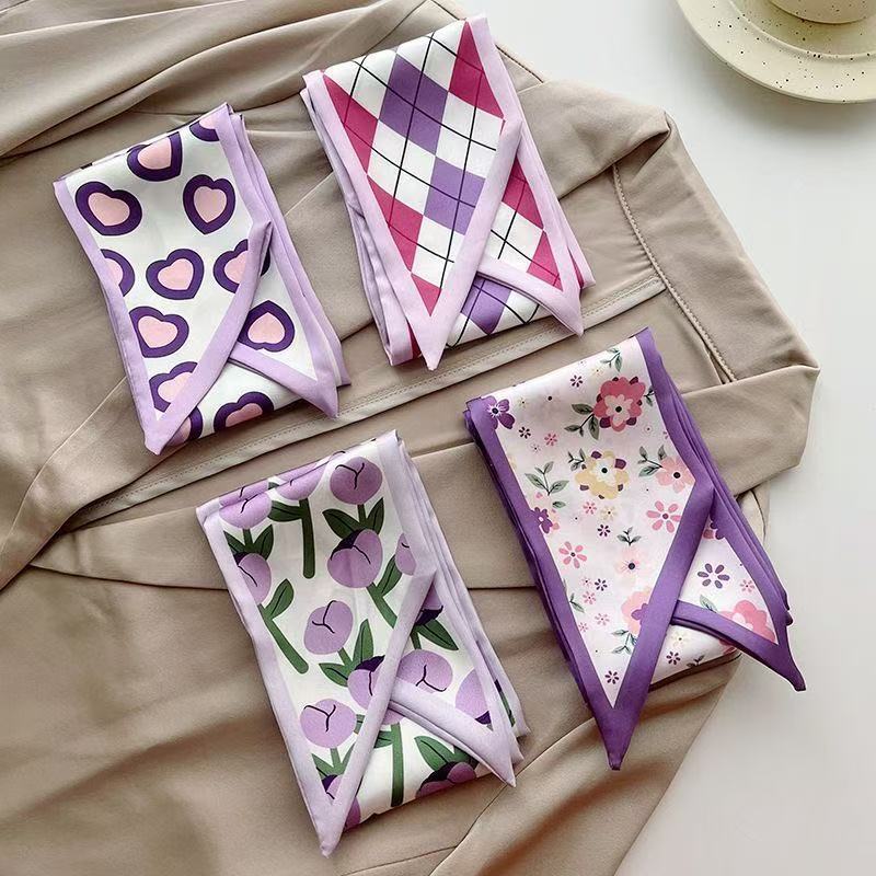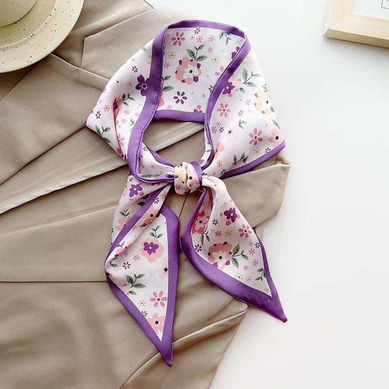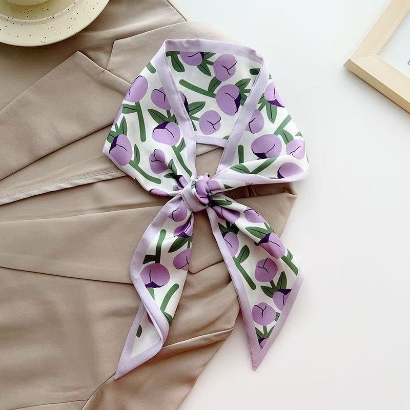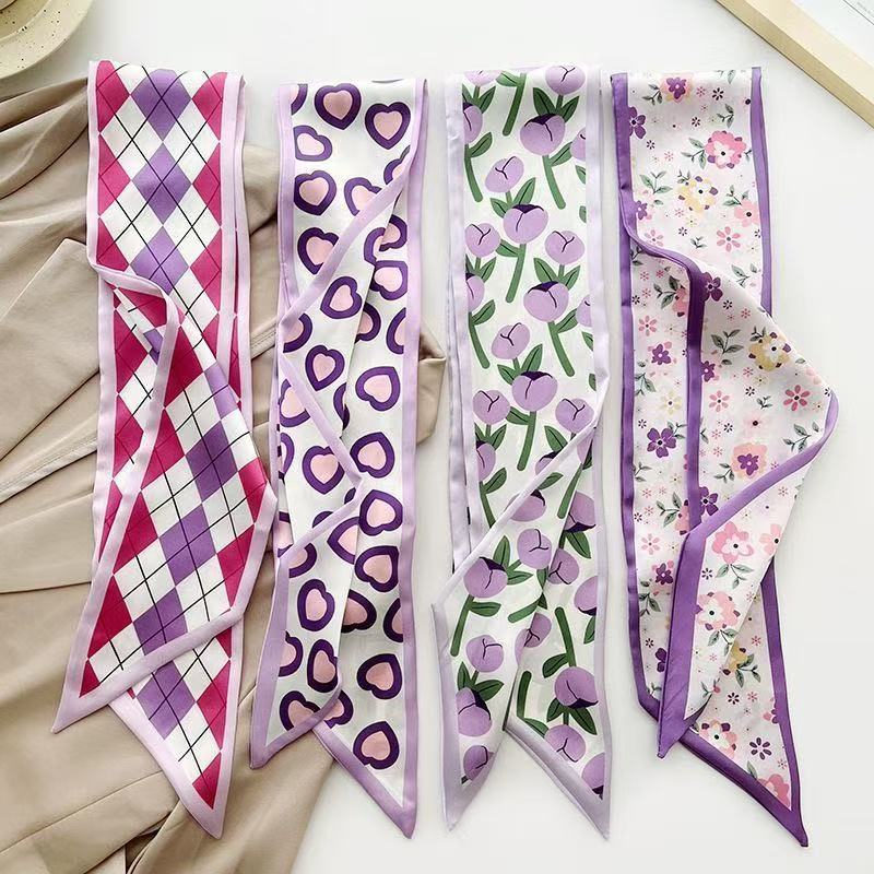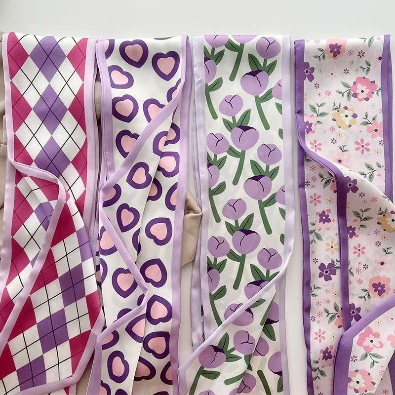 보라색 실크 스카프 작은 긴 머리 넥타이 리본 넥타이 가방 선물 상자 활 리본 타이 헤어 밴드 작은 스카프스토어 가기