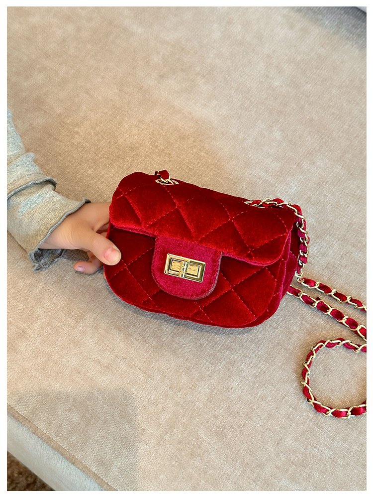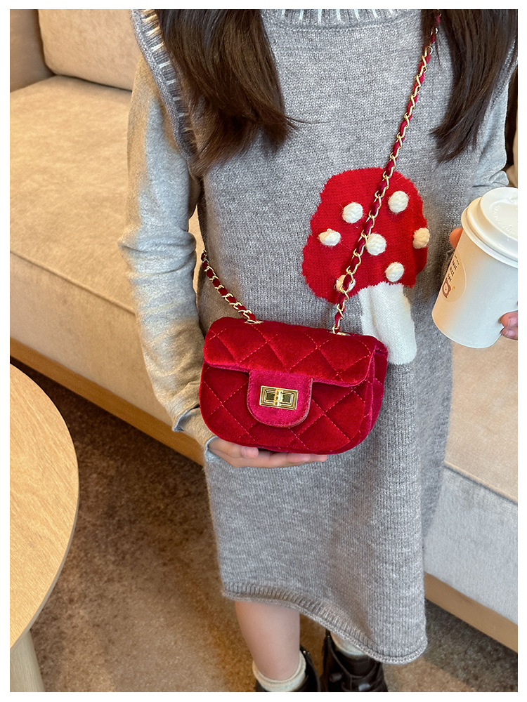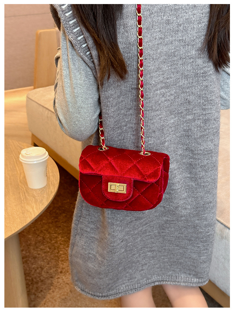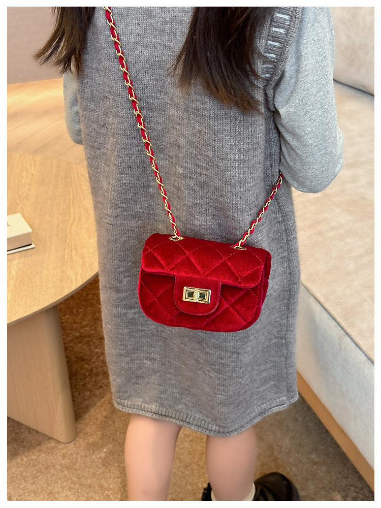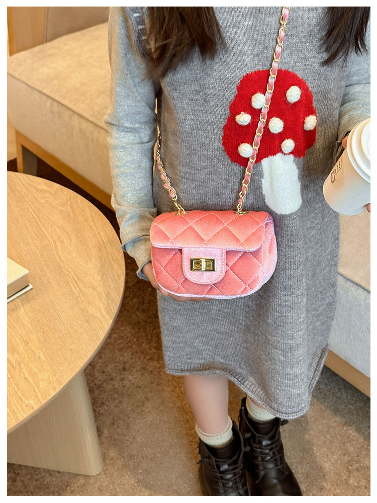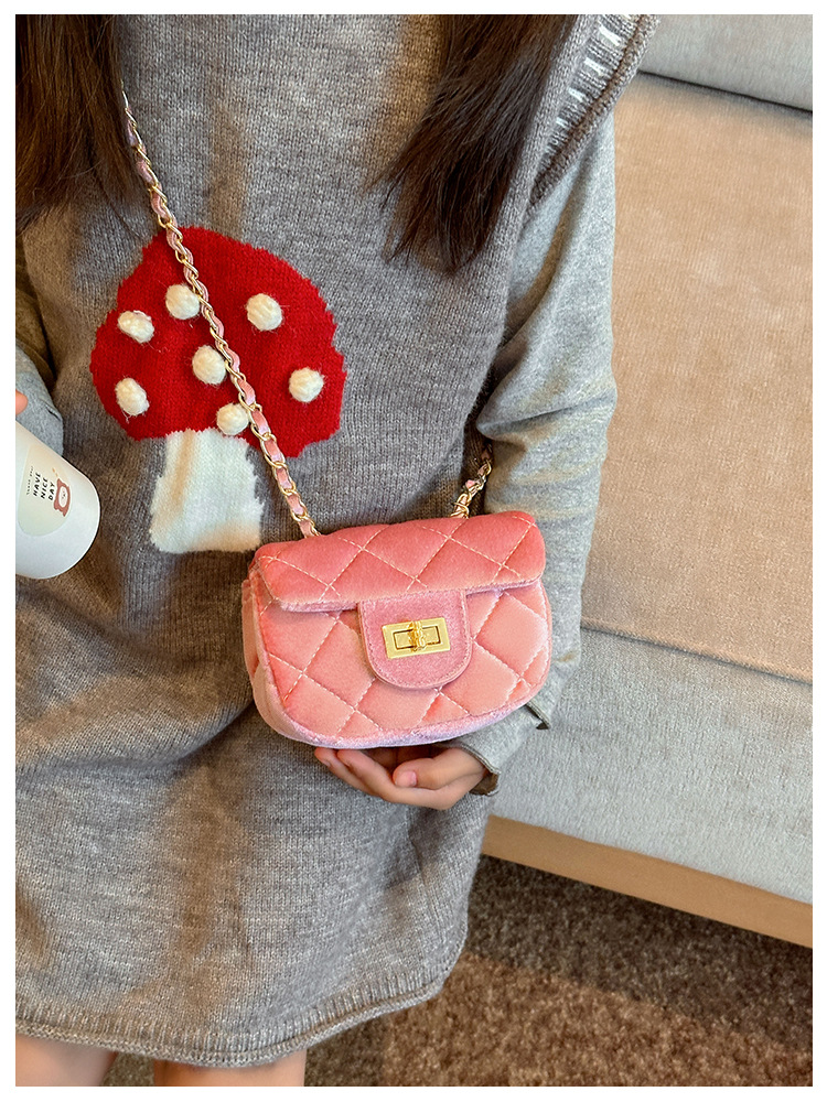 2025 새로운 소녀 작은 가방 벨벳 샤넬 스타일 다이아몬드 격자 무늬 체인 가방 미니 아기의 변경 액세서리 어깨 가방 트렌디스토어 가기