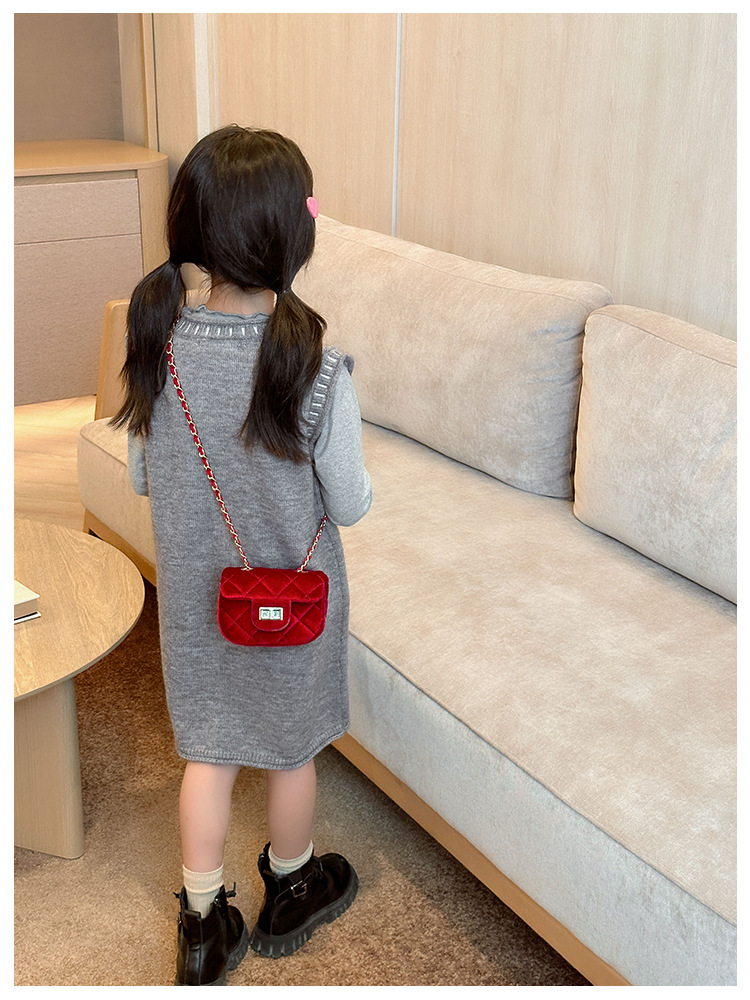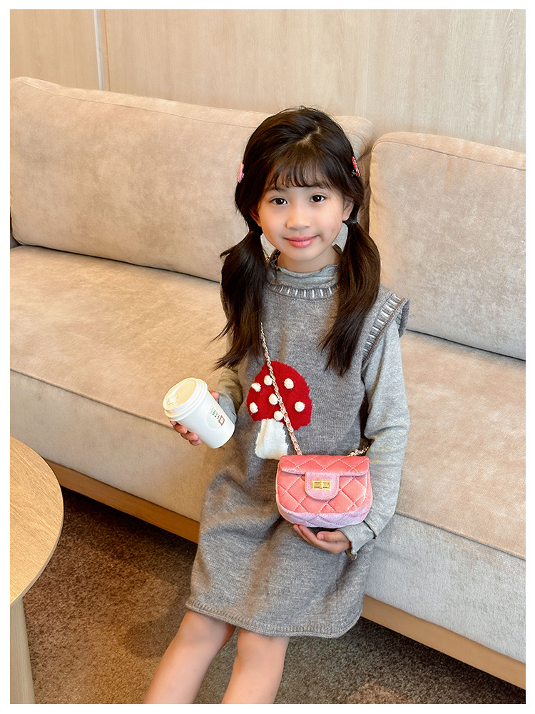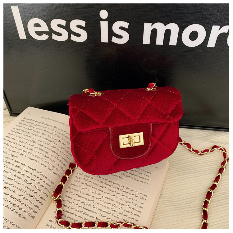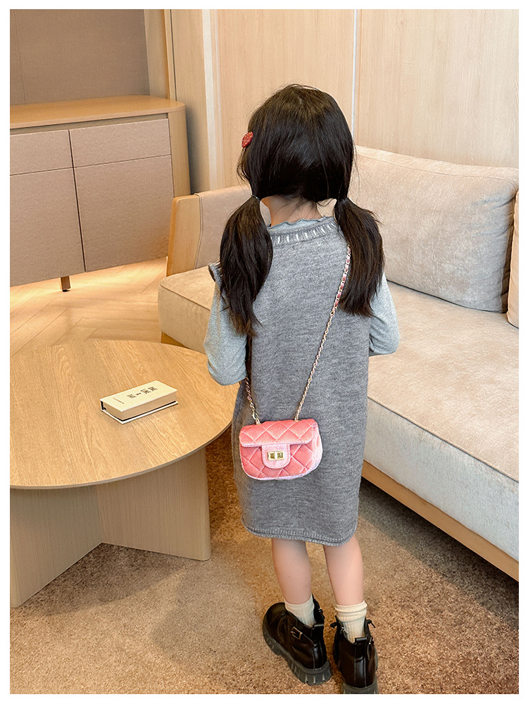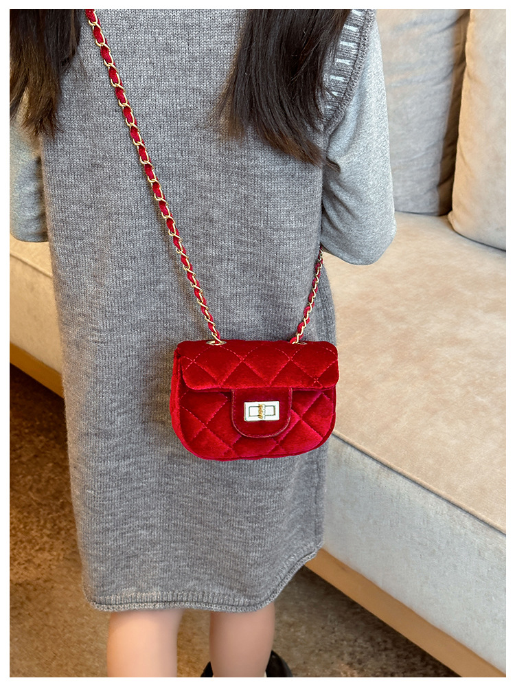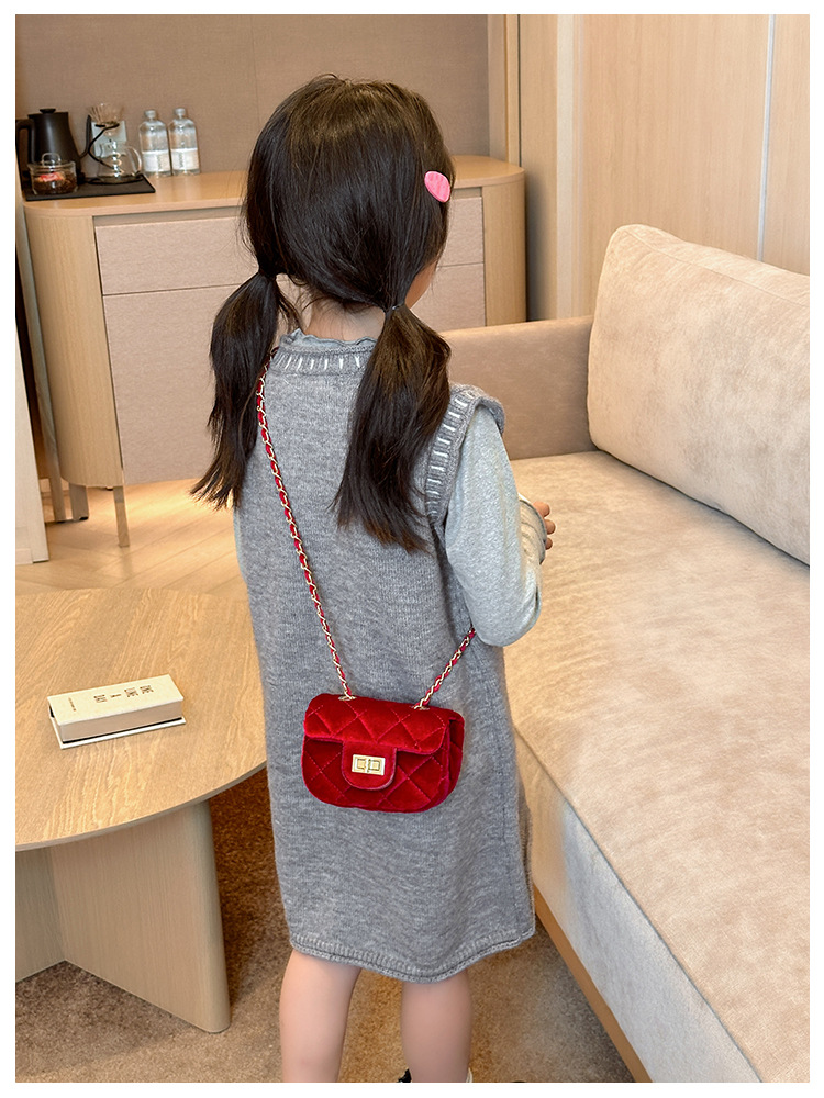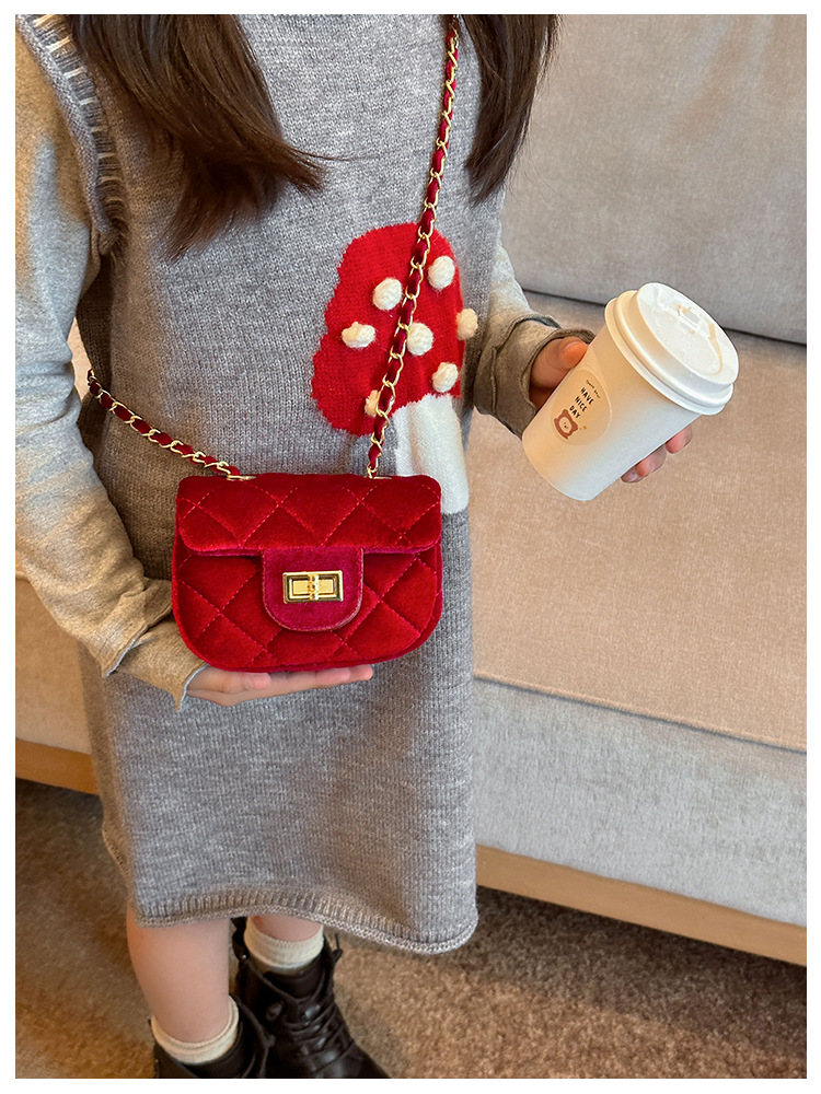 2025 새로운 소녀 작은 가방 벨벳 샤넬 스타일 다이아몬드 격자 무늬 체인 가방 미니 아기의 변경 액세서리 어깨 가방 트렌디스토어 가기