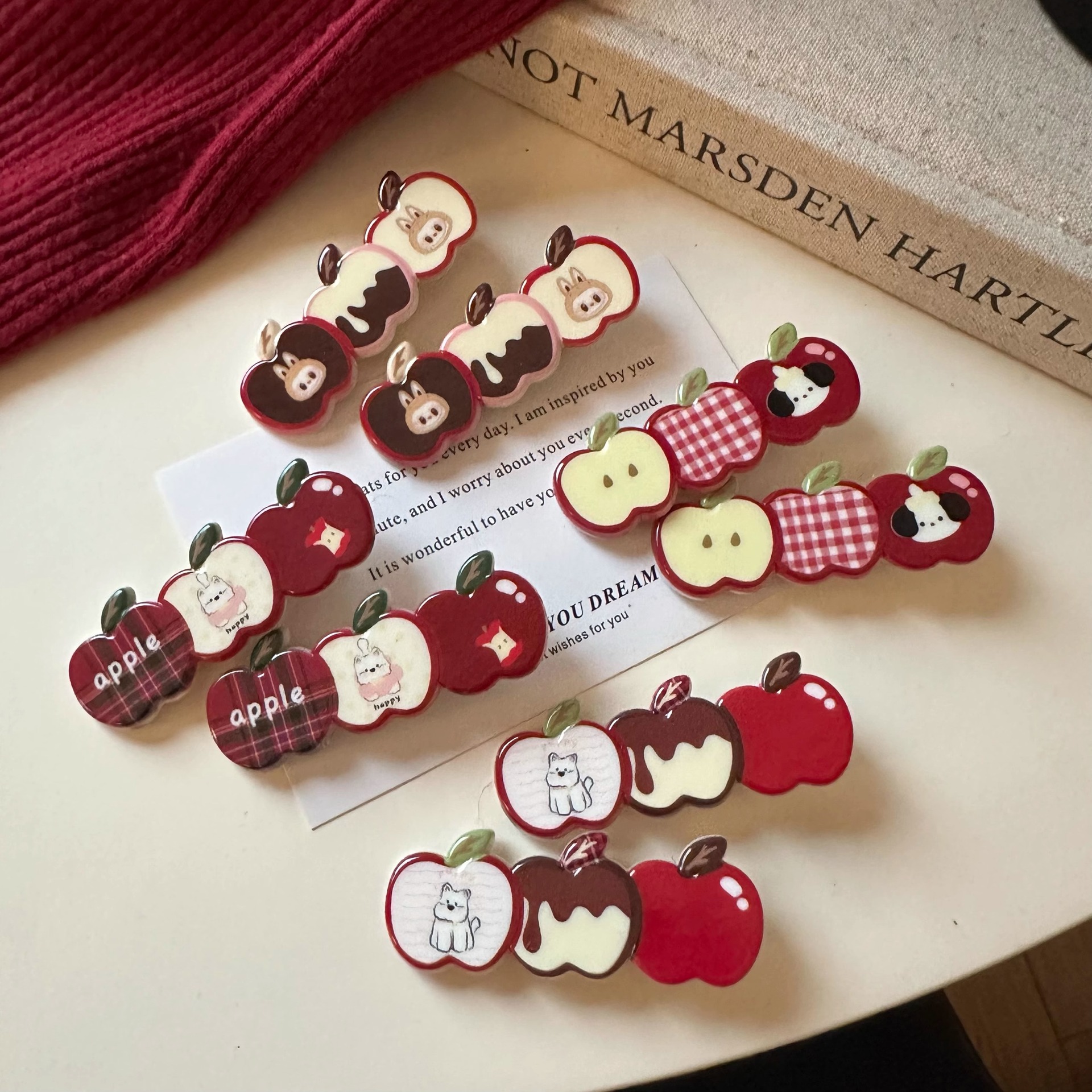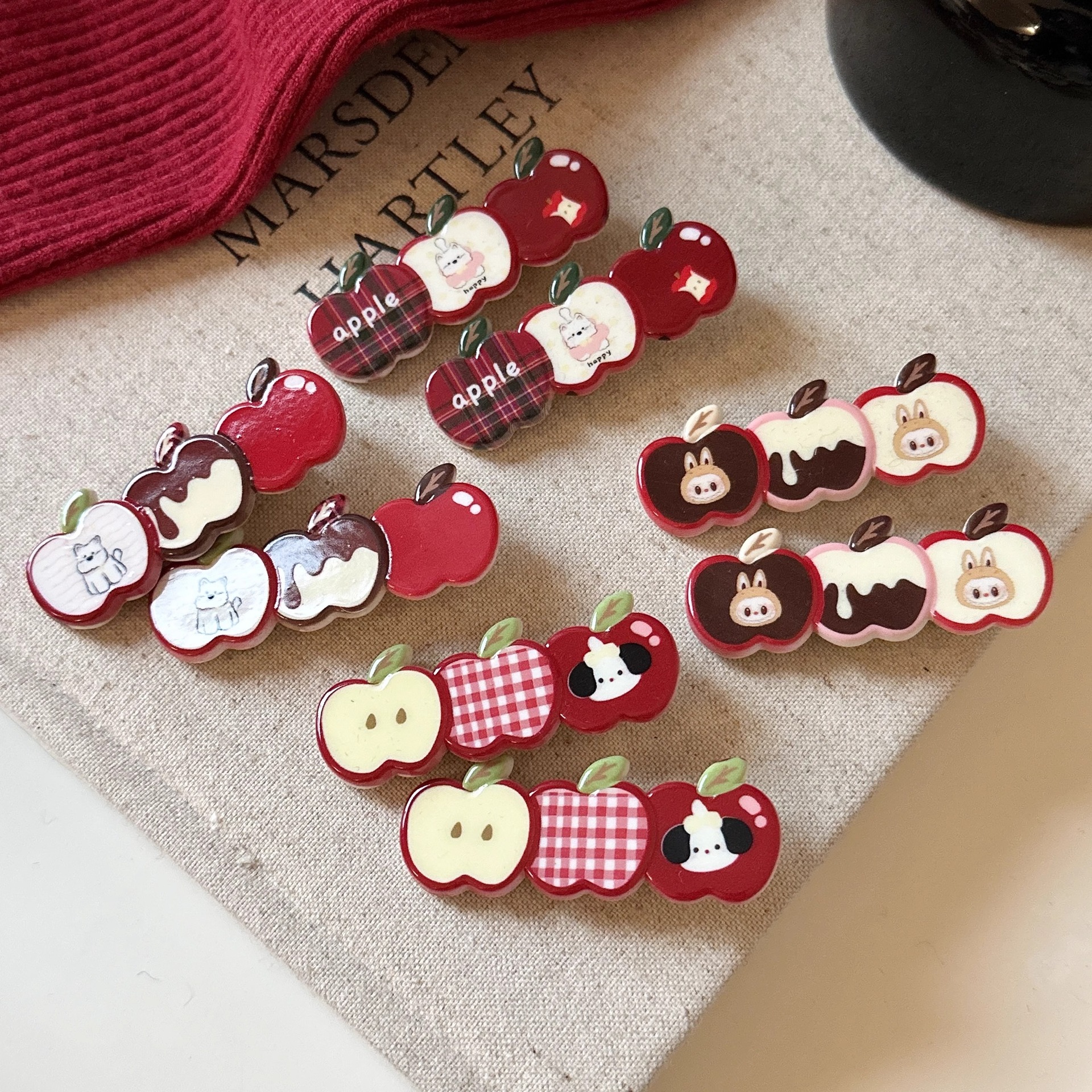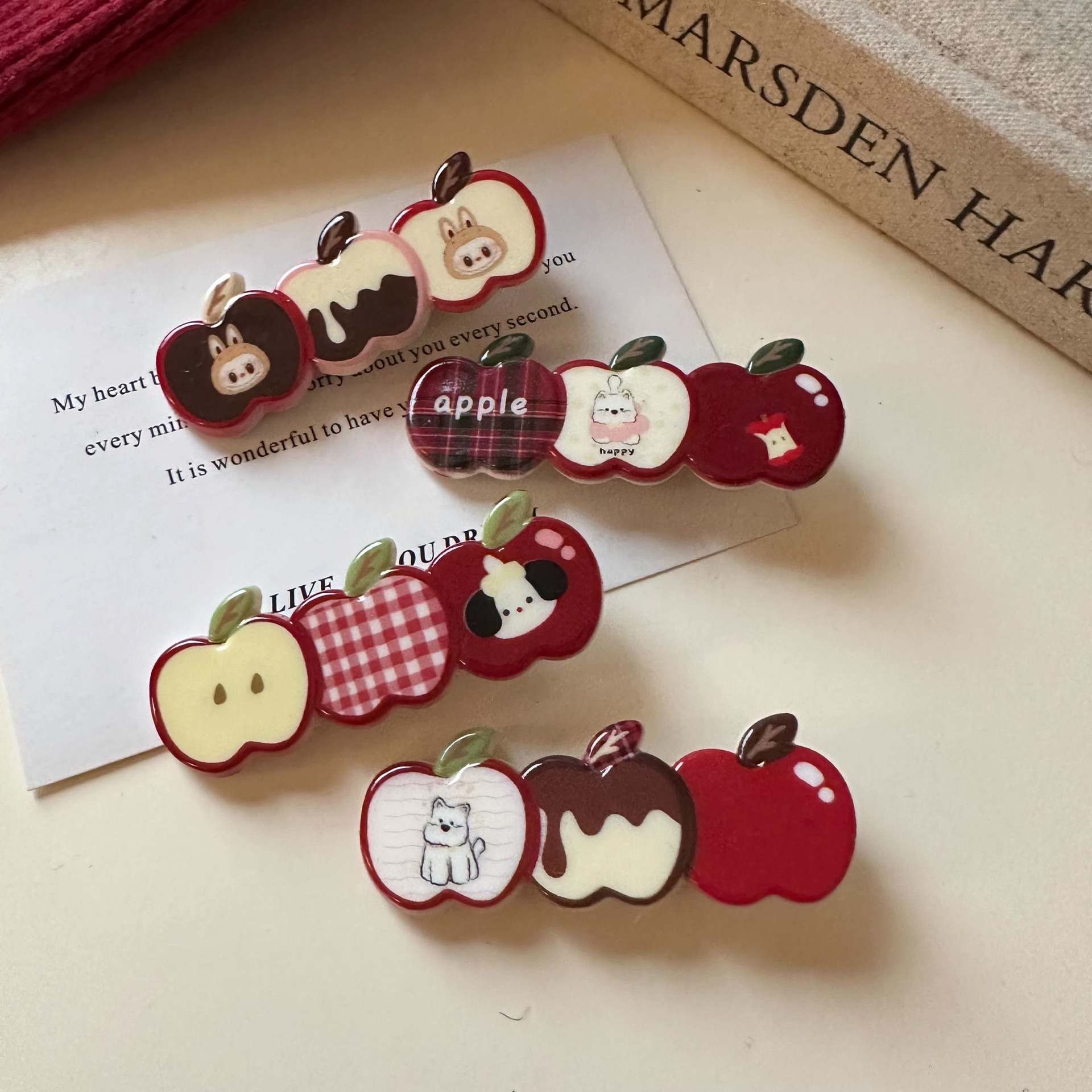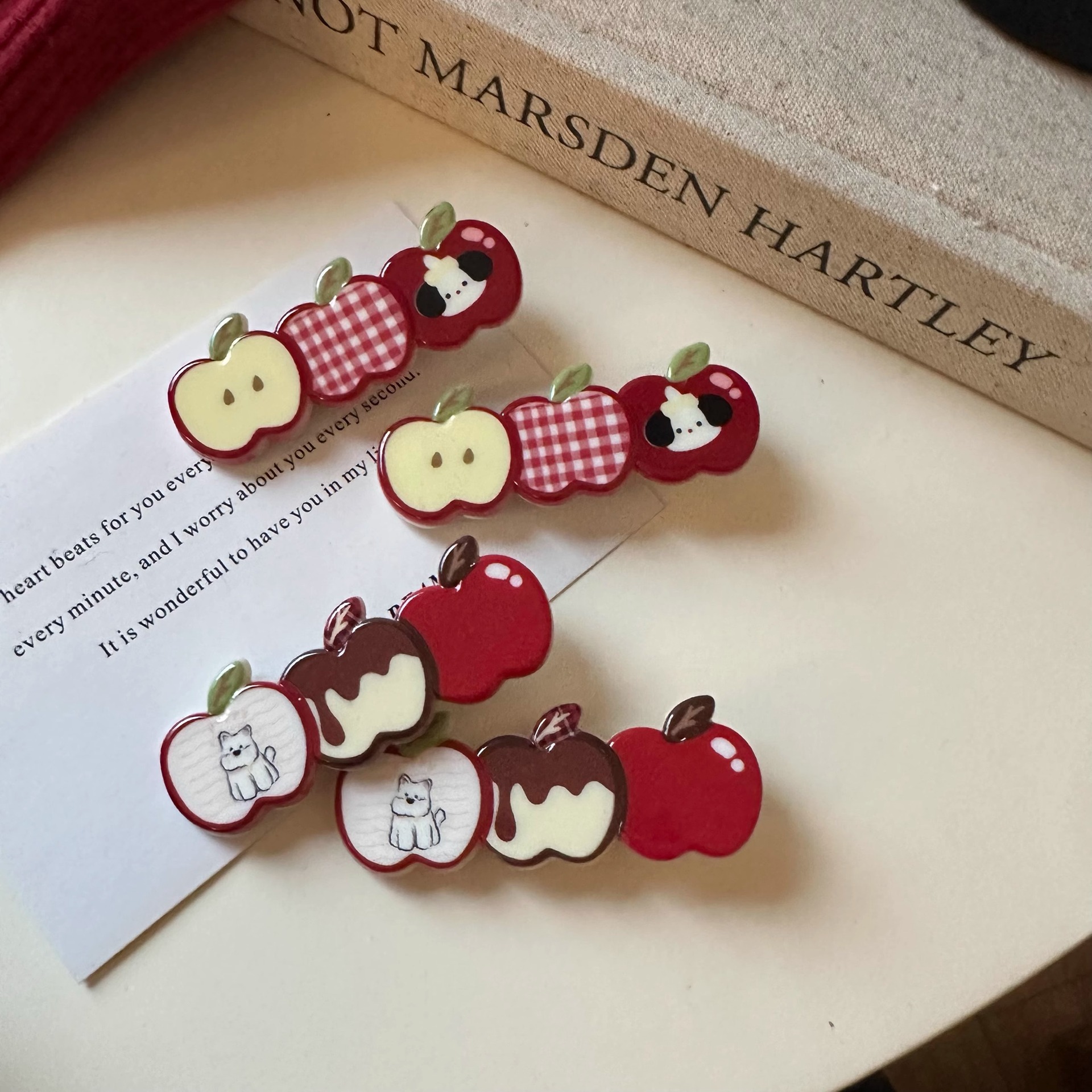 귀여운 만화 애플 헤어핀 소녀의 하트 덕빌 클립 깨진 헤어 뱅이 클립 사이드 클립 헤어핀 헤어 액세서리