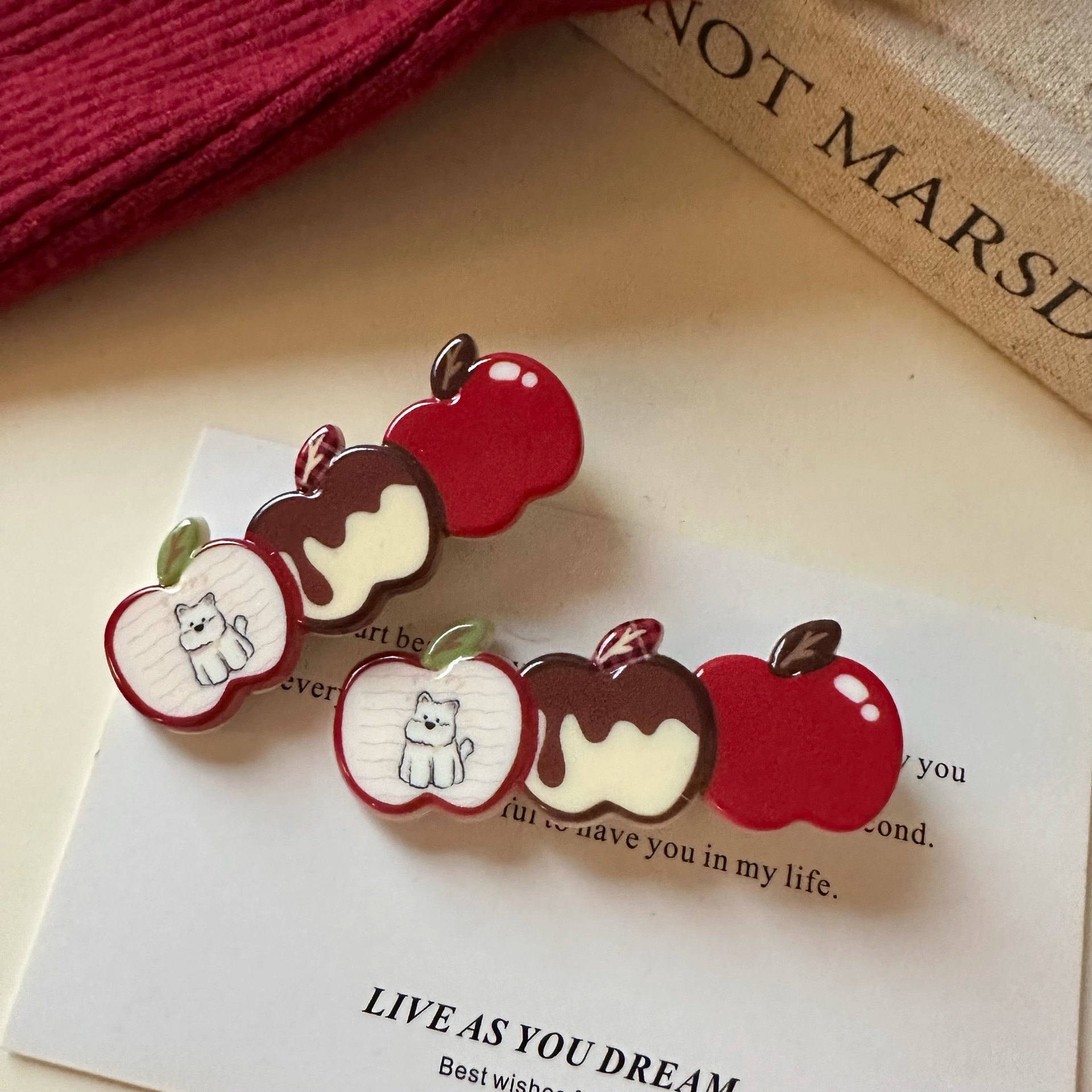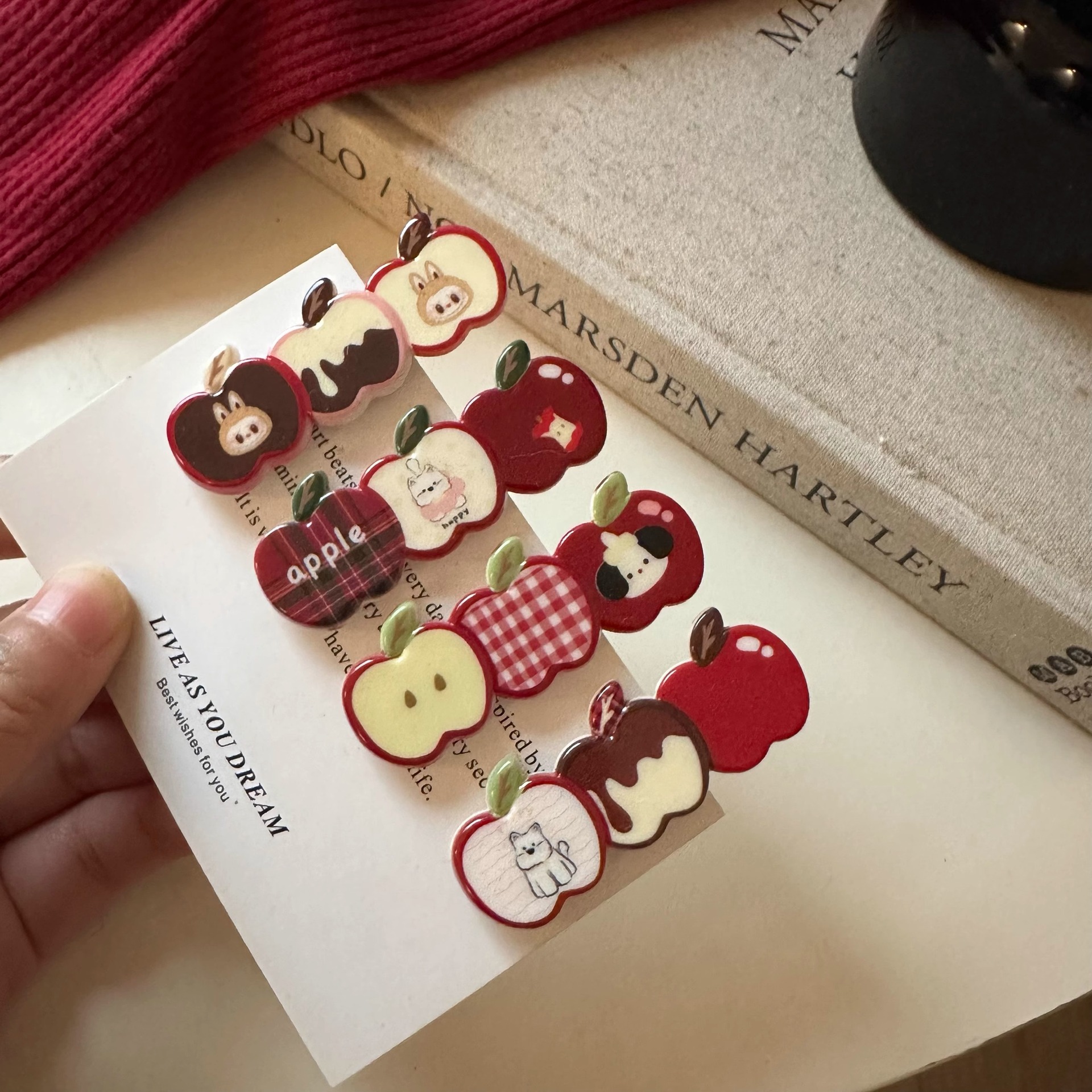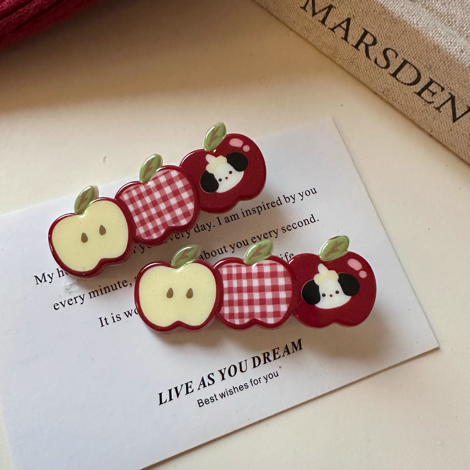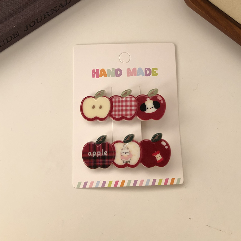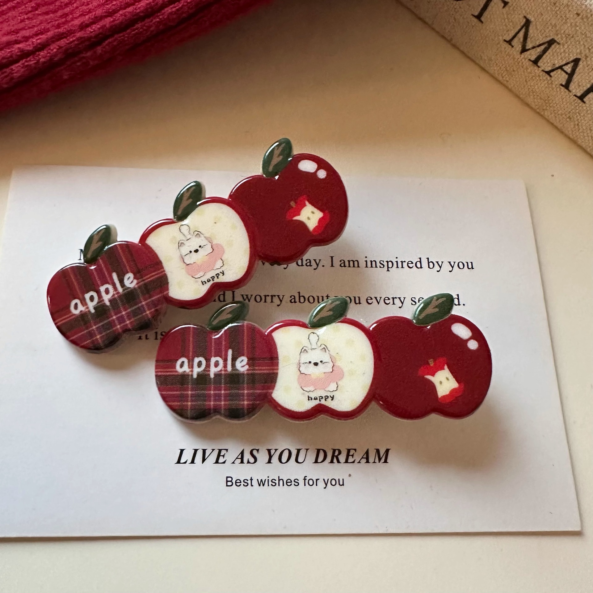 귀여운 만화 애플 헤어핀 소녀의 하트 덕빌 클립 깨진 헤어 뱅이 클립 사이드 클립 헤어핀 헤어 액세서리