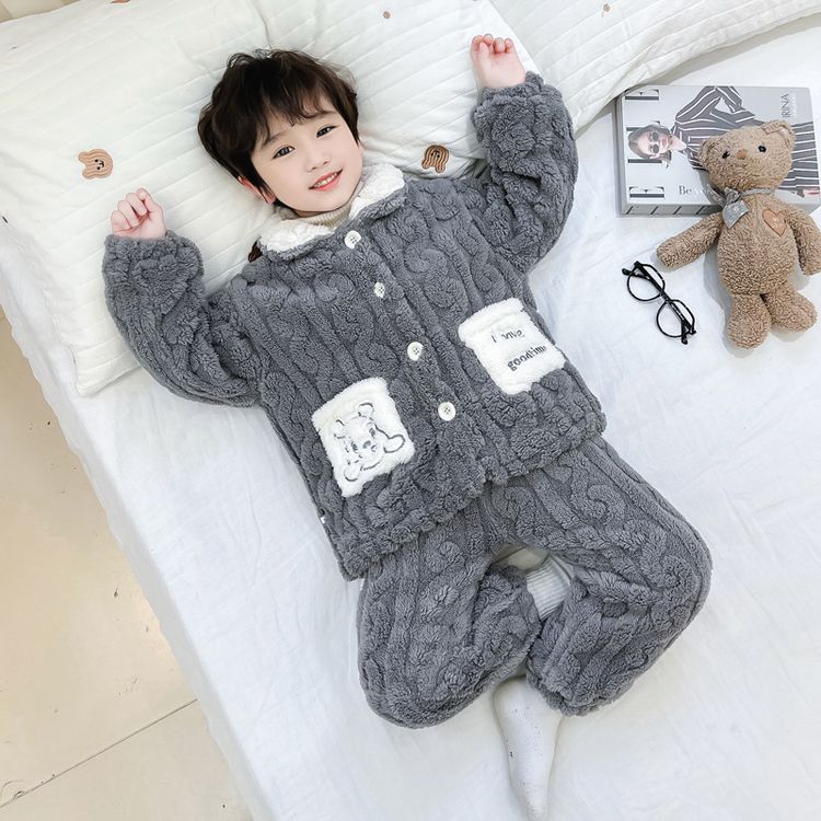 소년 산호 벨벳 파자마 가을과 겨울 소년의 아기 더블 레이어 기모 두꺼운 홈 옷 어린이 플란넬 세트스토어 가기