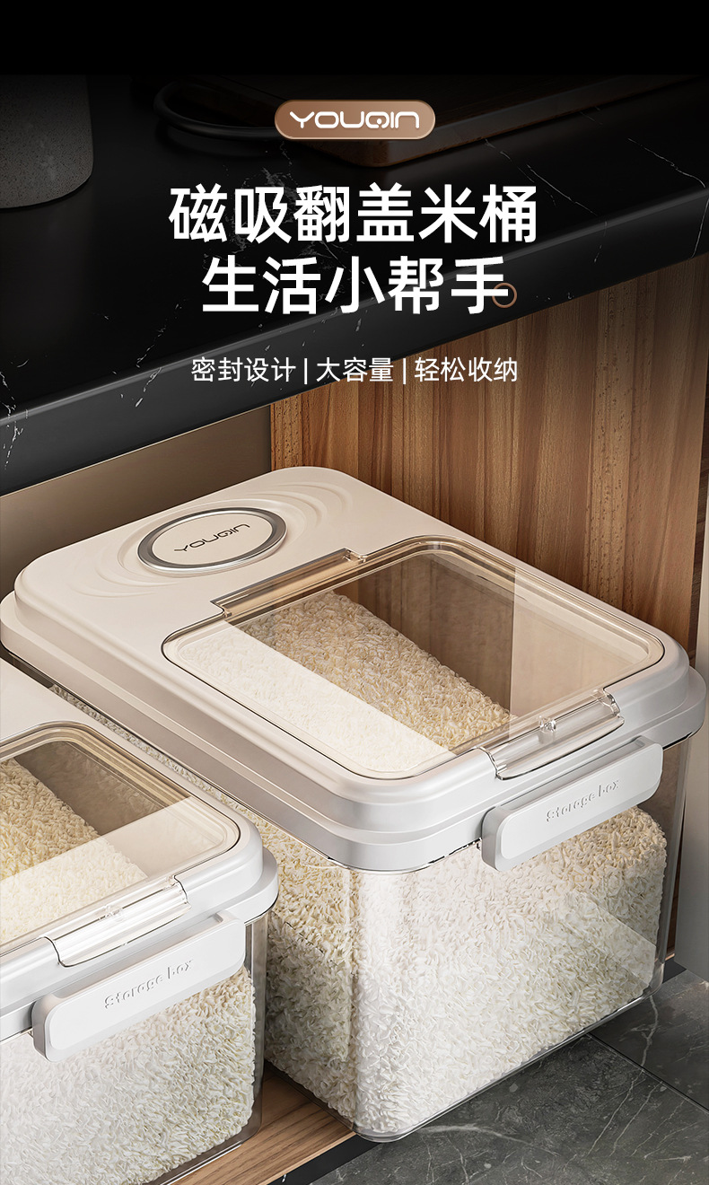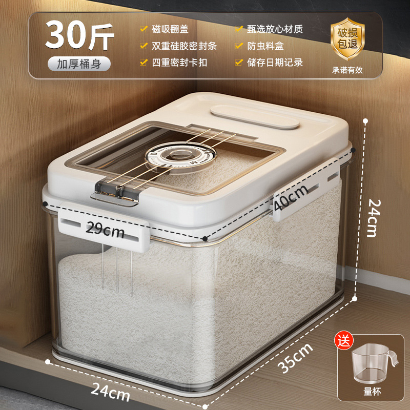 쌀 양동이 가정용 2024 새로운 스타일 쌀 탱크 곤충 방지 수분 밀봉 쌀 상자 쌀가루 저장 탱크 고양이 식품 개 식품스토어 가기