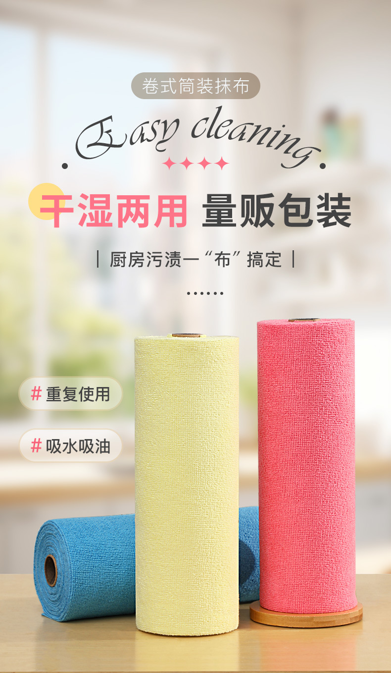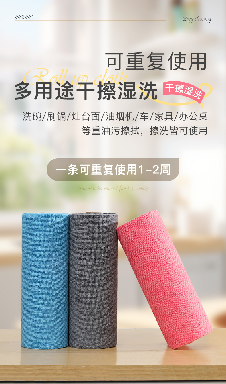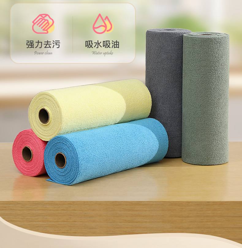 게으른 사람들을위한 두꺼운 마이크로 화이버 건조 및 젖은 이중 사용 롤러 일회용 주방 접시 천
