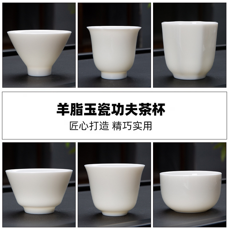 수제 양 지방 옥 화이트 도자기 쿵푸 티 컵 세라믹 가정용 스몰 사이즈 차 시음 컵 쿵푸 티 세트 컵 데화 화이트 도자기