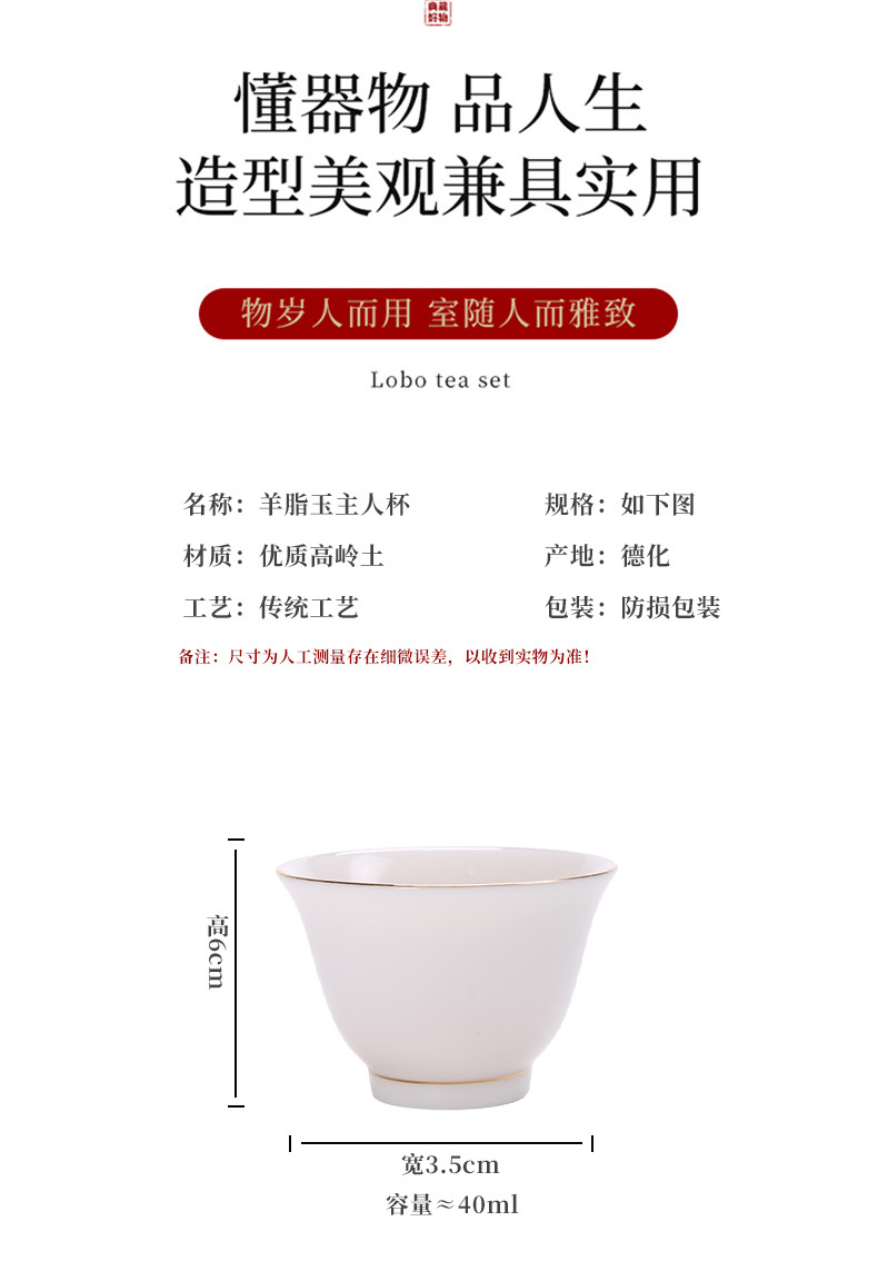 수제 양 지방 옥 화이트 도자기 쿵푸 티 컵 세라믹 가정용 스몰 사이즈 차 시음 컵 쿵푸 티 세트 컵 데화 화이트 도자기스토어 가기