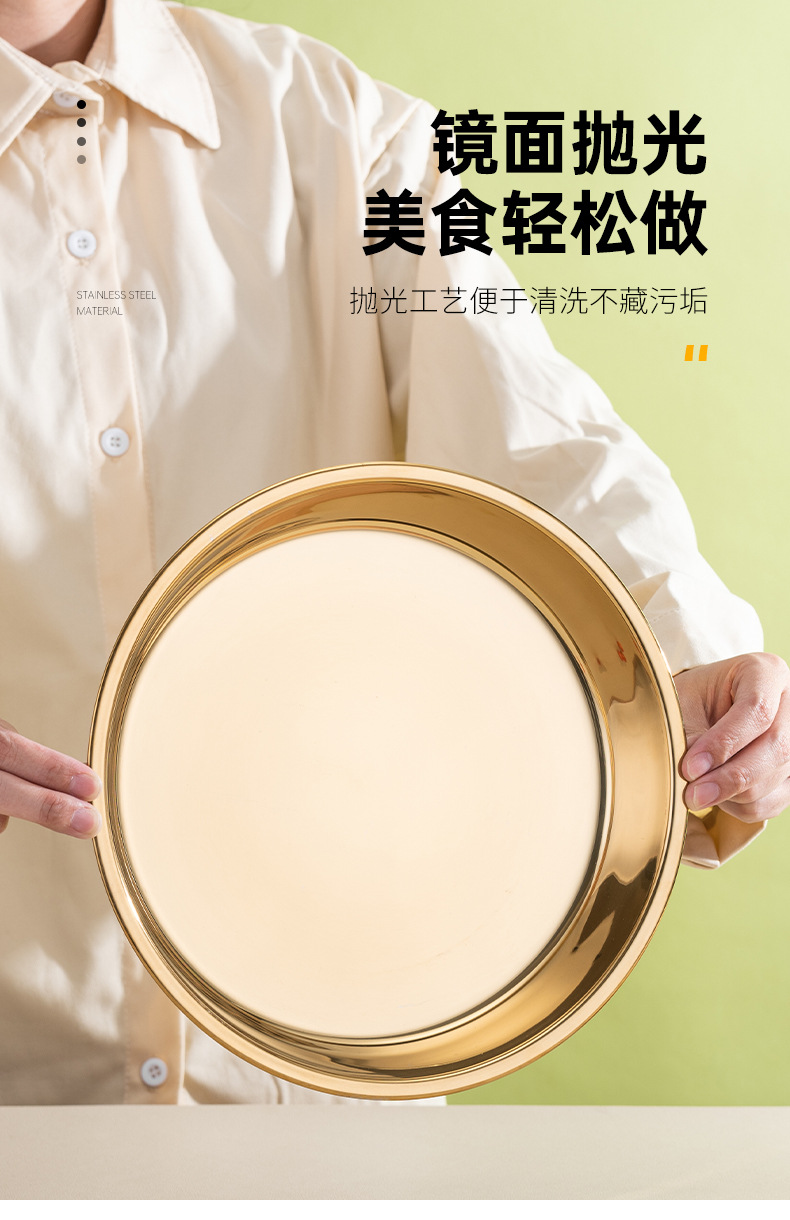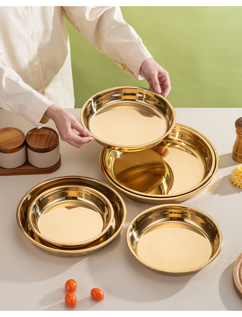 국경 간 황금 캔들 플레이트 스테인레스 스틸 플레이트 가정용 고급 센스 스테인레스 스틸 플레이트 디스크 접시 접시 디너 플레이트스토어 가기