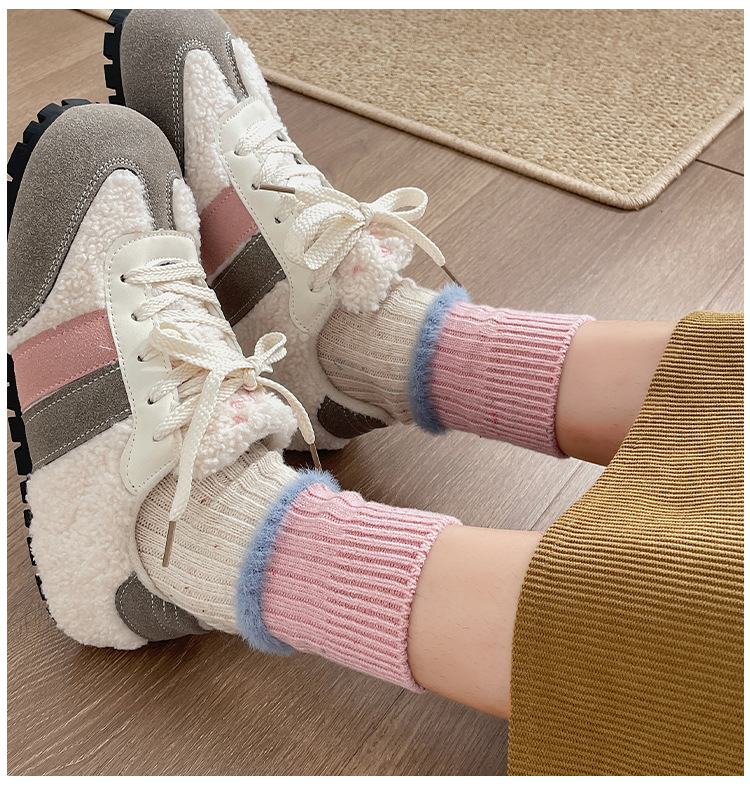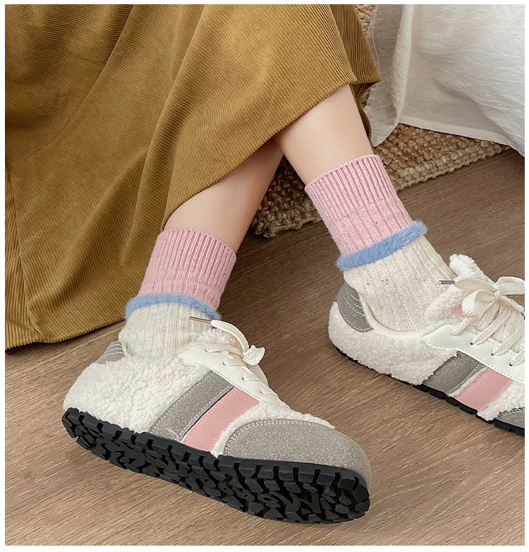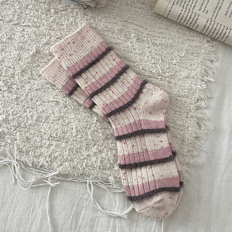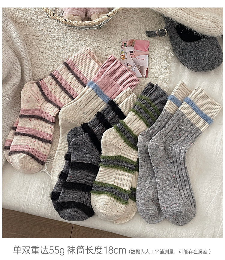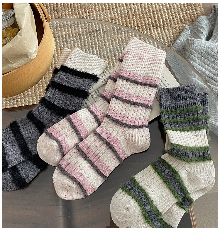 줄무늬 양말 겨울 두꺼운 여성 따뜻한 양모 양말 여성 대비 한국식 더블 바늘 포인트 원사 미드 튜브 스택 양말