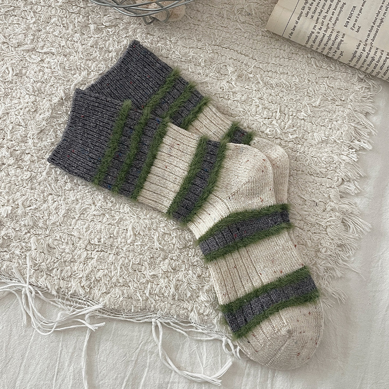 줄무늬 양말 겨울 두꺼운 여성 따뜻한 양모 양말 여성 대비 한국식 더블 바늘 포인트 원사 미드 튜브 스택 양말스토어 가기