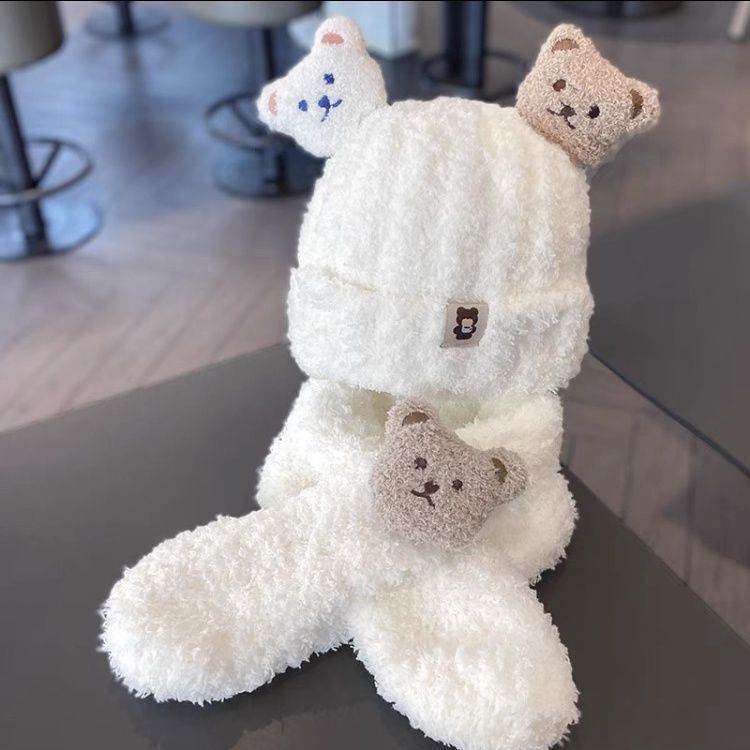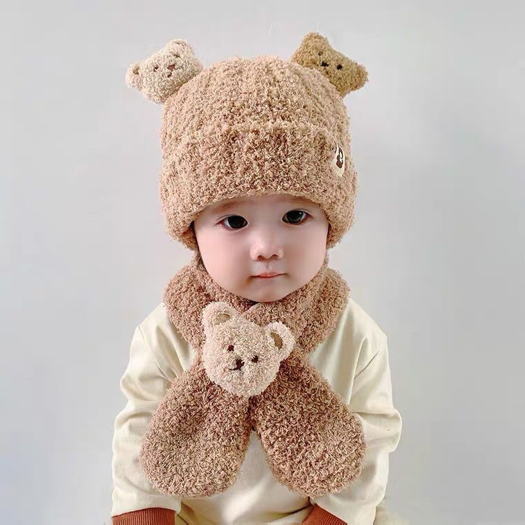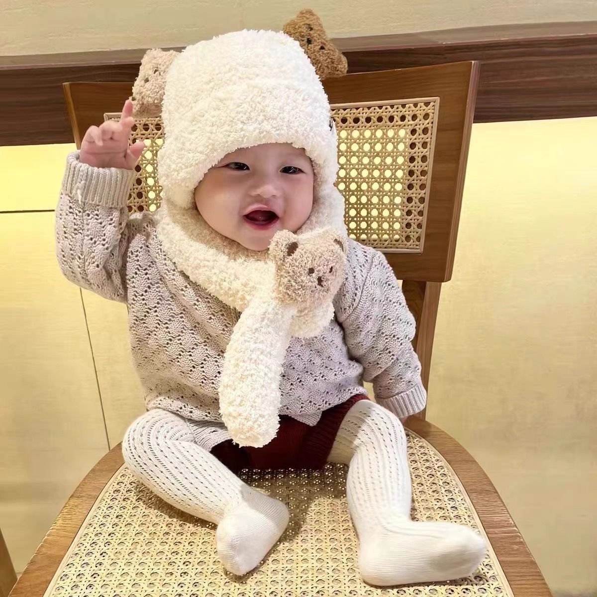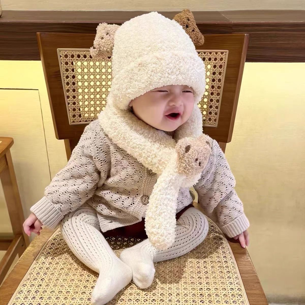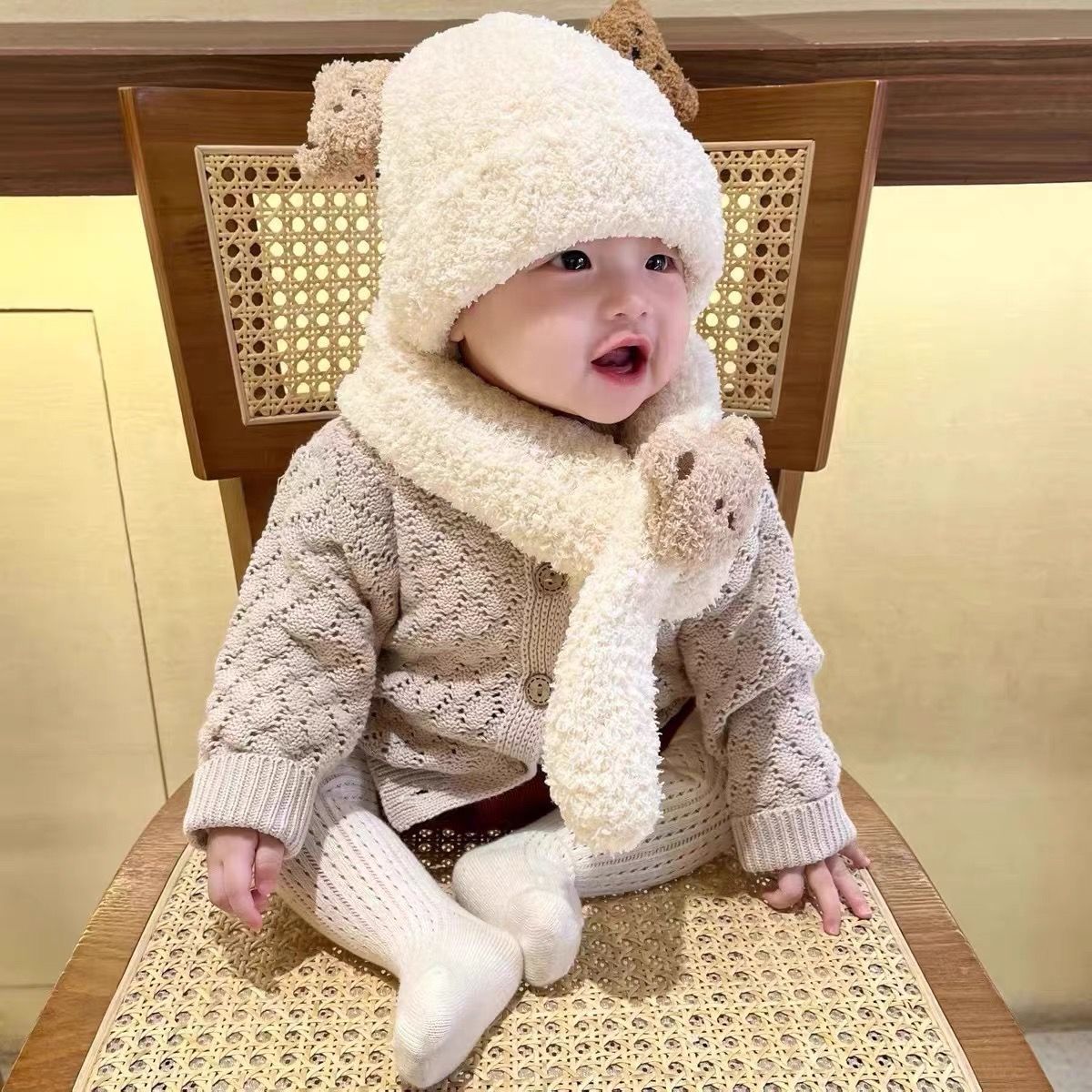곰 봉제 아기 모자 가을과 겨울 아기 모자 스카프 원피스 투피스 어린이 따뜻한 귀 보호 캡 슈퍼 귀여운