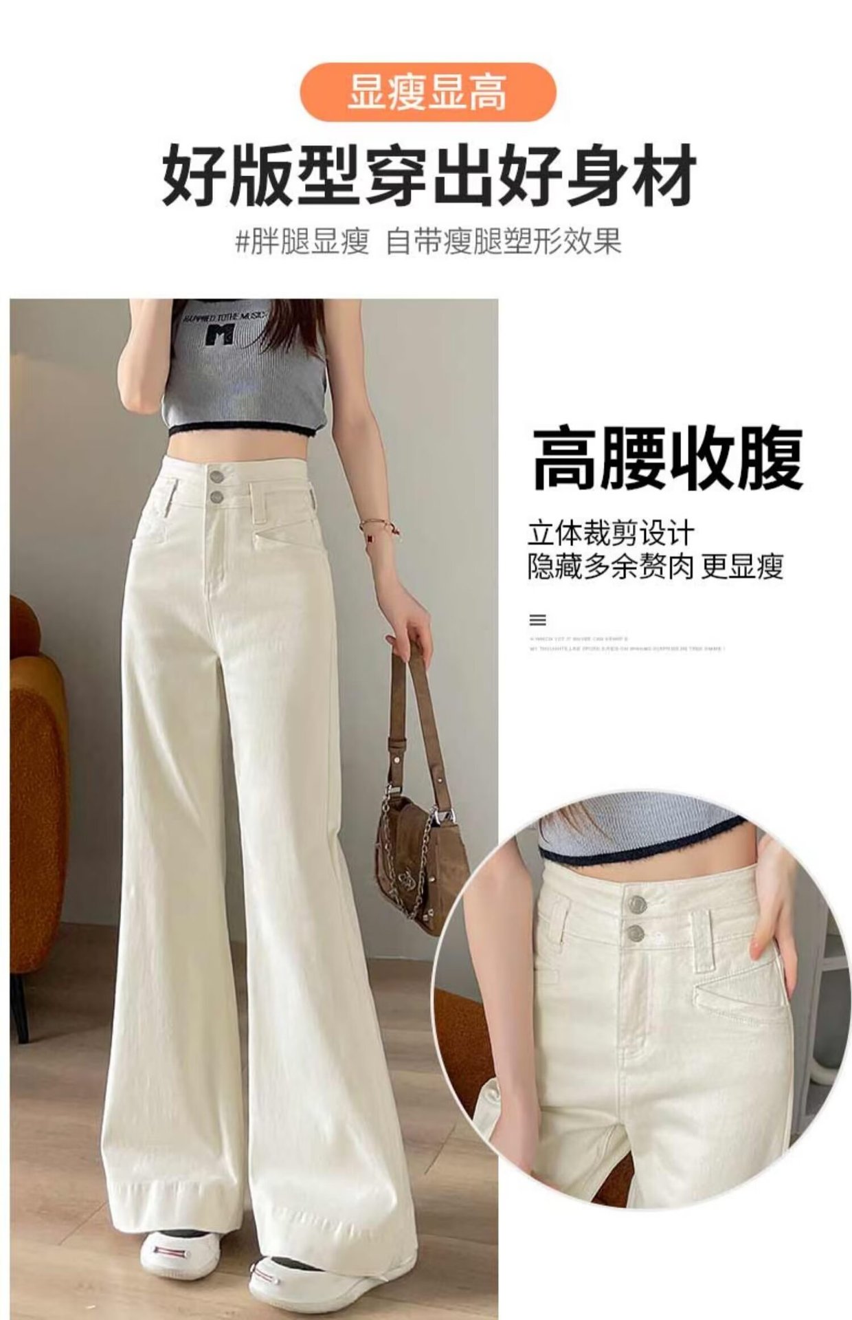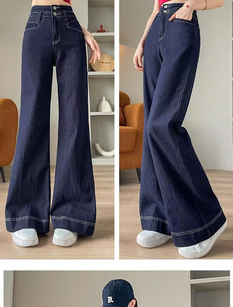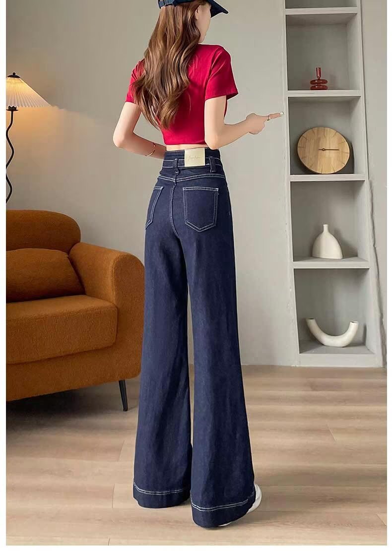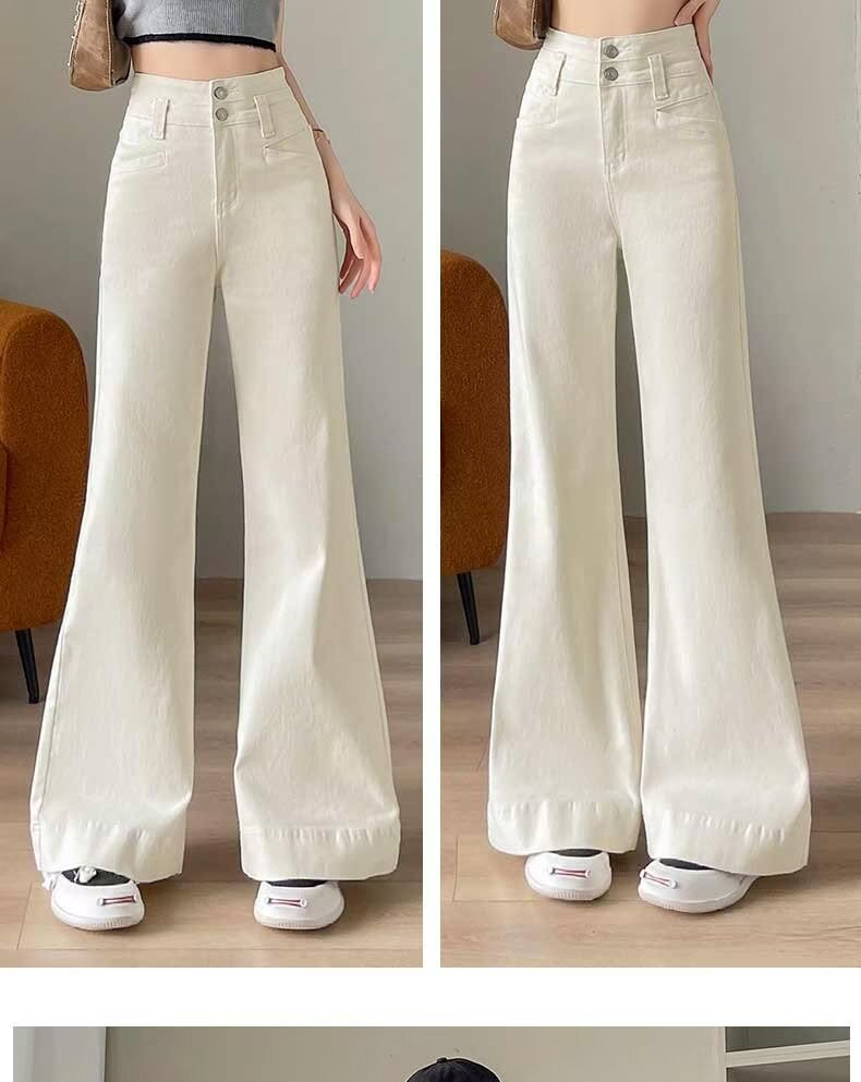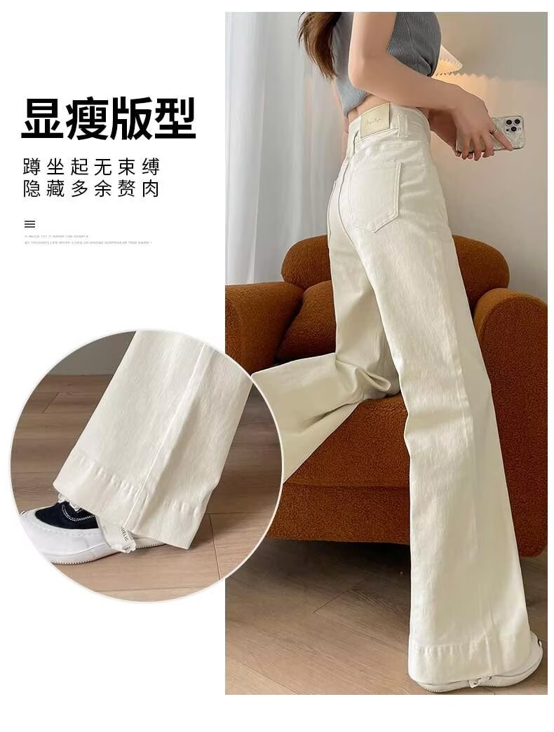 봄과 가을 뉴 아이보리 마이크로 레어 청바지 여성용 트렌디 올매치 딥 스트레이트 팬츠 루즈 슬림 핏 걸레 바지스토어 가기
