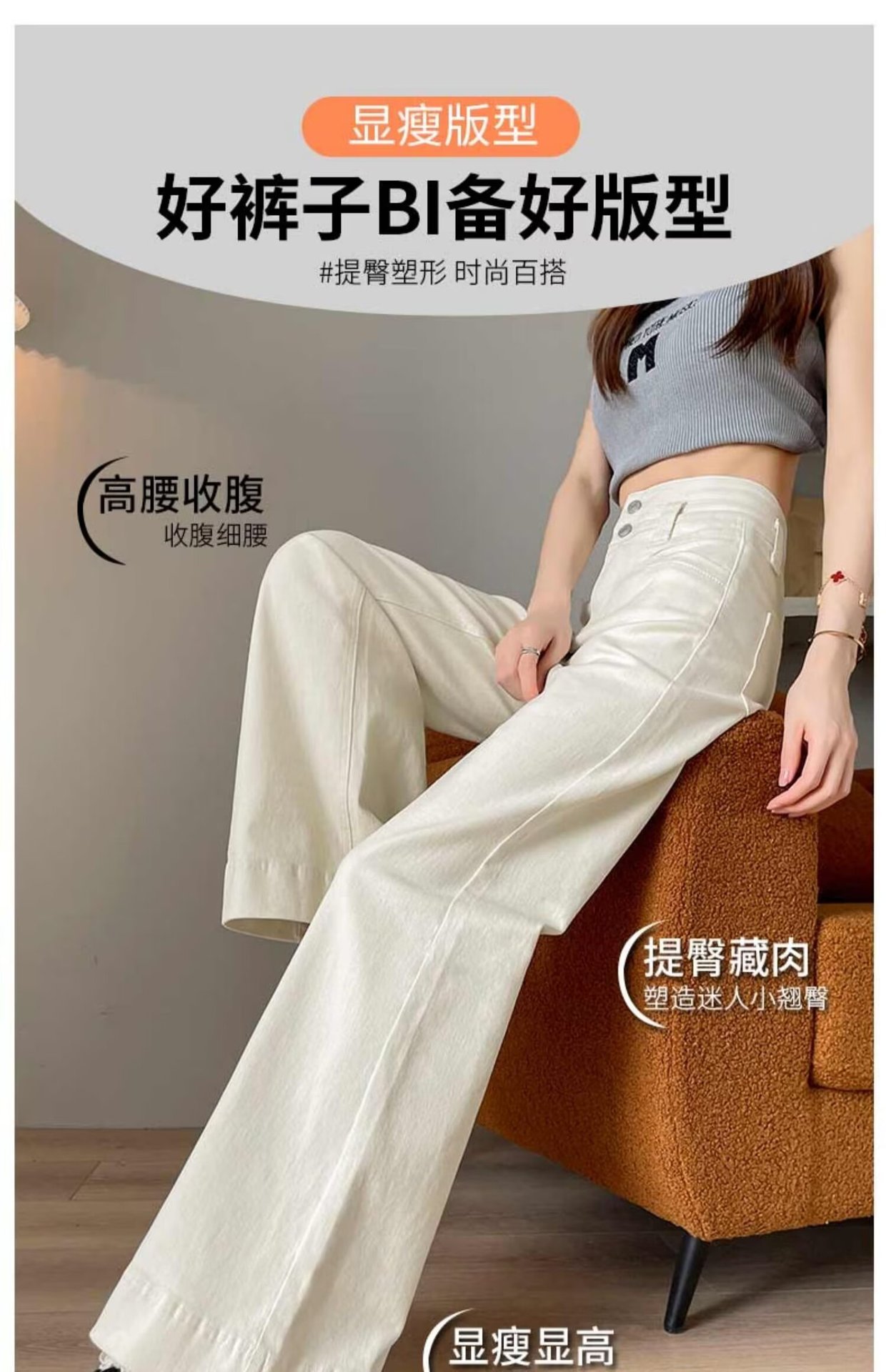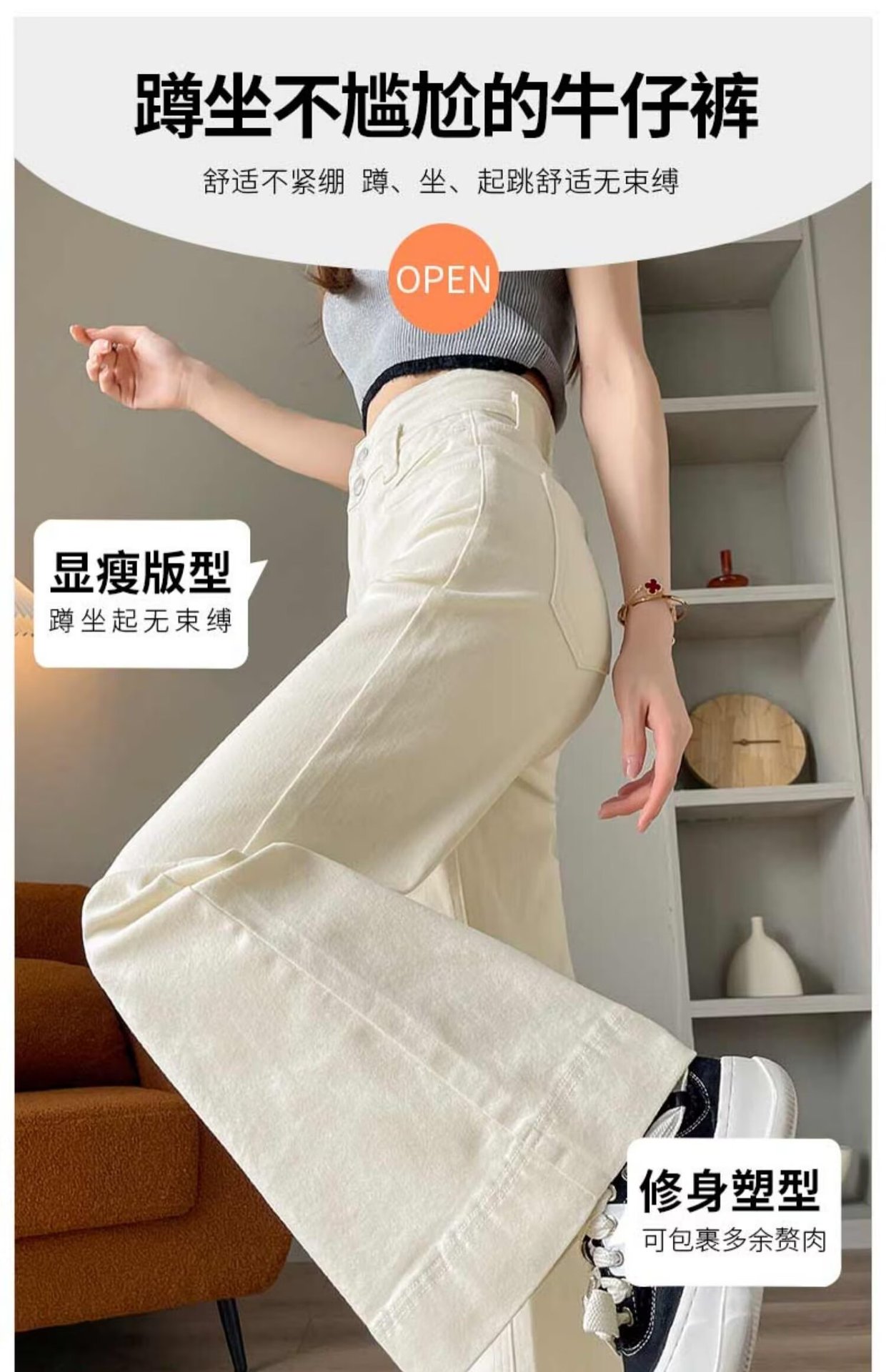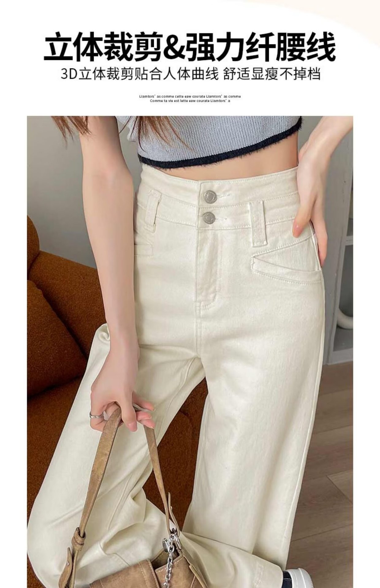 봄과 가을 뉴 아이보리 마이크로 레어 청바지 여성용 트렌디 올매치 딥 스트레이트 팬츠 루즈 슬림 핏 걸레 바지스토어 가기