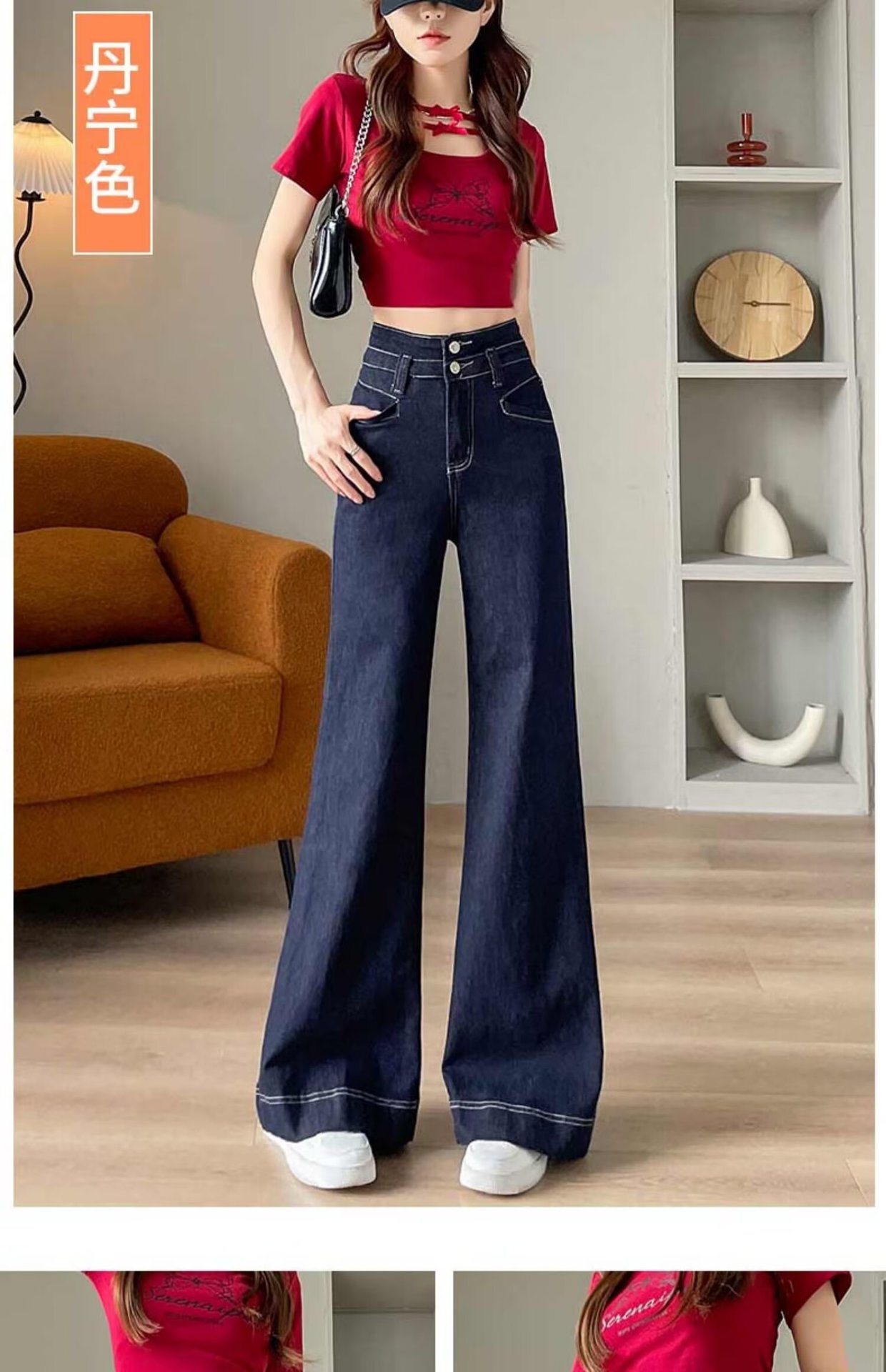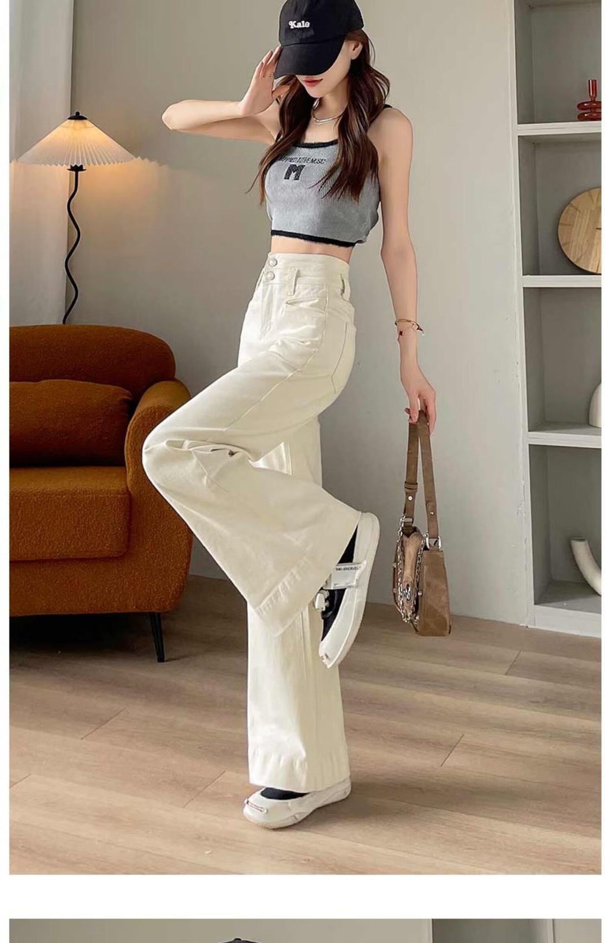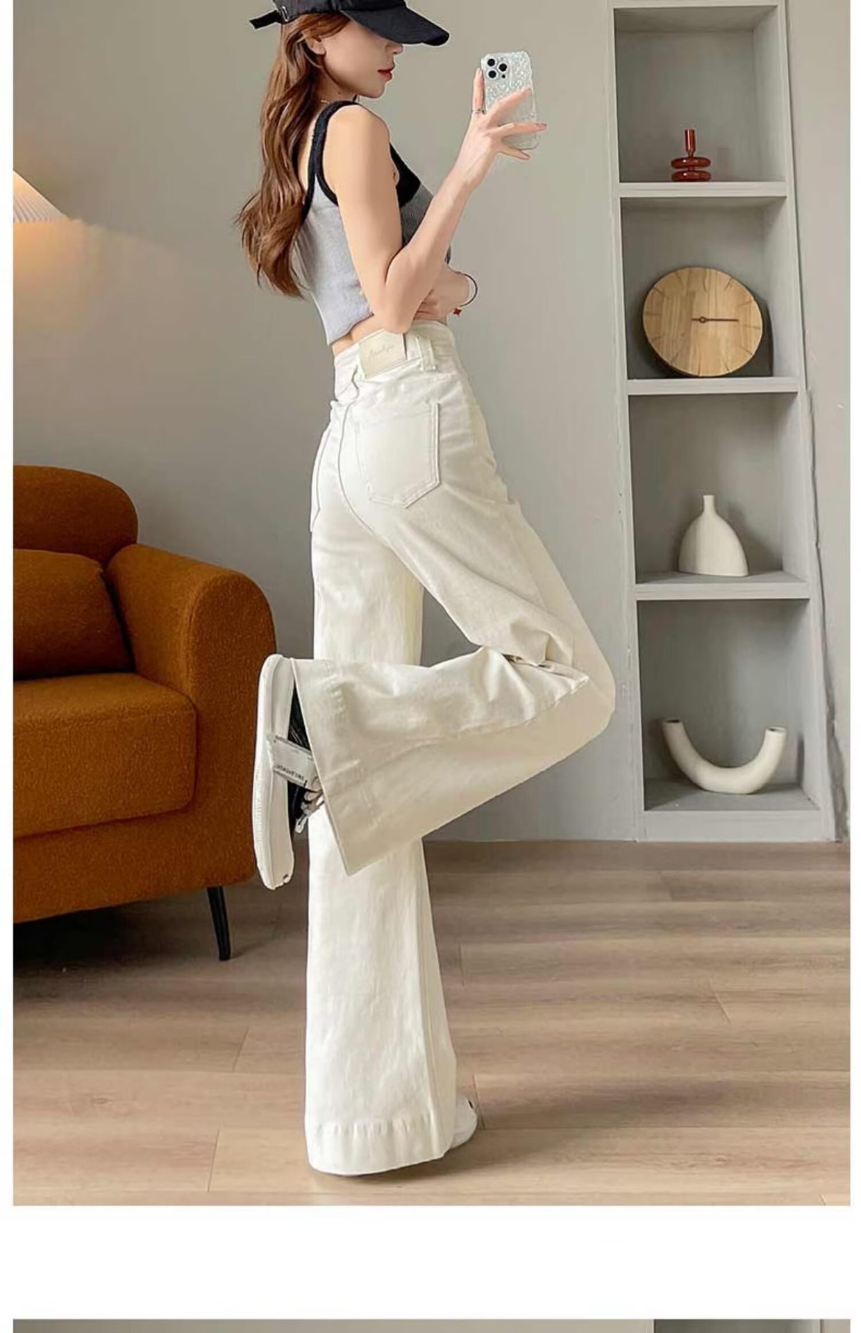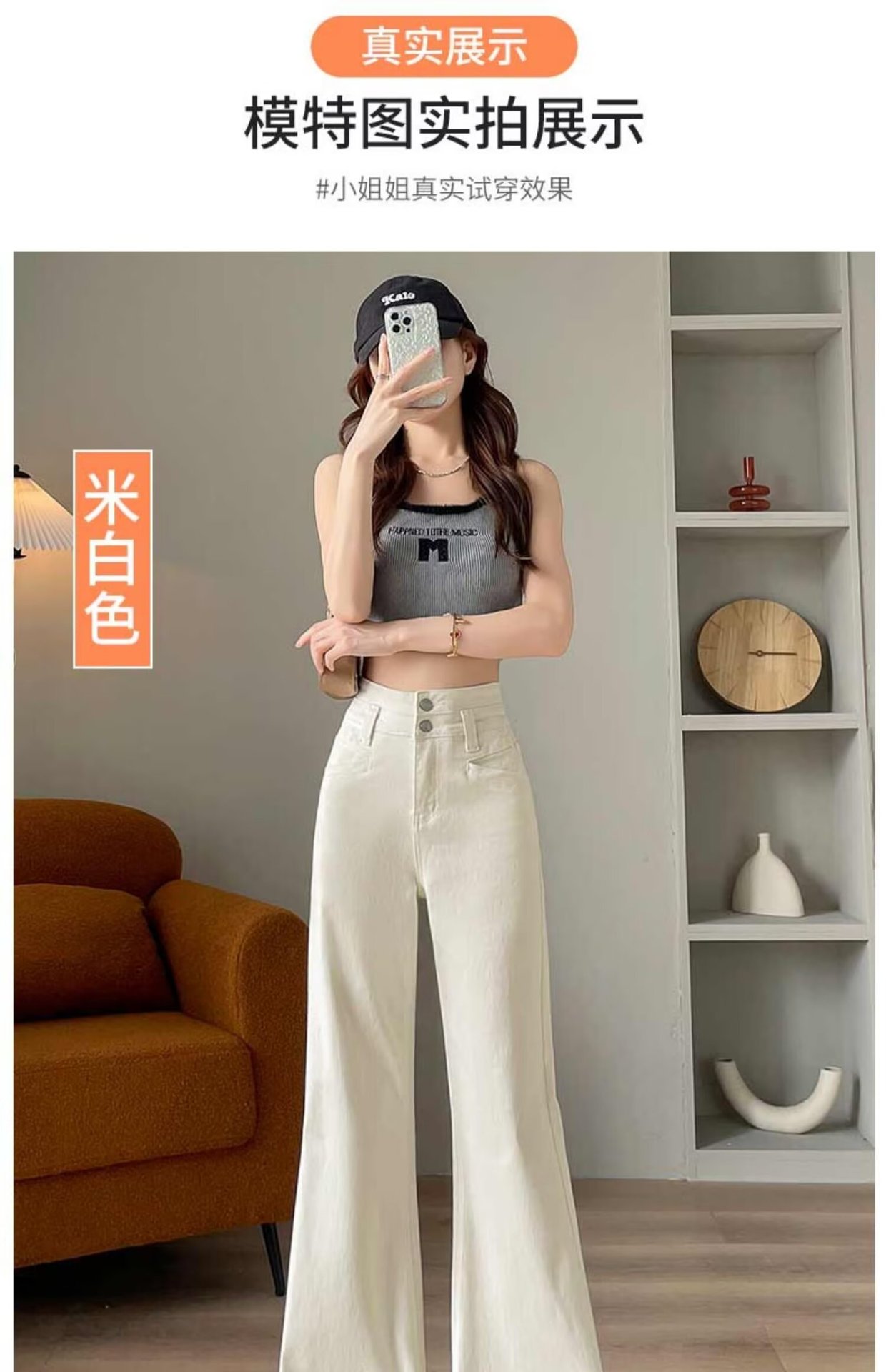 봄과 가을 뉴 아이보리 마이크로 레어 청바지 여성용 트렌디 올매치 딥 스트레이트 팬츠 루즈 슬림 핏 걸레 바지스토어 가기