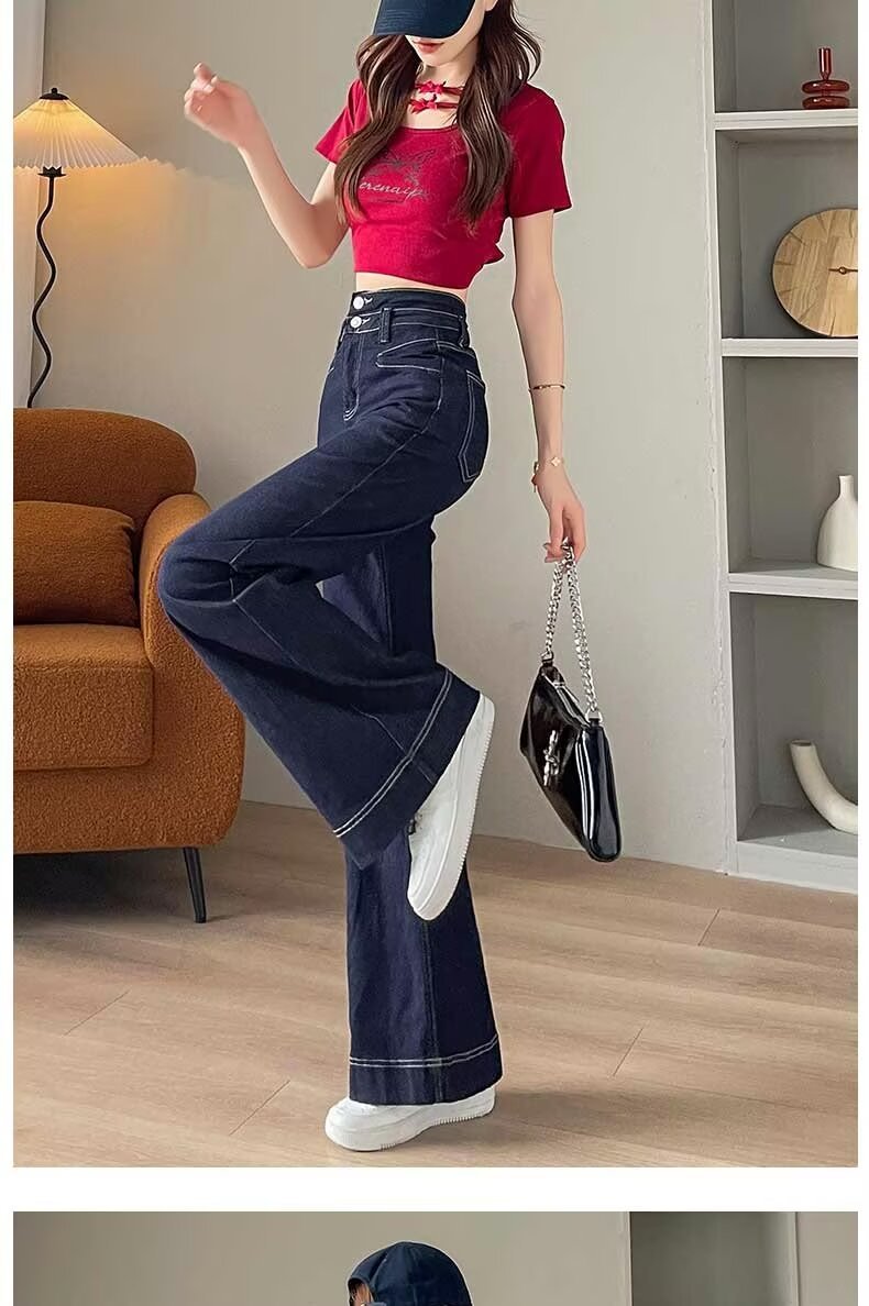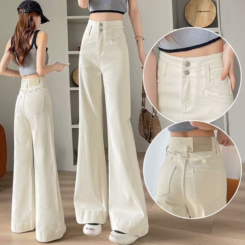 봄과 가을 뉴 아이보리 마이크로 레어 청바지 여성용 트렌디 올매치 딥 스트레이트 팬츠 루즈 슬림 핏 걸레 바지
