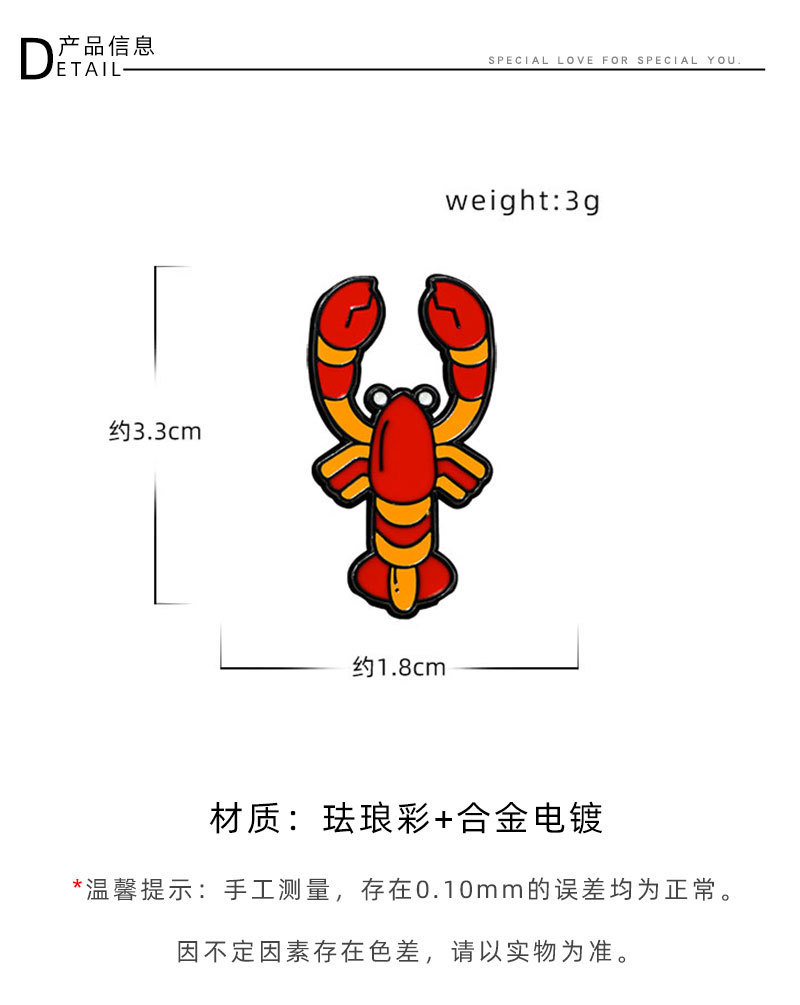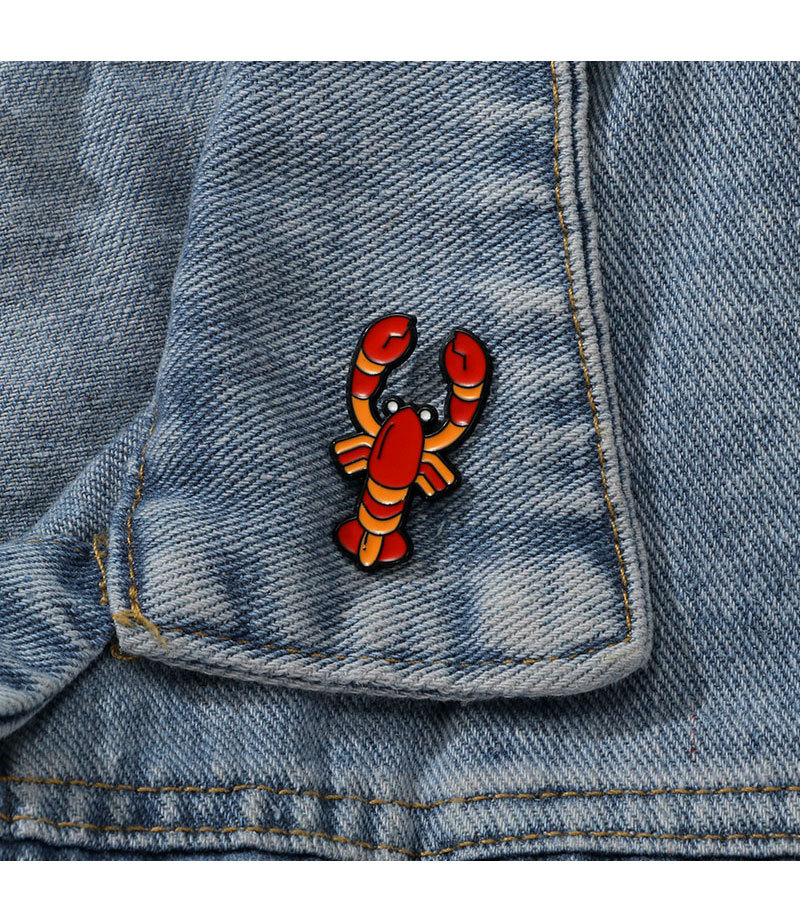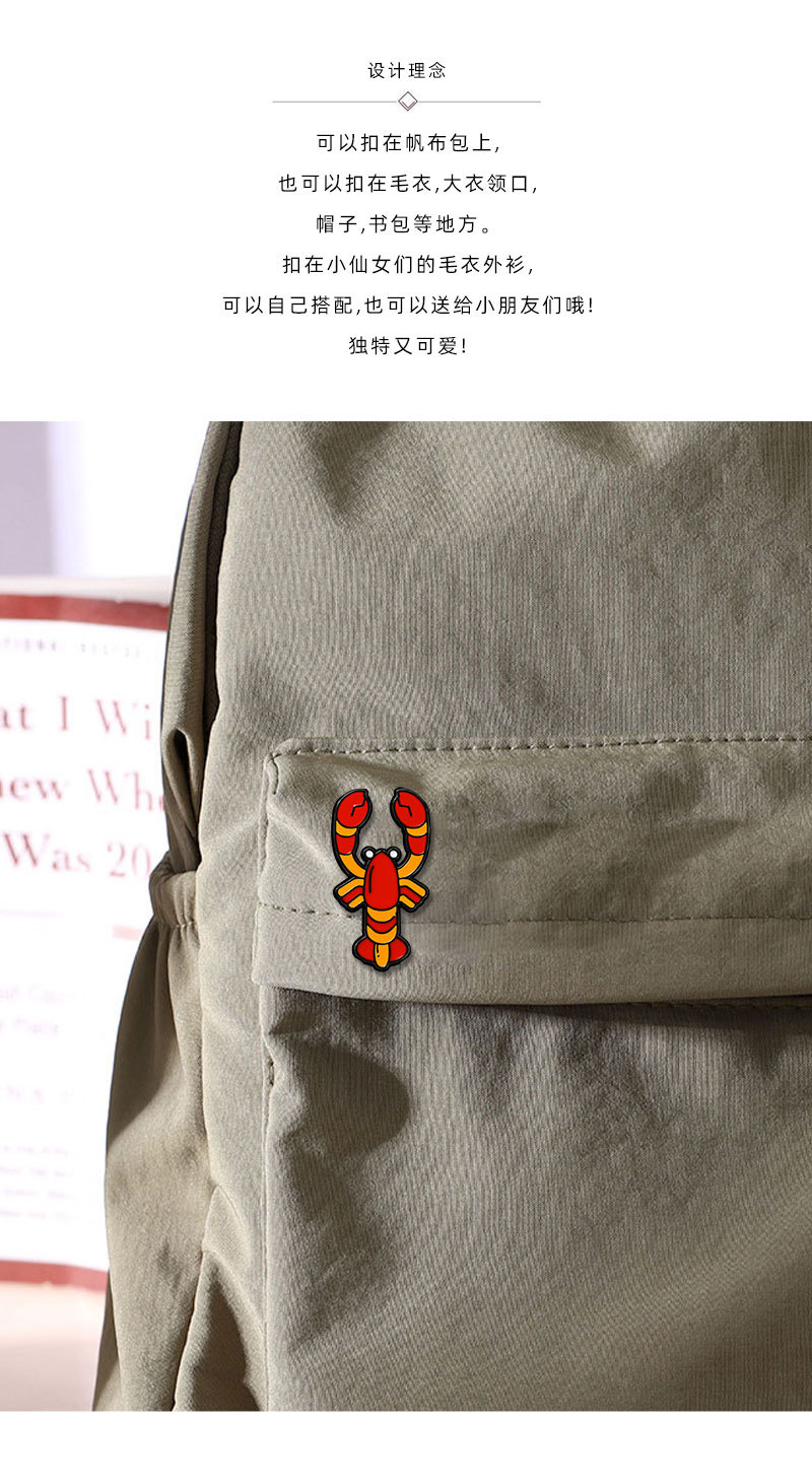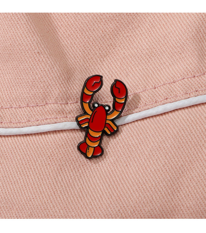 만화 브로치 귀여운 왕새우 창조적 인 보스턴 랍스터 재미 학교 가방 장식 아연 합금 오일 드롭 배지스토어 가기