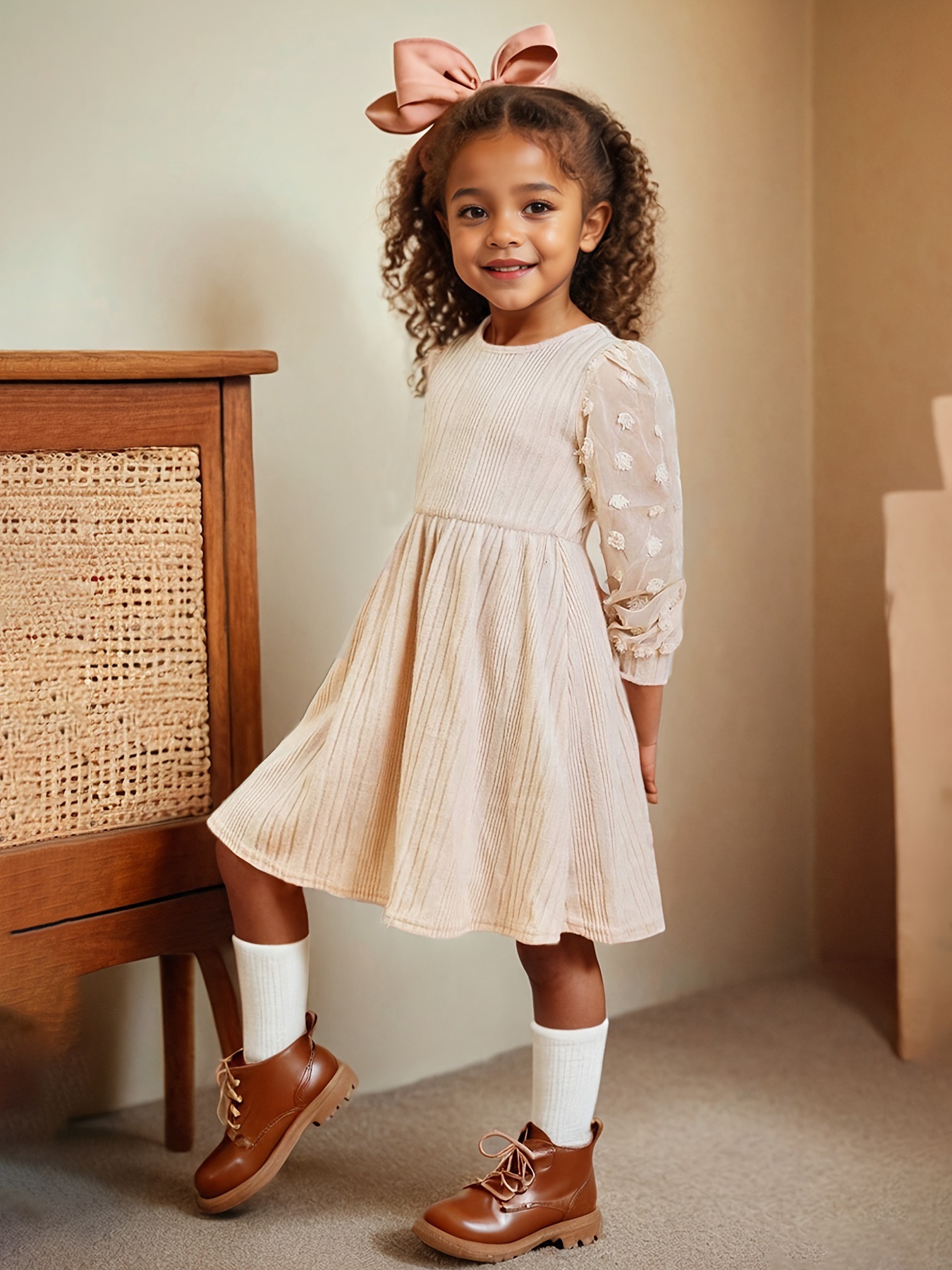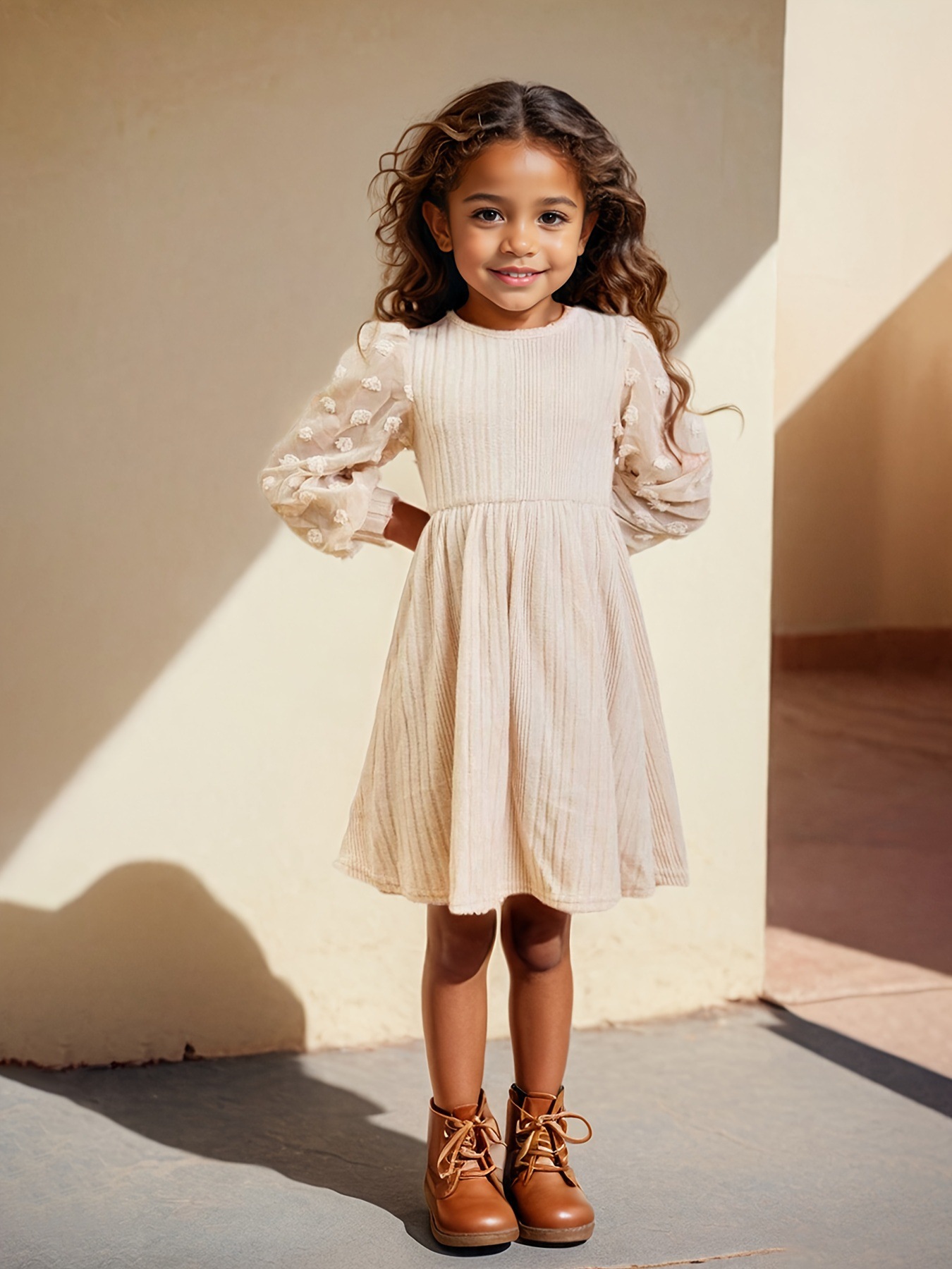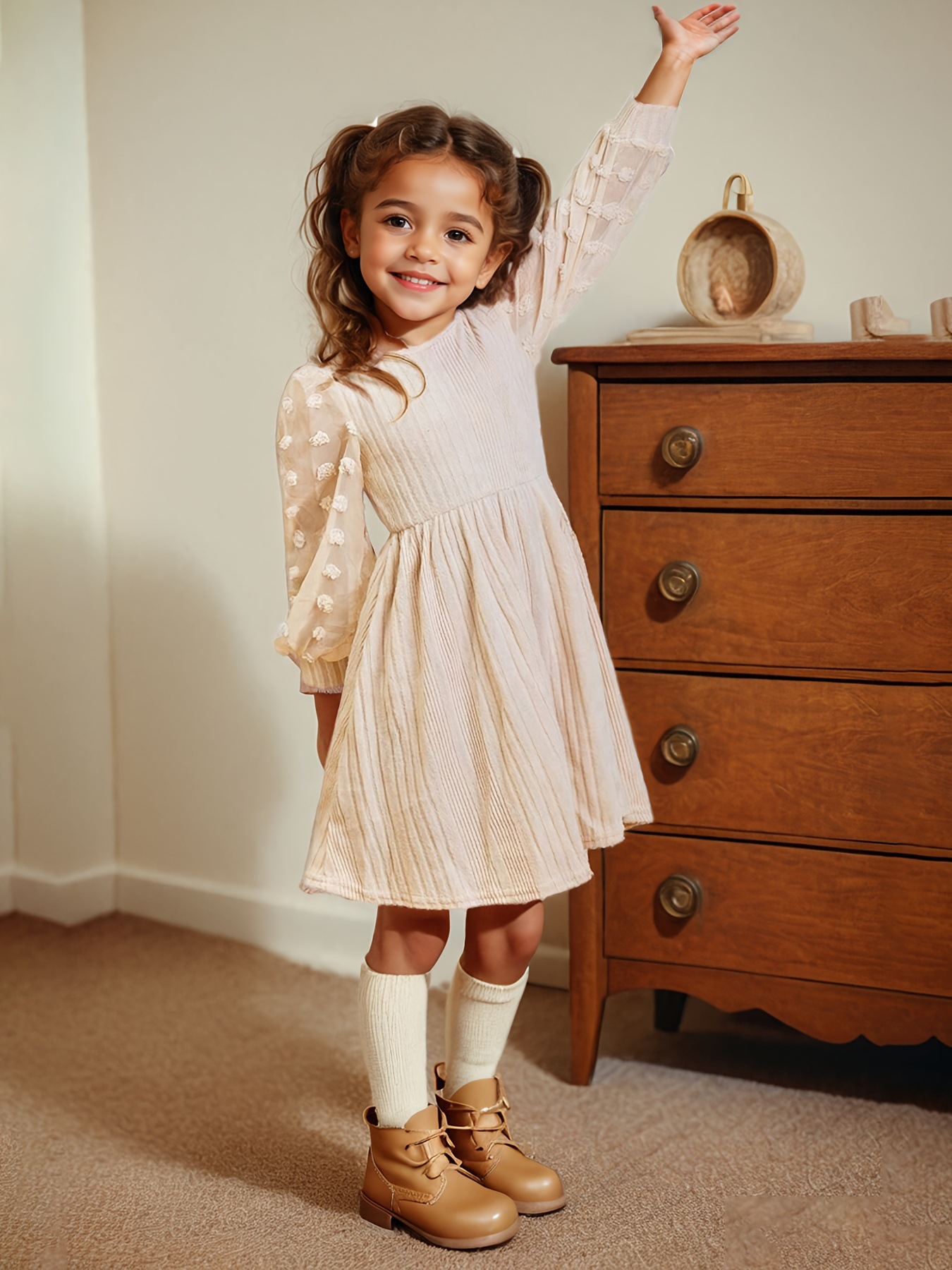 국경 간 대외 무역 INS 여자 쉬폰 헤어 볼 긴 소매 크루 넥 긴 소매 퍼프 소매 패션 캐주얼 니트 원피스