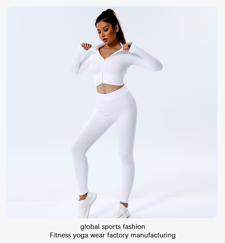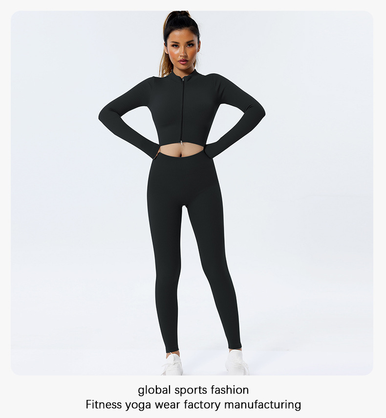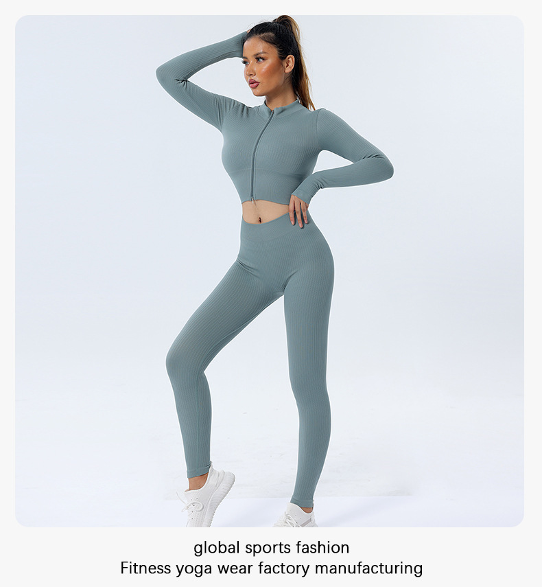 유럽과 미국의 피트니스 세트 여성 피트니스 세트 원활한 스포츠 세트 6 피스 러닝 탑 긴팔 바지 요가 세트