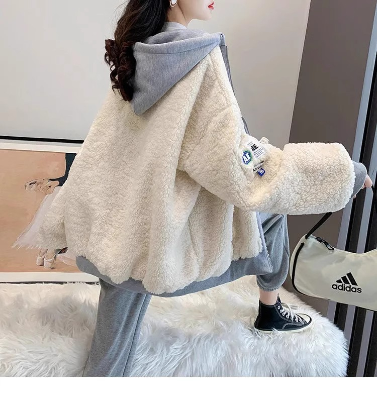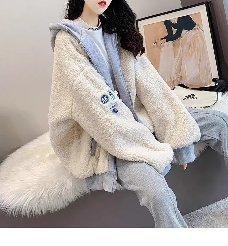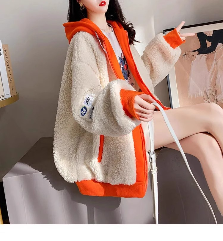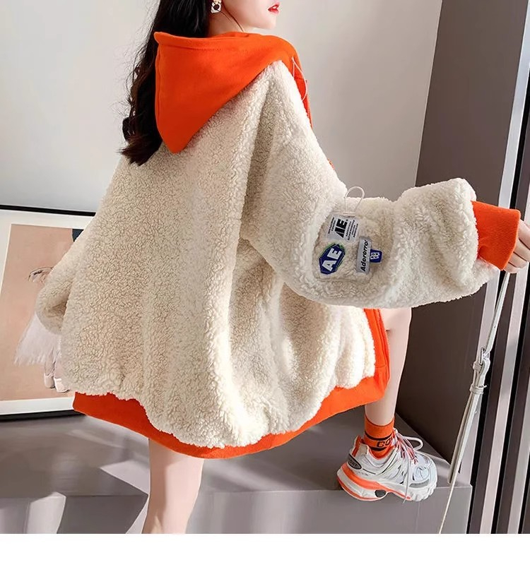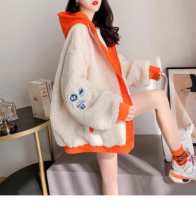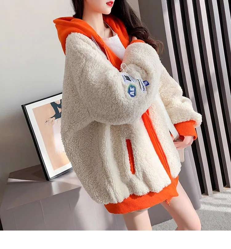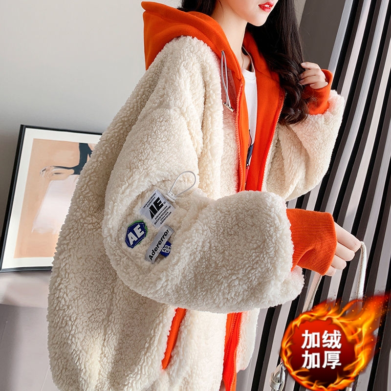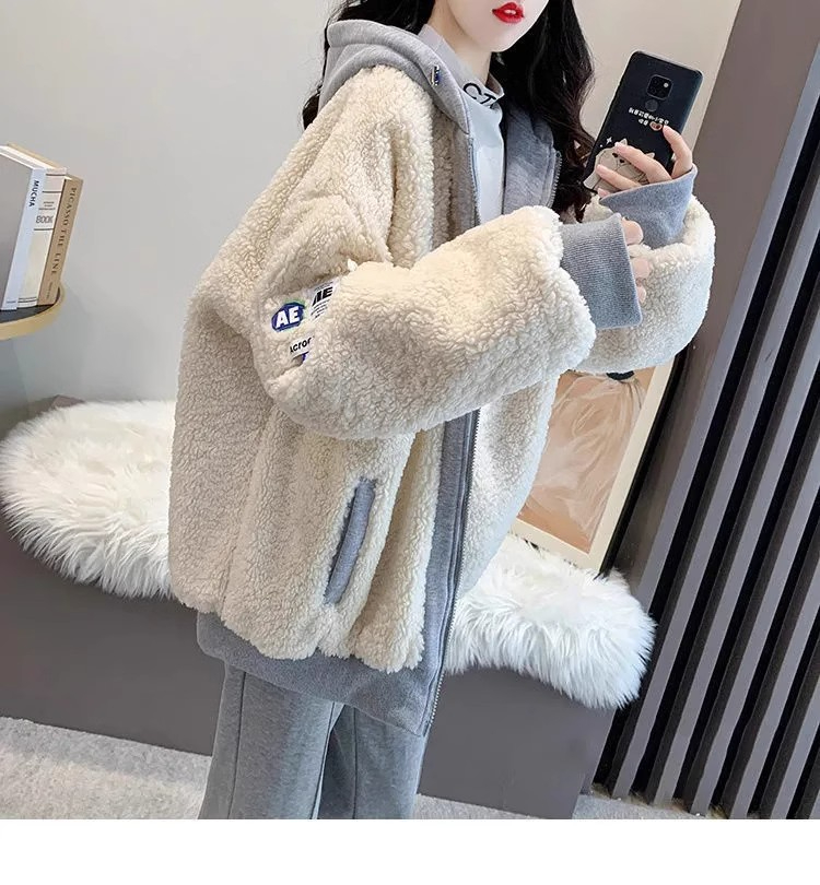 겨울 의류 플러스 사이즈 여성 2024 새로운 카디건 코트 여성의 가을과 겨울 기모 두껍게 된 쌀 벨벳 그물 레드 탑스토어 가기