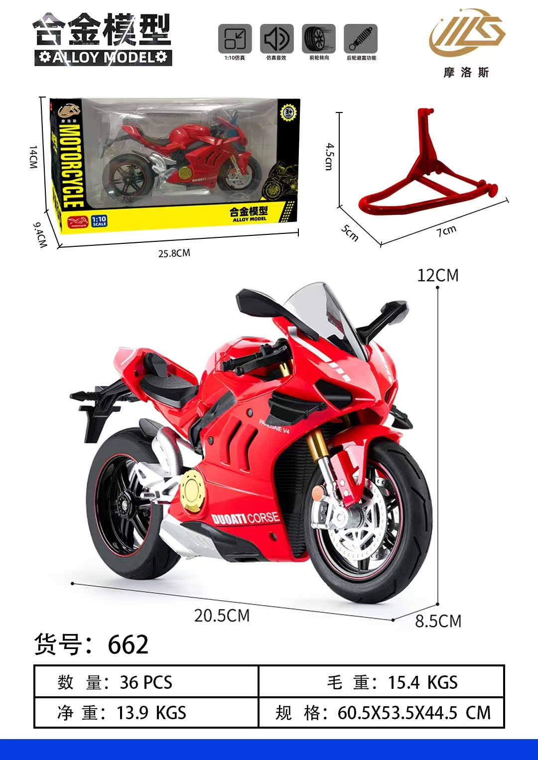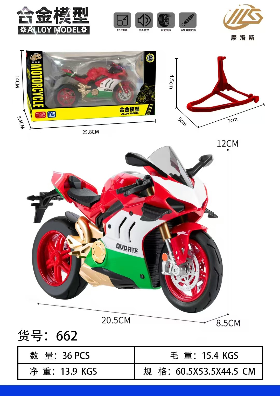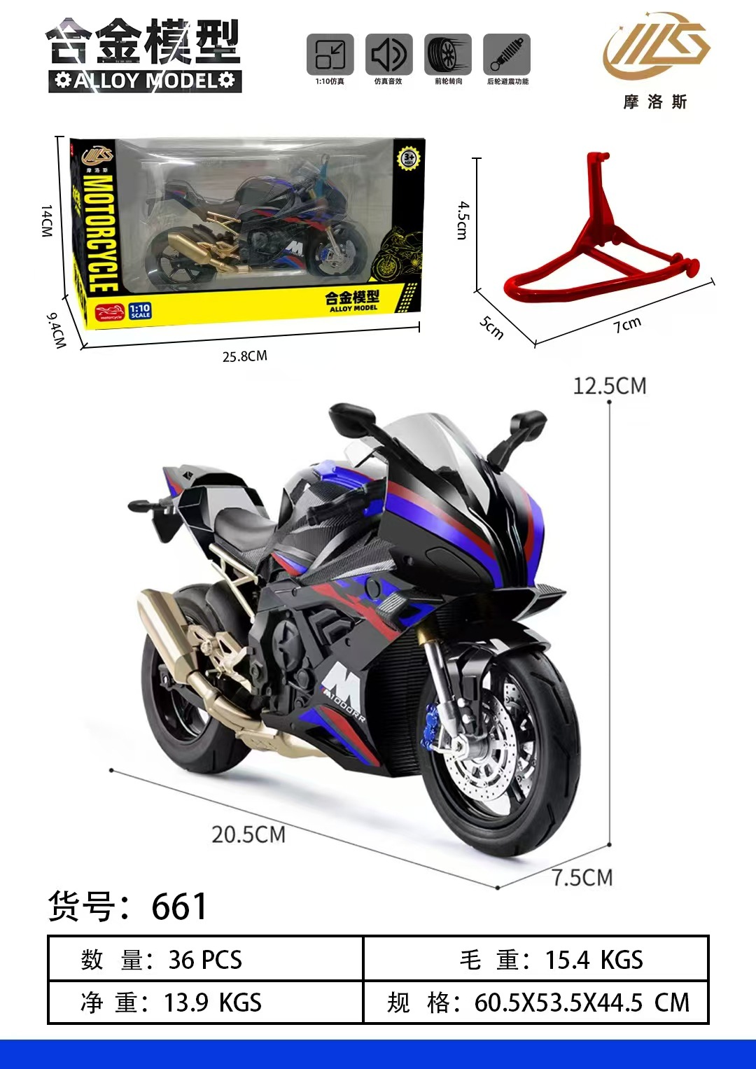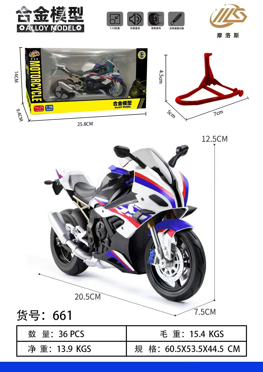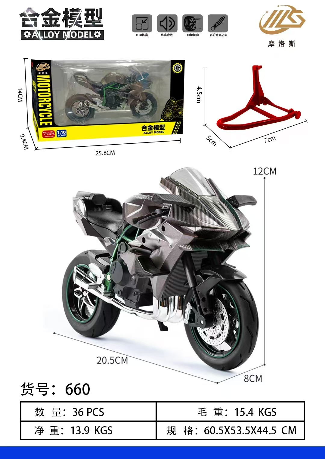 국경 1:10 가와사키 H2R 두카티 V4S BMW 더블 R 합금 보이 장난감 오토바이 기관차 모델