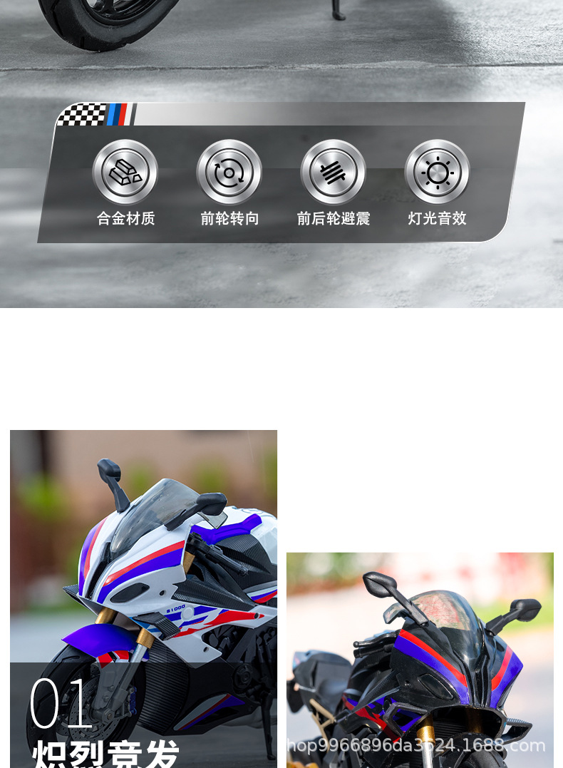 국경 1:10 가와사키 H2R 두카티 V4S BMW 더블 R 합금 보이 장난감 오토바이 기관차 모델스토어 가기