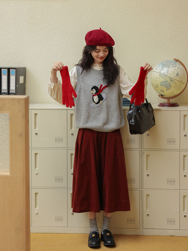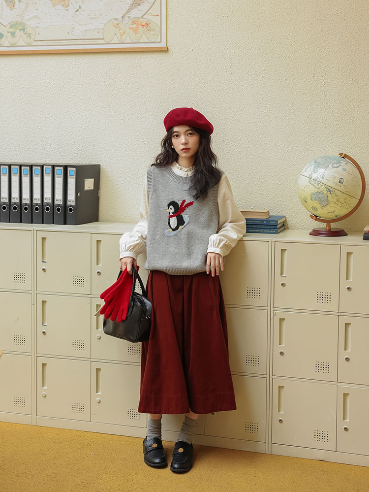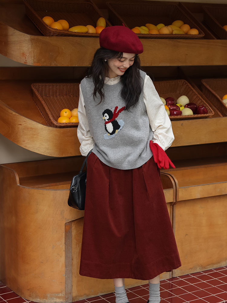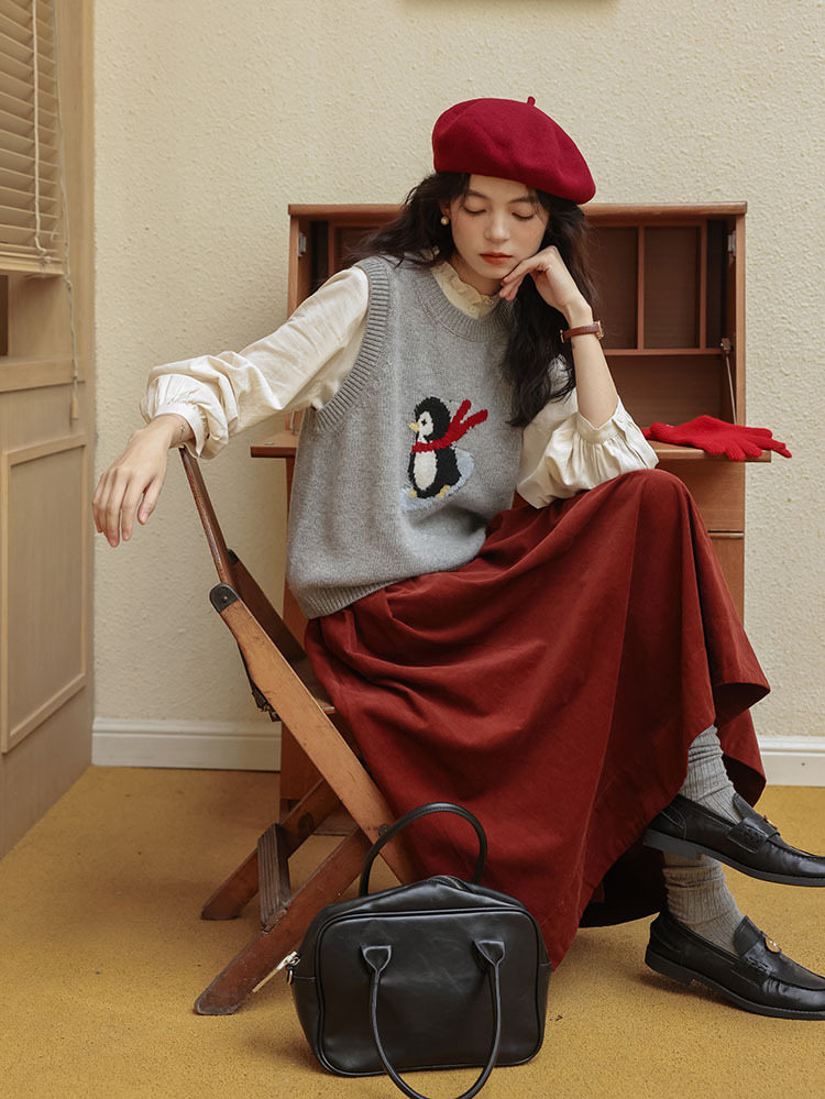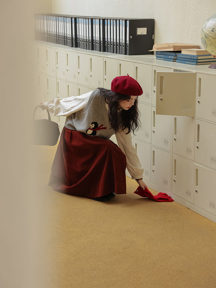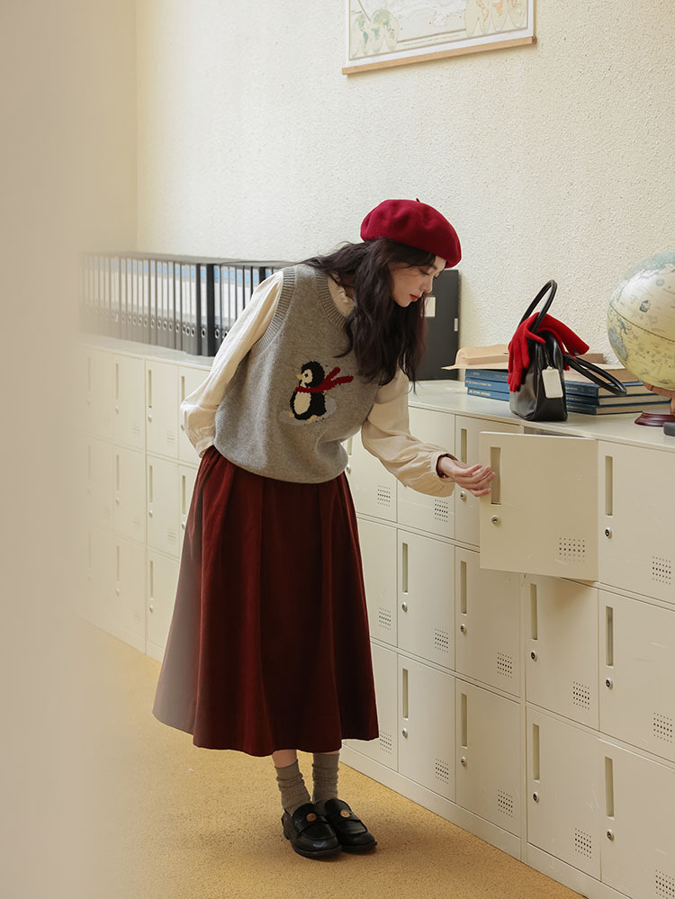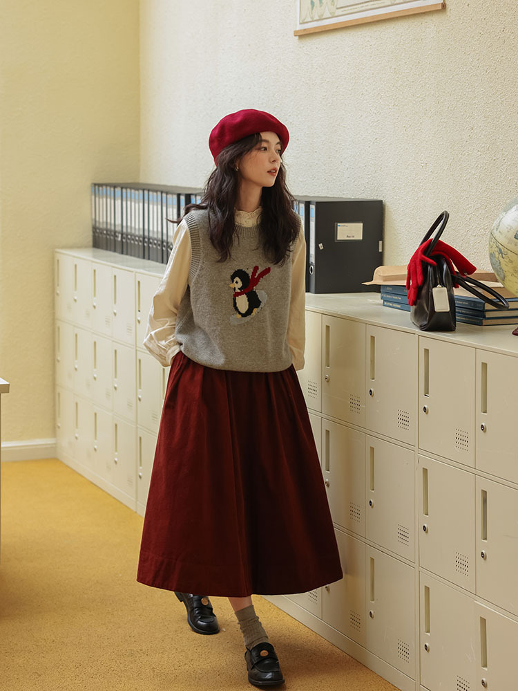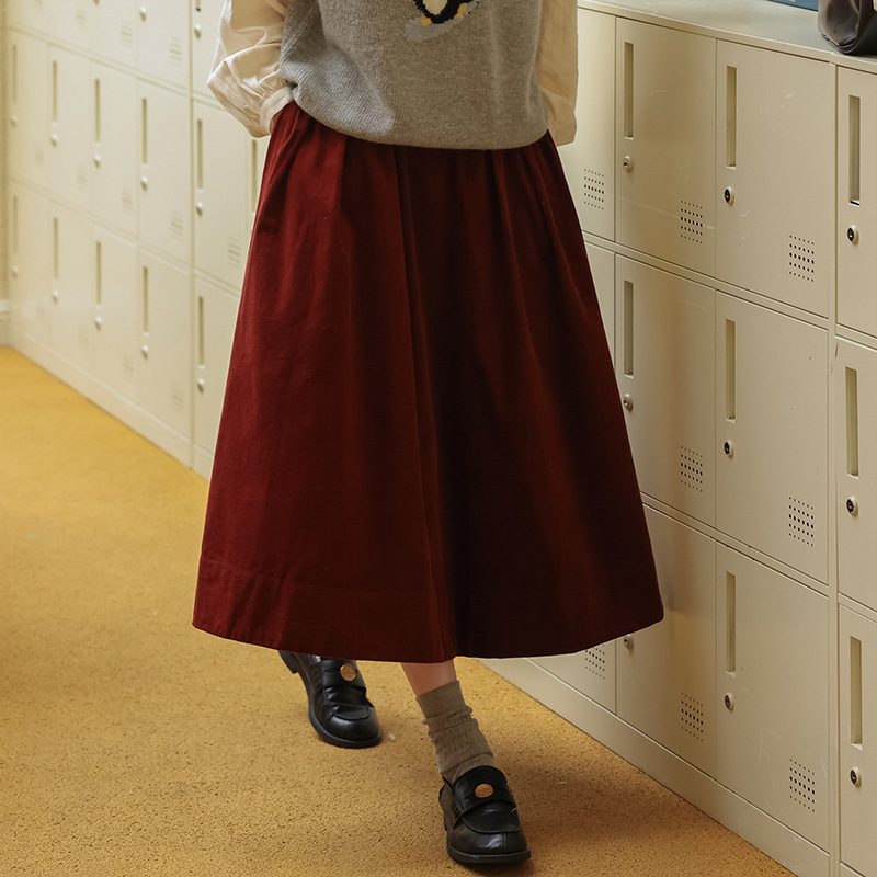여자 치마 2024 가을과 겨울 새로운 일본 예술 앙골라 붉은 분위기 긴 A- sub 우산 치마스토어 가기
