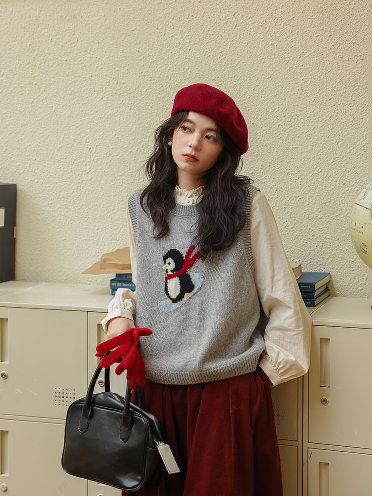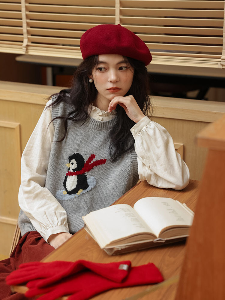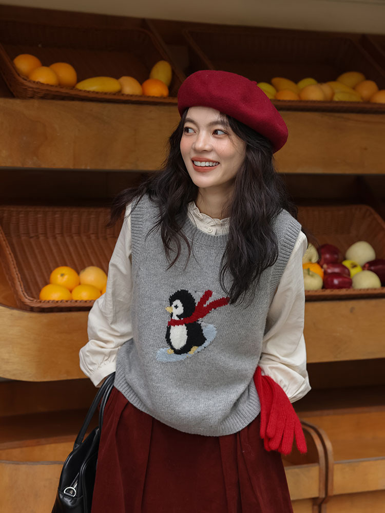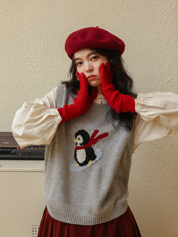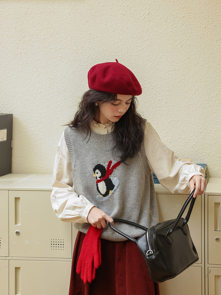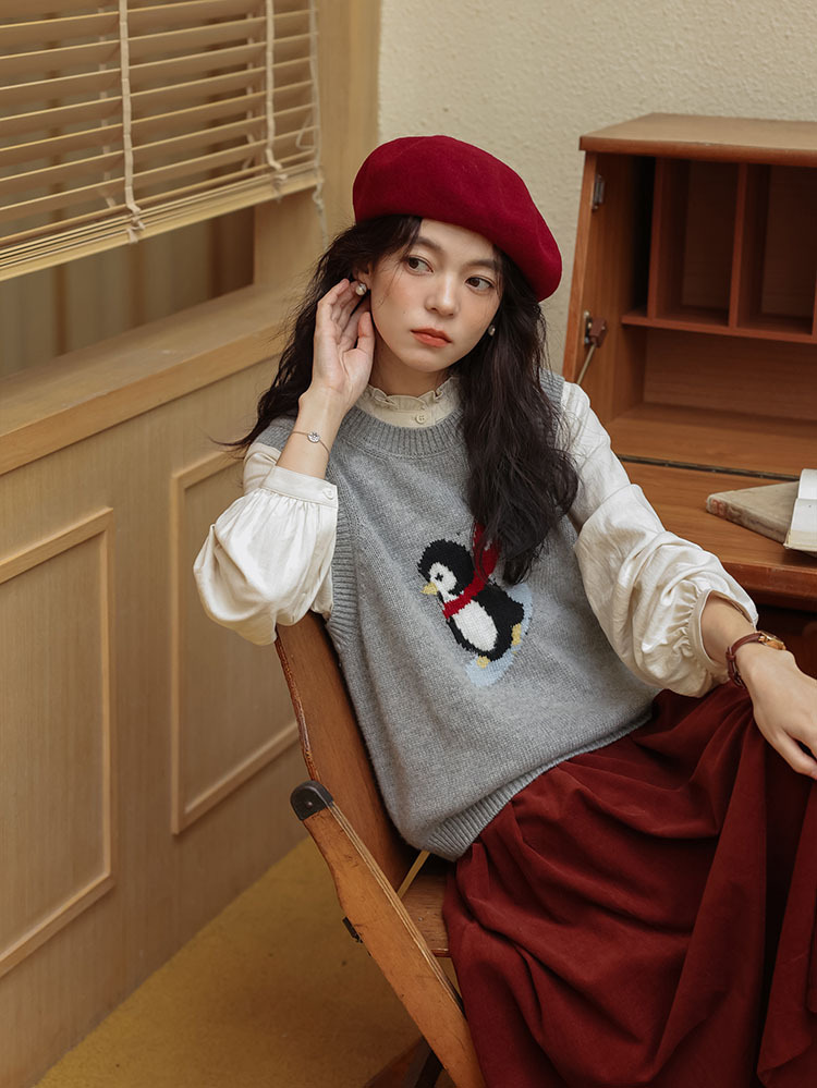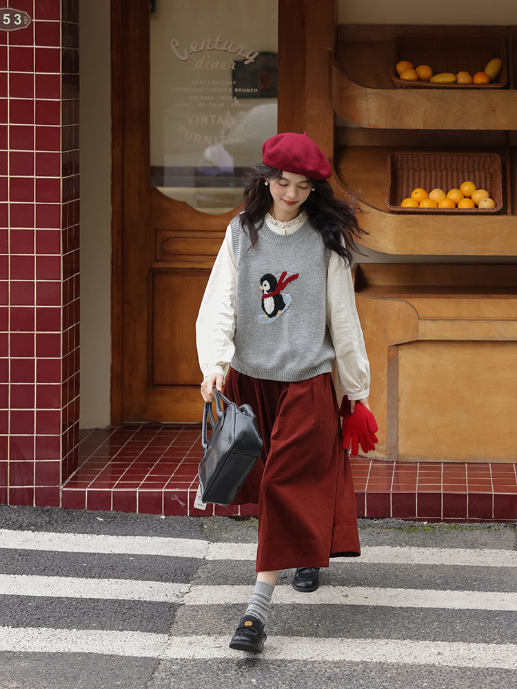 여자 치마 2024 가을과 겨울 새로운 일본 예술 앙골라 붉은 분위기 긴 A- sub 우산 치마스토어 가기