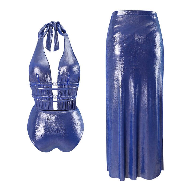 2024 유럽과 미국의 새로운 아마존 AliExpress 목 중공 진주 장식 원피스 수영복 여성 국경 폭발