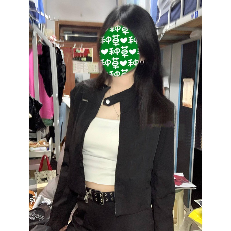 미국 스타일 핫걸 블랙 숏 자켓 여성용 가을 2025 신상 슬림핏 고급스러운 스탠드 칼라 자켓 긴팔 상의스토어 가기