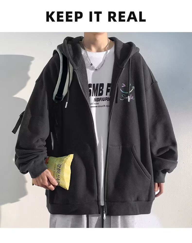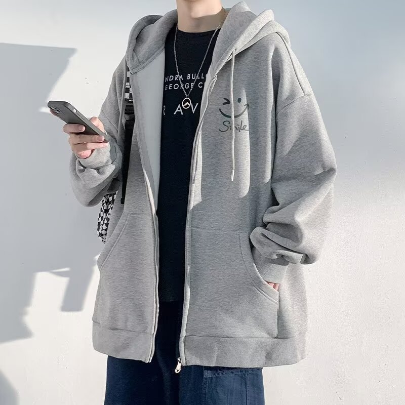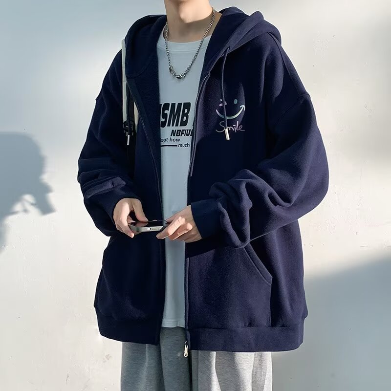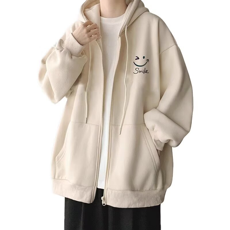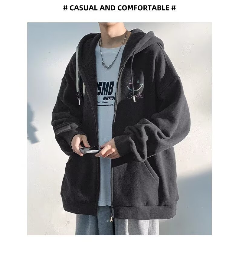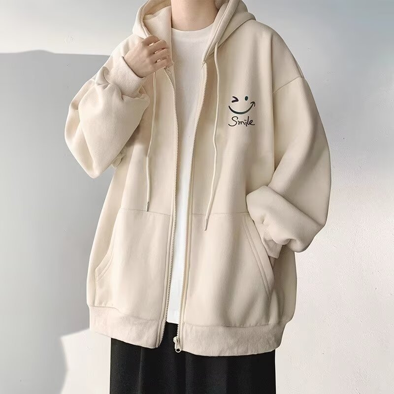 살구색 카디건 재킷 남자 봄 가을과 겨울 새로운 도착 기모 두꺼운 캐주얼 후드 스웨터 남자 지퍼 재킷스토어 가기