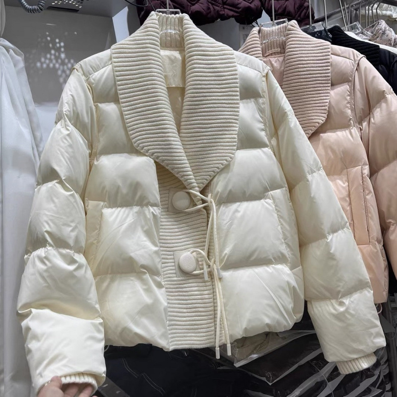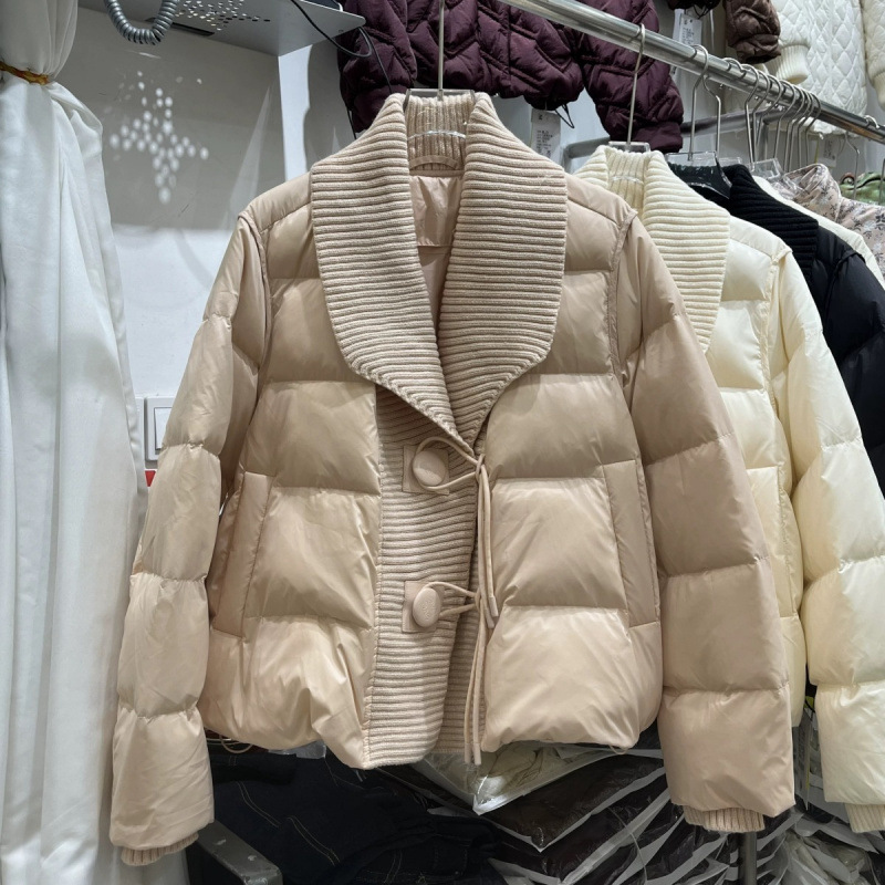 고급 니트 바느질 옷깃 다운 재킷 여성의 2024 겨울 새로운 패션 화이트 오리면 따뜻한 짧은 코트 트렌디스토어 가기