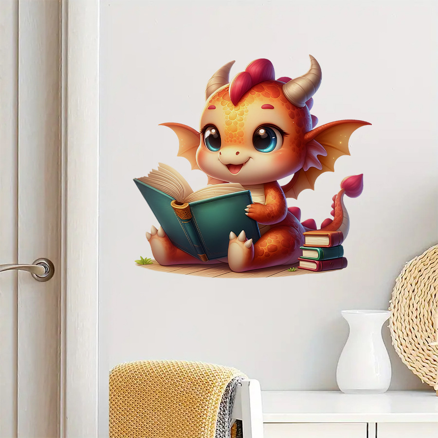 귀여운 만화 독서 작은 용 자기 접착 벽 스티커 침실 아기 방 유치원 장식 스티커 BR3318Q