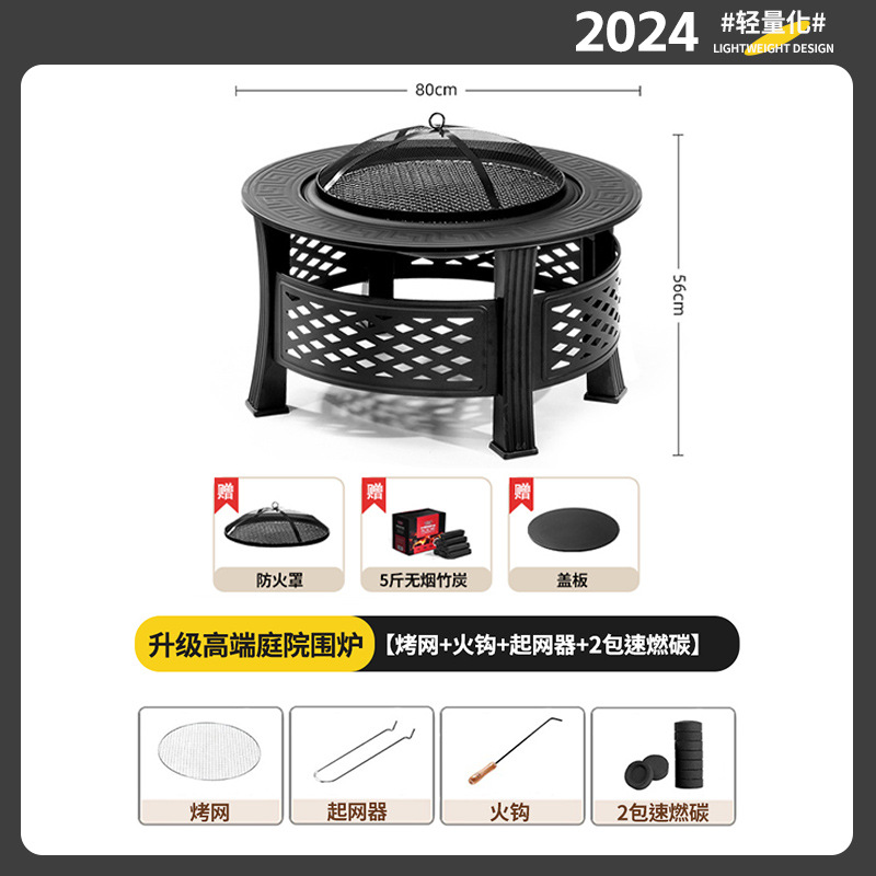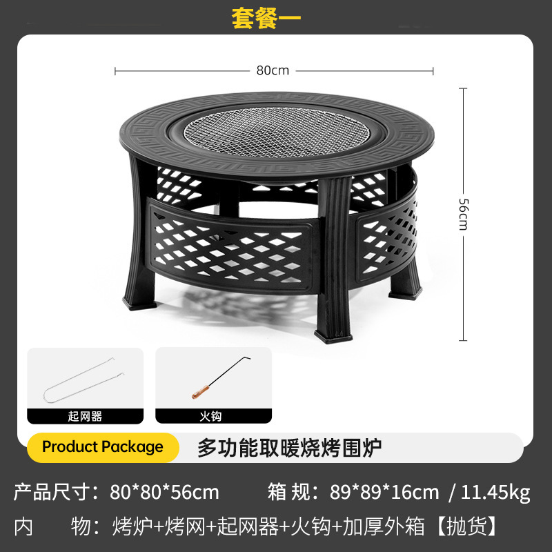 • 패키지 3: 스토브 + 그물 리프터 + 화재 후크 + 방화 커버 + 덮개